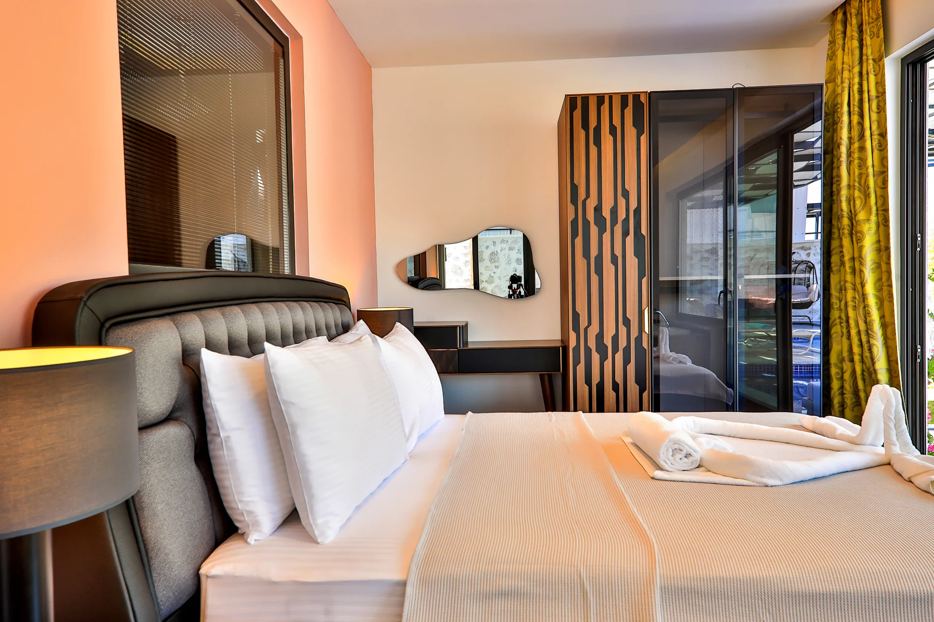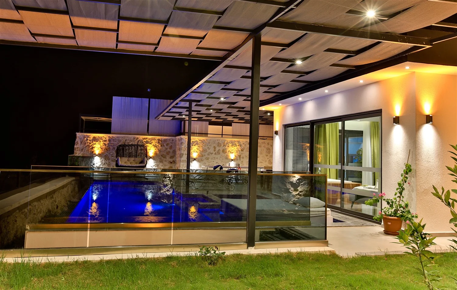 Предлагает частный бассейн и сад с существенно ограниченной видимостью извне.
