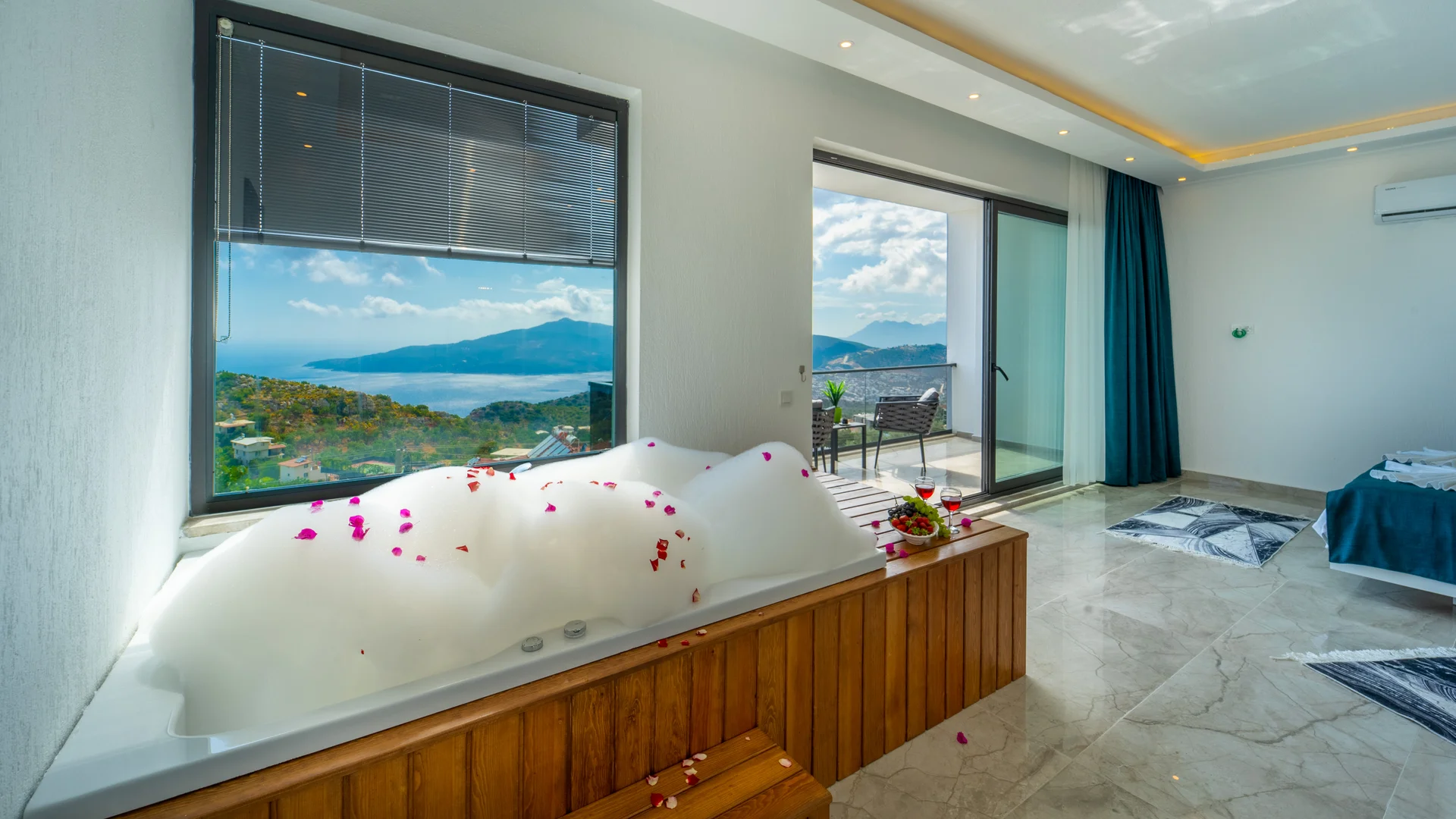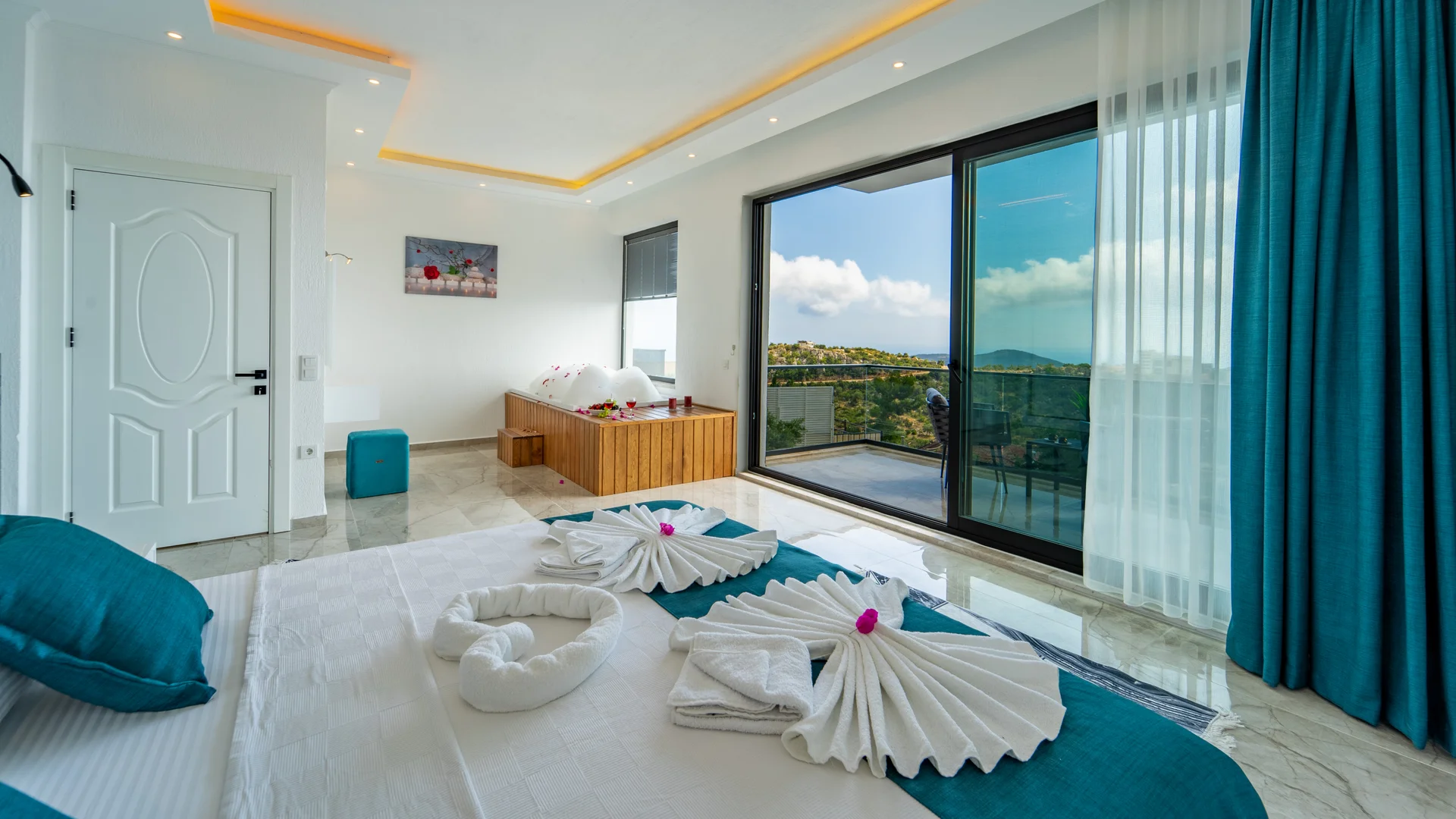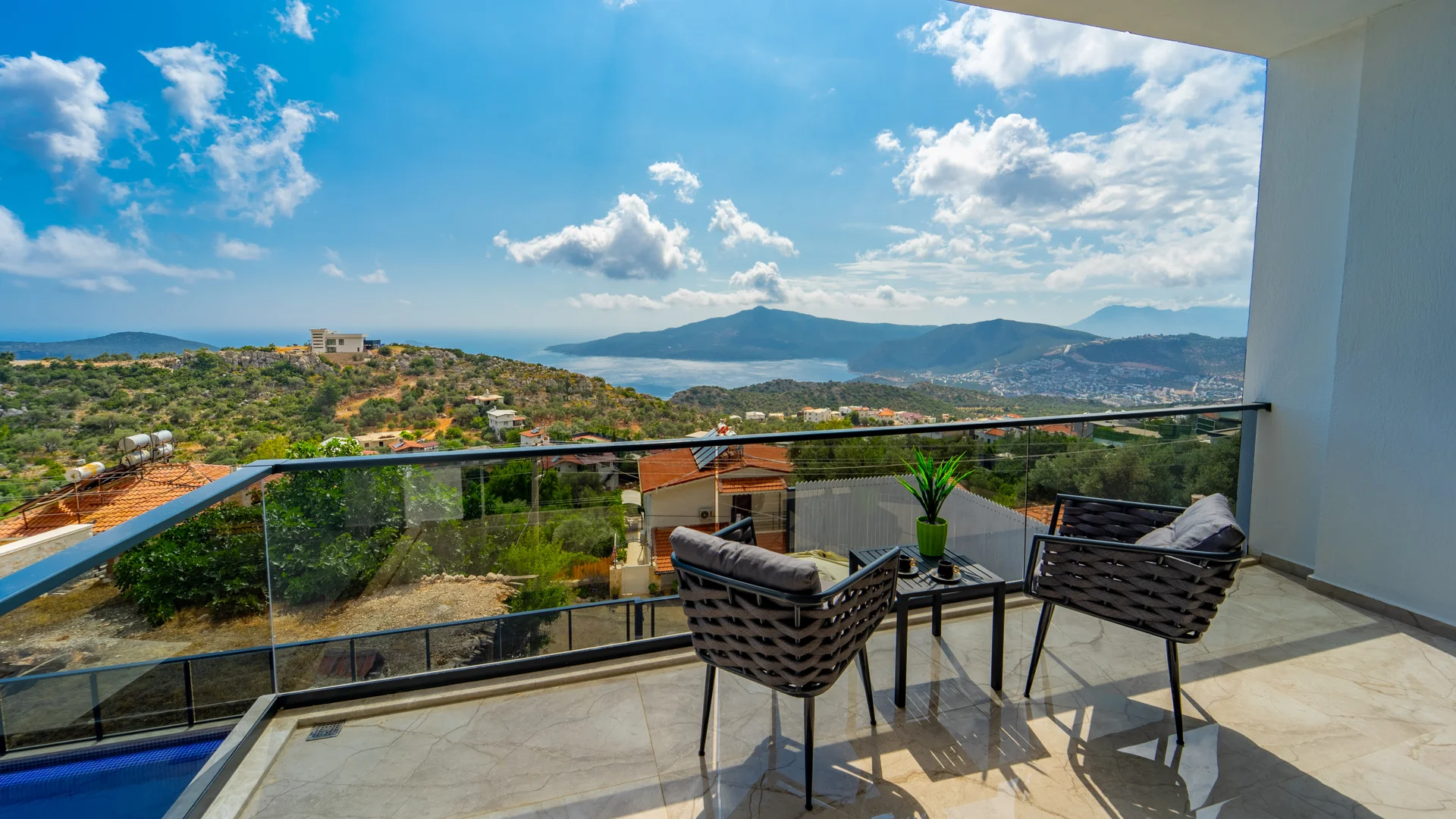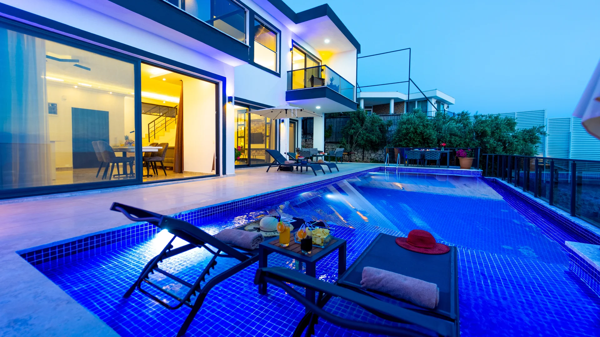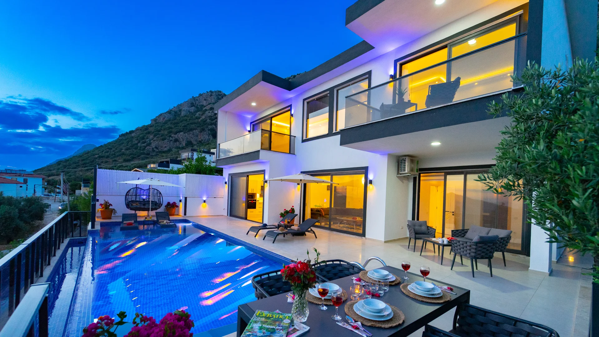 Kaş Kalkan Bölgesinde 2 Yatak Odasına Sahip 4 Kişilik konaklama kapasiteli merkeze ve denize yakın sizlere unutulmaz bir tatil tecrübesi sunacak lüks bir tatil villasıdır. Doğa ve Deniz manzarasına sahip bu villamız muhafazakar tatil arayışı olan aileler ve balayı çiftlerimiz için de uygun bir villa seçeneğidir. Saunaya sahip bu kiralik villa kış aylarında da tercih edilebilir bir villa alternatifidir. Salon: Villamızın salonu içerisinde, koltuk takımı, orta sehpa, TV, TV ünitesi, klima, uydu alıcısı yer almaktadır. Mutfak: Yazlığımızın Amerikan mutfağı içerisinde, buzdolabı, bulaşık makinası, çamaşır makinası, yemek masası, yemek takımı, ankastre fırın, mikrodalga fırın, tost makinası, ankastre ocak, çaydanlık, su ısıtıcısı, çocuk masası, tava, tencere takımı ve gerekli olan tüm mutfak gereçleri yer almaktadır. Yatak Odaları: 1. Yatak Odası : 1 adet çift kişilik yatak, klima, elbise dolabı, komodin, makyaj masası, jakuzi, banyo ve tuvalet alanları bulunmaktadır. 2. Yatak Odası : 2 adet tek kişilik yatak, klima, elbise dolabı, komodin, makyaj masası, banyo ve tuvalet bulunmaktadır. Havuz Boyutu: En: 3,5 m Boy: 10 m Derinlik: 1,50 m