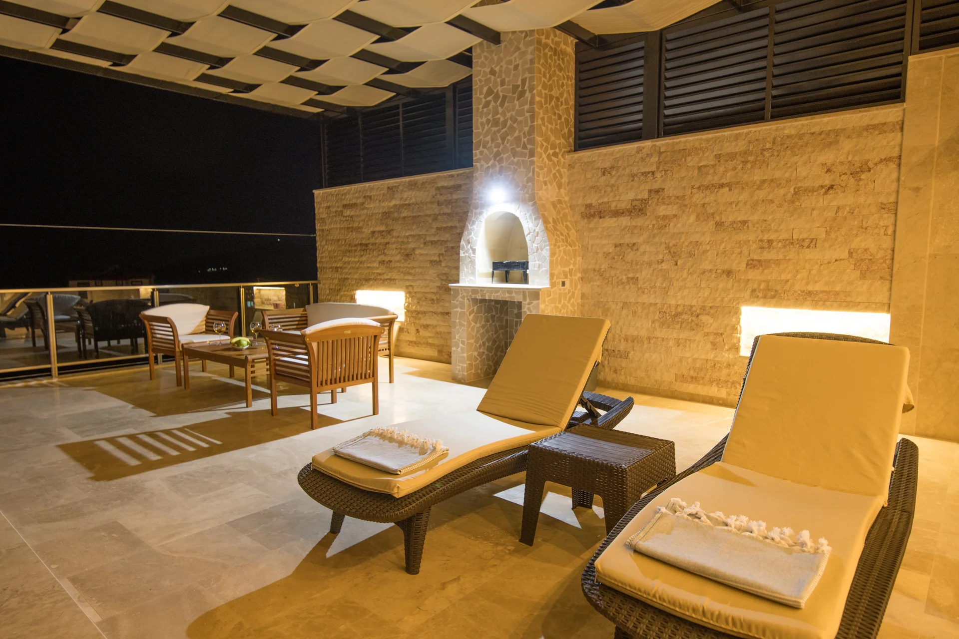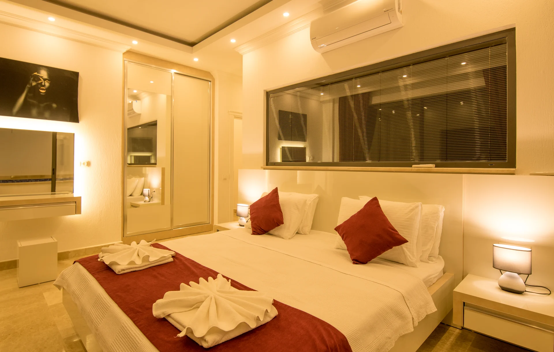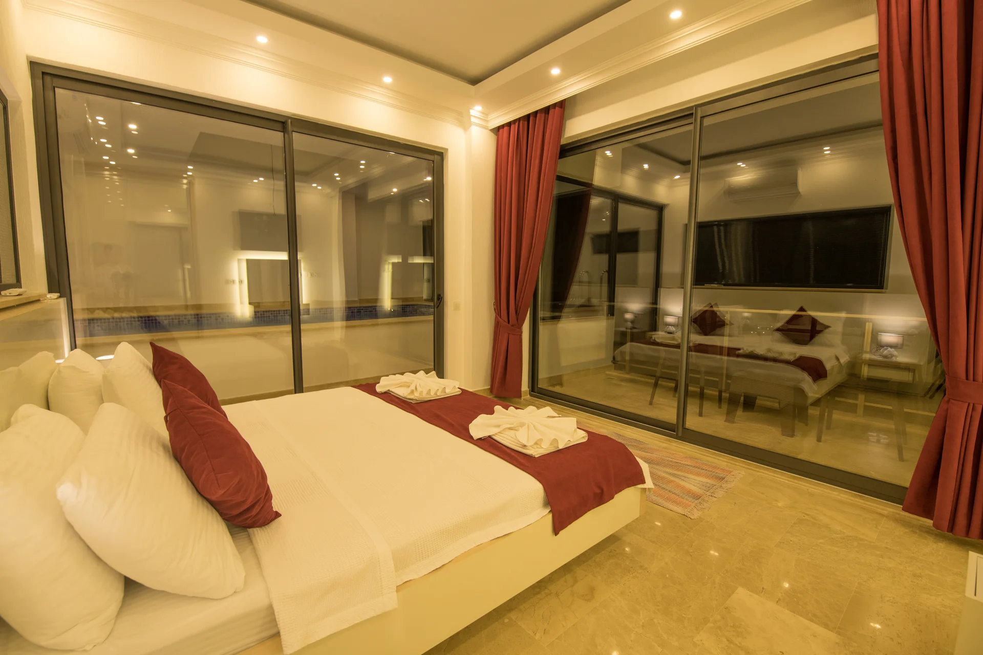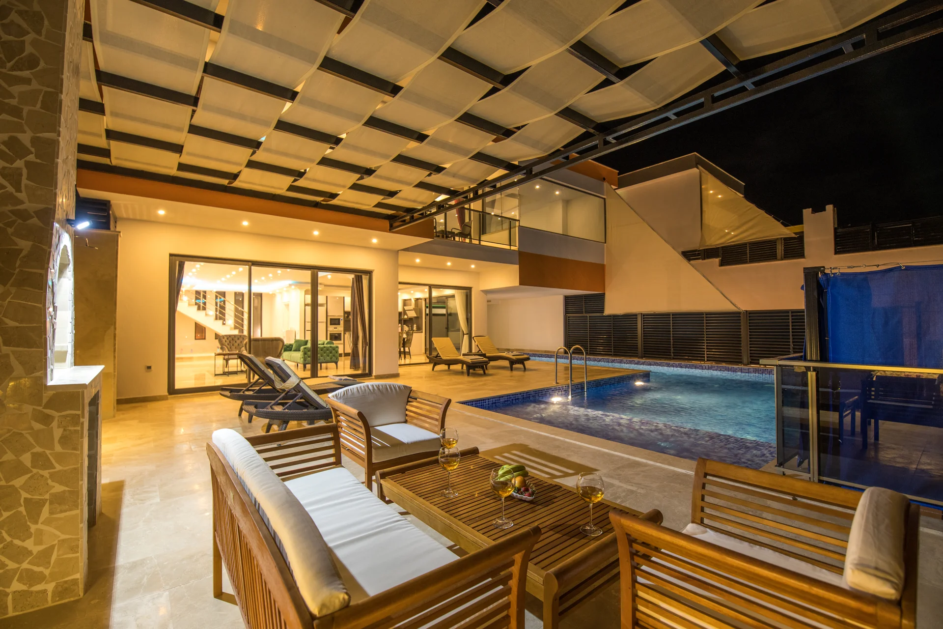 Kalkan Kördere mevkiinde yer alan, 2 yatak odalı ve 4 kişi kapasiteli tam muhafazakâr bir tatil villasıdır. 2019 yılında inşa edilen modern yapısıyla konfor ve mahremiyeti bir araya getiren villamız, özellikle muhafazakâr aileler ve balayı çiftleri için ideal bir konaklama seçeneği sunar. Villamızın havuz alanı tamamen korunaklıdır ve dışarıdan görünmemektedir. 10 metre uzunluğundaki özel yüzme havuzu, 3.5 metre genişliğe ve 1.6 metre derinliğe sahiptir. Dileyen misafirlerimiz için ısıtmalı kapalı havuz ve sauna da yer almaktadır. Bahçe kısmında şezlonglar, güneşlenme alanı, oturma grubu ve barbekü köşesi bulunur. Geniş terasında sevdiklerinizle manzaraya karşı keyifli akşamlar geçirebilirsiniz. Kalkan şehir merkezine sadece 5 dakika araç mesafesinde yer alır Not : Günlük Kapalı Havuz Isıtması ekstra 2.000 TL karşılığında aktif edilmektedir. İç Havuz Ölçü Detayları ; Uzunluk : 5 mt, En : 3 mt, Derinlik : 1,20 cm dir.