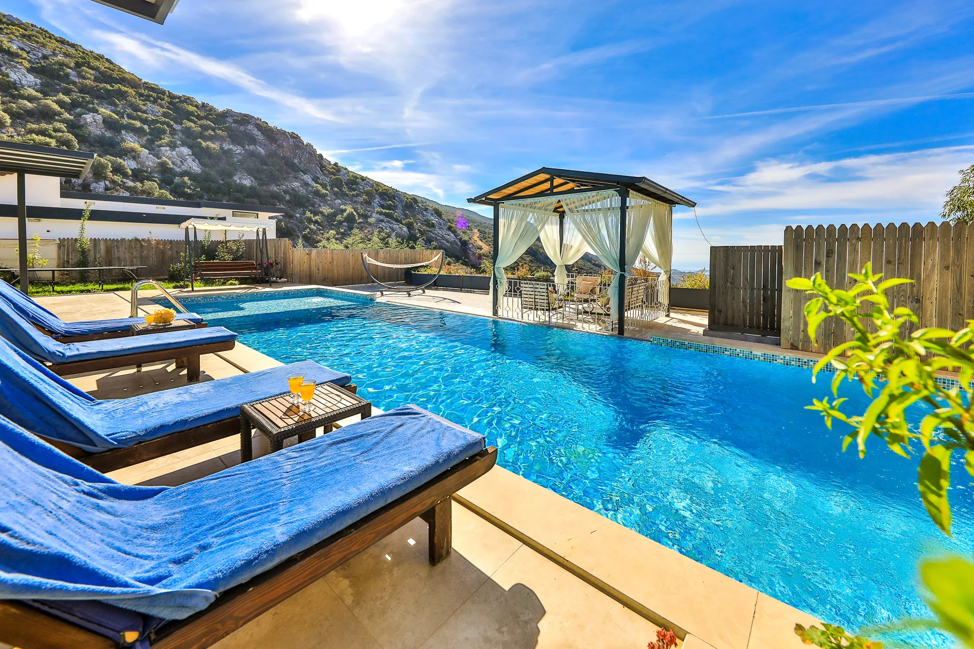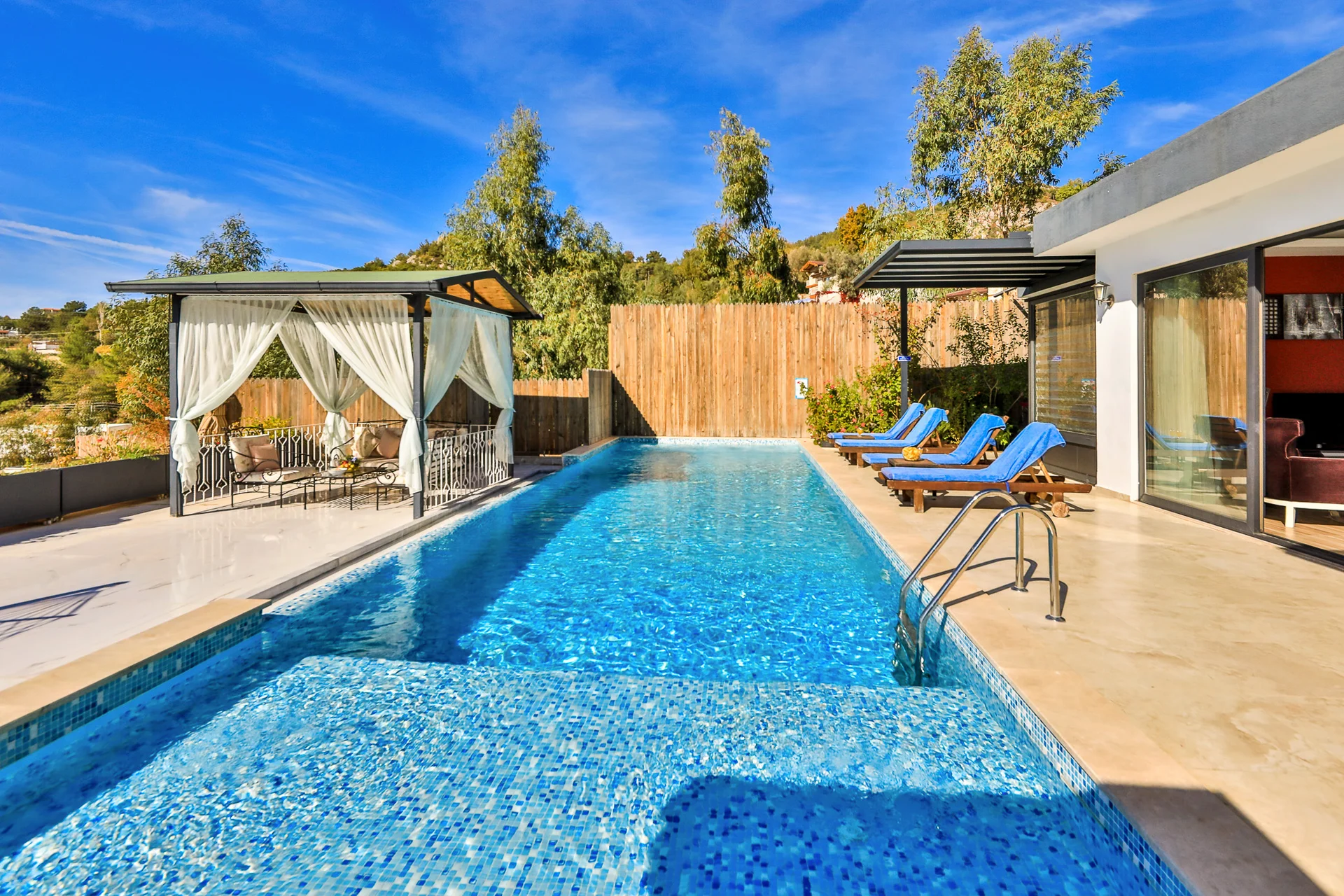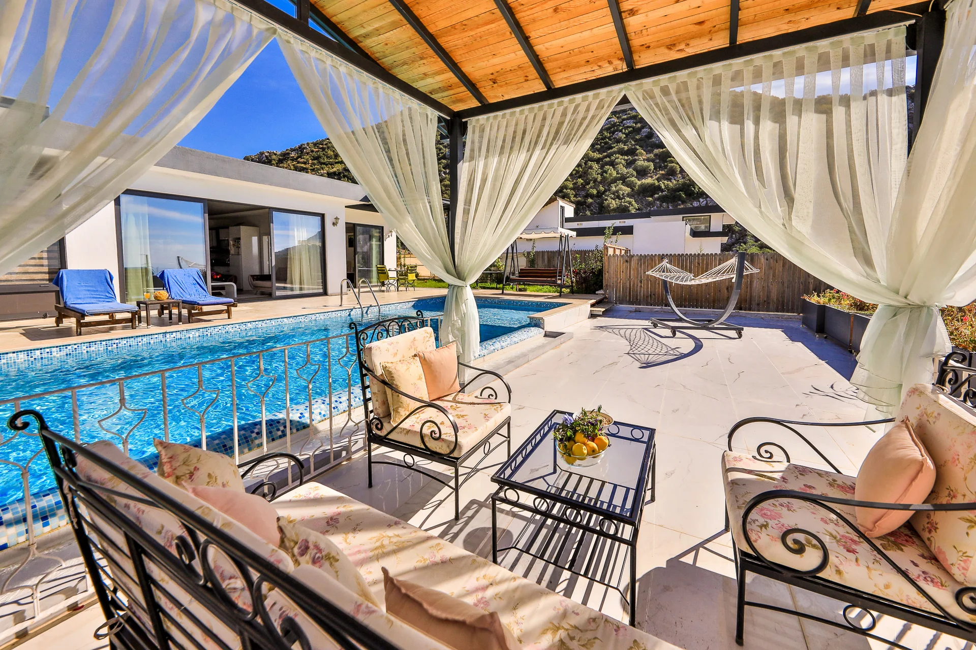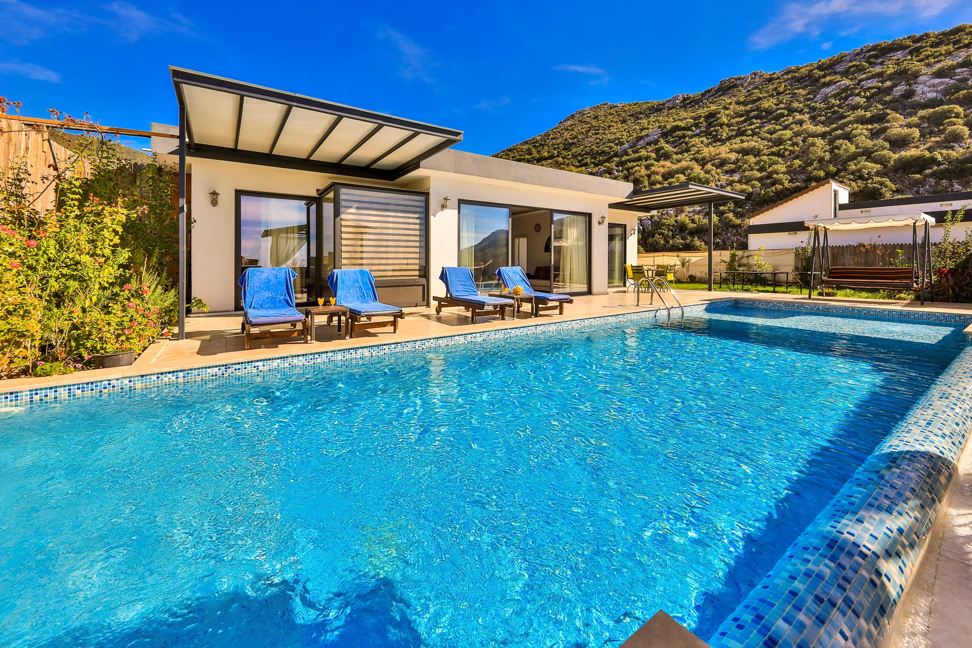 Kalkan İslamlar mevkiinde yer alan Villa Florence, doğa ile iç içe konumu ve sakin atmosferi ile huzurlu bir tatil arayan misafirler için özenle hazırlanmıştır. 2 yatak odasıyla toplam 4 kişiye kadar konaklama imkânı sunan villamız; balayı çiftleri ve çekirdek aileler için oldukça uygun bir seçenektir. Özel yüzme havuzu ve panoramik doğa manzarası ile ön plana çıkan villa, konforlu ve keyifli bir tatil deneyimi sunmaktadır. Yatak Odaları Yatak Odası: 1 adet çift kişilik yatak, klima, komodin, makyaj masası, elbise dolabı, jakuzi, banyo ve tuvalet bulunmaktadır. Yatak Odası: 2 adet tek kişilik yatak, klima, komodin, makyaj masası, elbise dolabı, banyo ve tuvalet bulunmaktadır. Havuz Bilgileri Büyük Havuz: En 4 m, Boy 14 m, Derinlik 1.55 m.