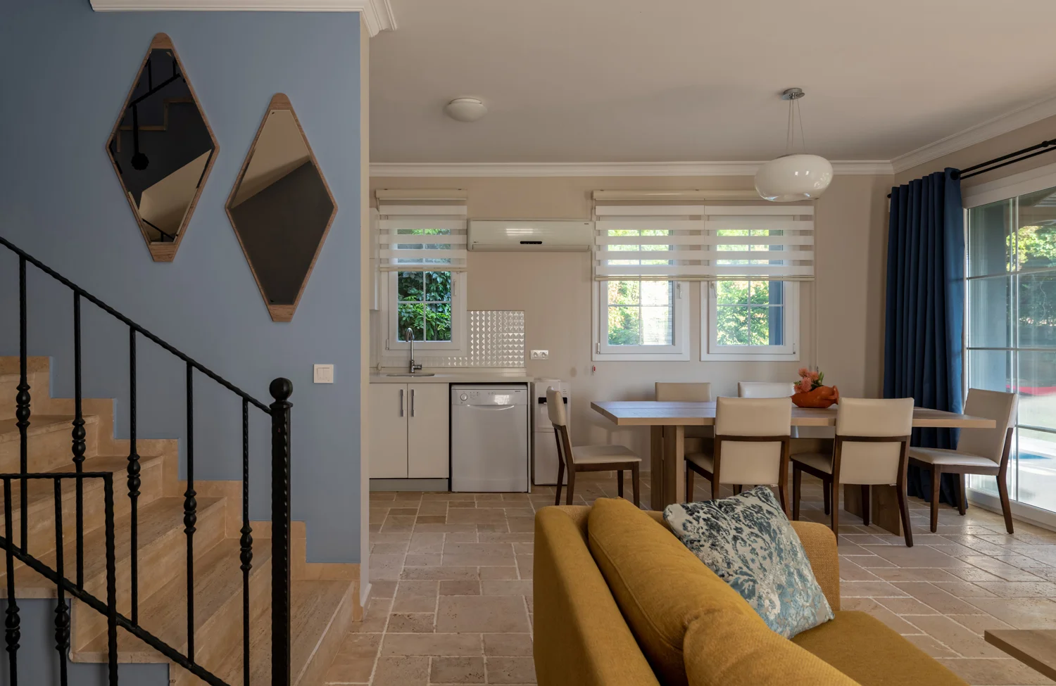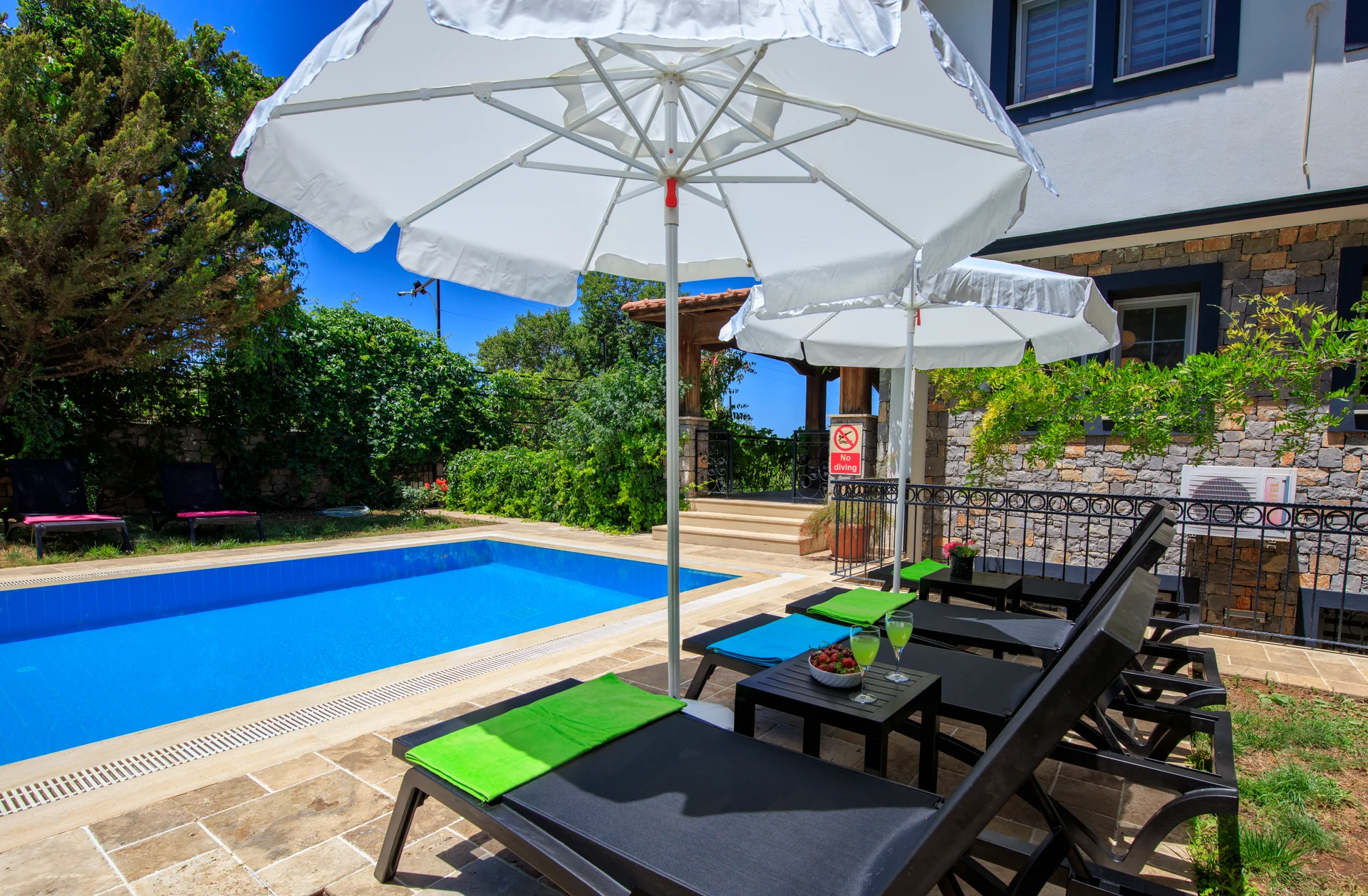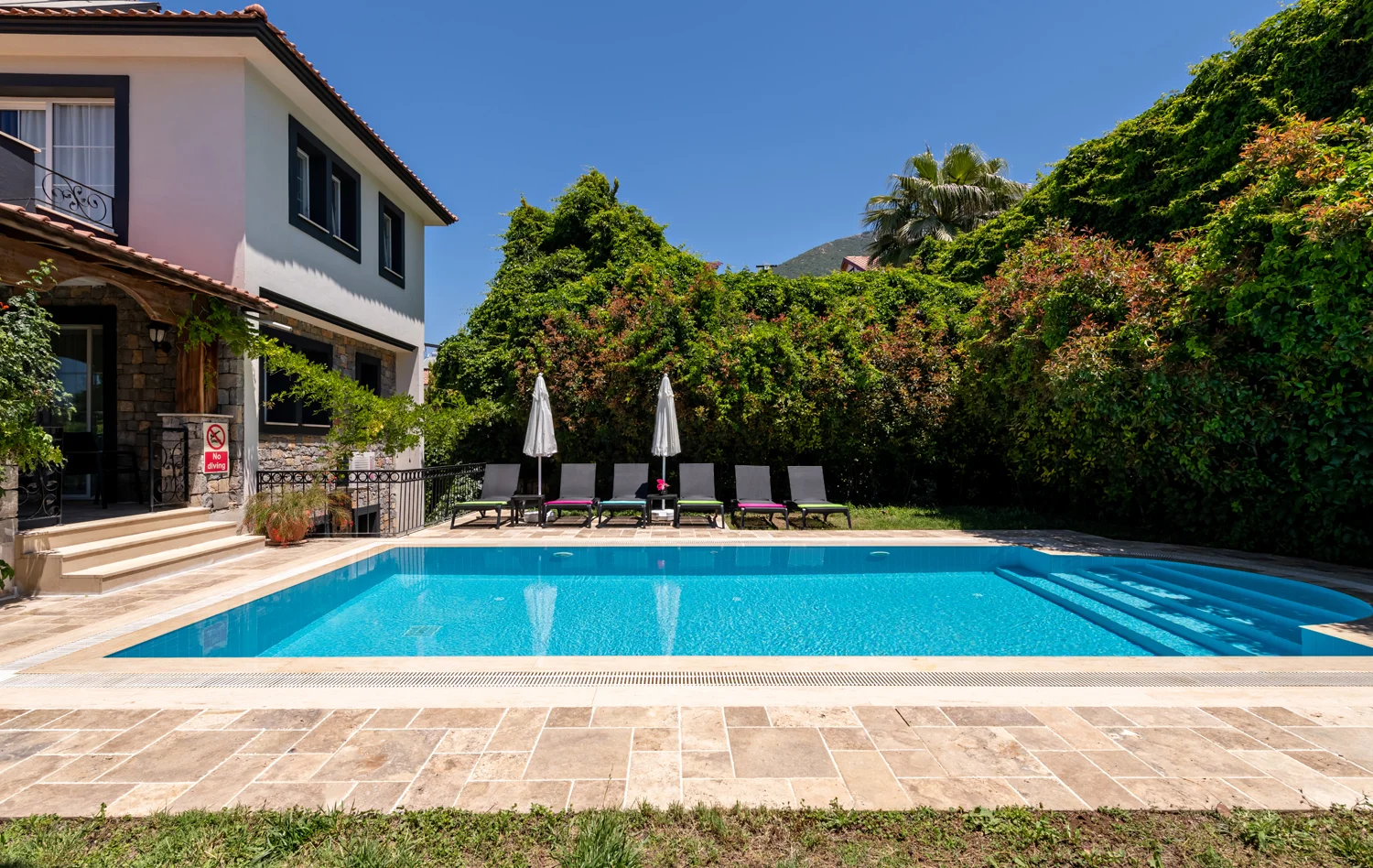 Fethiye Ovacık mevkisinde konumlanan konforlu ve kaliteli bir tatil geçirmek isteyen aileler ve arkadaş grupları için oldukça ideal bir seçenektir. doğa ile iç içe konumlanan, havuz alanı korunaklı seçeneğimiz 5 yatak odalı 10 kişi konaklama kapasitelidir. Modern ve konforlu dizayn edilen Villamız şehir merkezine 1.5 km mesafededir. 1.Yatak Odası: 1 adet çift kişilik yatak, komodin, klima, elbise dolabı, banyo ve tuvalet bulunmaktadır. 2.Yatak Odası: 1 adet çift kişilik yatak odası, elbise dolabı, komodin, klima bulunmaktadır. 3.Yatak Odası: 1 adet çift kişilik yatak, klima, elbise dolabı, komodin bulunmaktadır. 4.Yatak Odası: 2 adet tek kişilik yatak, klima, elbise dolabı, komodin bulunmaktadır. 5.Yatak Odası: 2 adet tek kişilik yatak, klima, elbise dolabı, komodin bulunmaktadır. Özel yüzme havuzu, şezlong, şemsiye, salıncak, yemek masası ve barbekü bulunmaktadır En: 4 m Boy: 10 m Derinlik: 150 cm’dir.