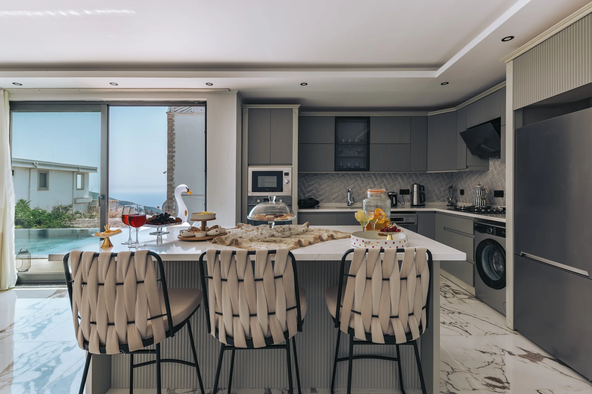 Villa Saba : Kalkanʼın Kördere bölgesinde yer alan, 6 kişilik ultra lüks villamızdır.Villamızın içerisinde özel havuz, bahçe ve geniş yaşam alanları bulunmaktadır. Doğa manzarası eşliğinde huzurlu bir tatil geçirmek isteyen ailelerimiz için mükemmel bir villamızdır. Salon : Oturma grubu, klima, LCD TV, sehpa, uydu alıcı bulunmaktadır. Havuz terasına çıkış yapılabilmektedir. Mutfak : Buzdolabı, bulaşık makinası,fırın,4ʼlü ocak, mikrodalga fırın, kettle, yemek masası, yemek takımları, çatal ve bıçak takımları, tencere ve tava takımları, bardaklar bulunmaktadır.