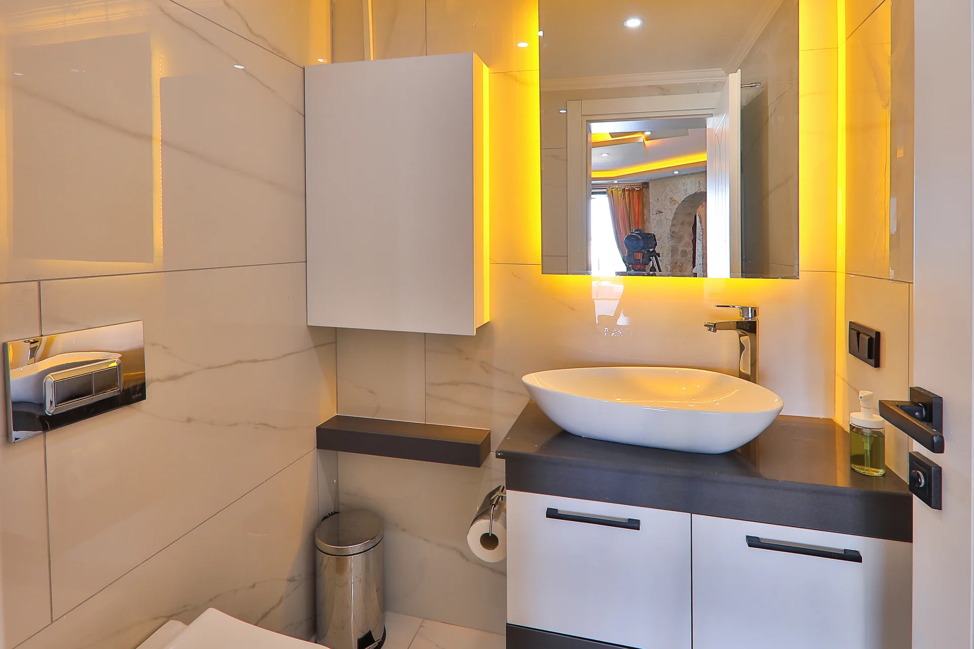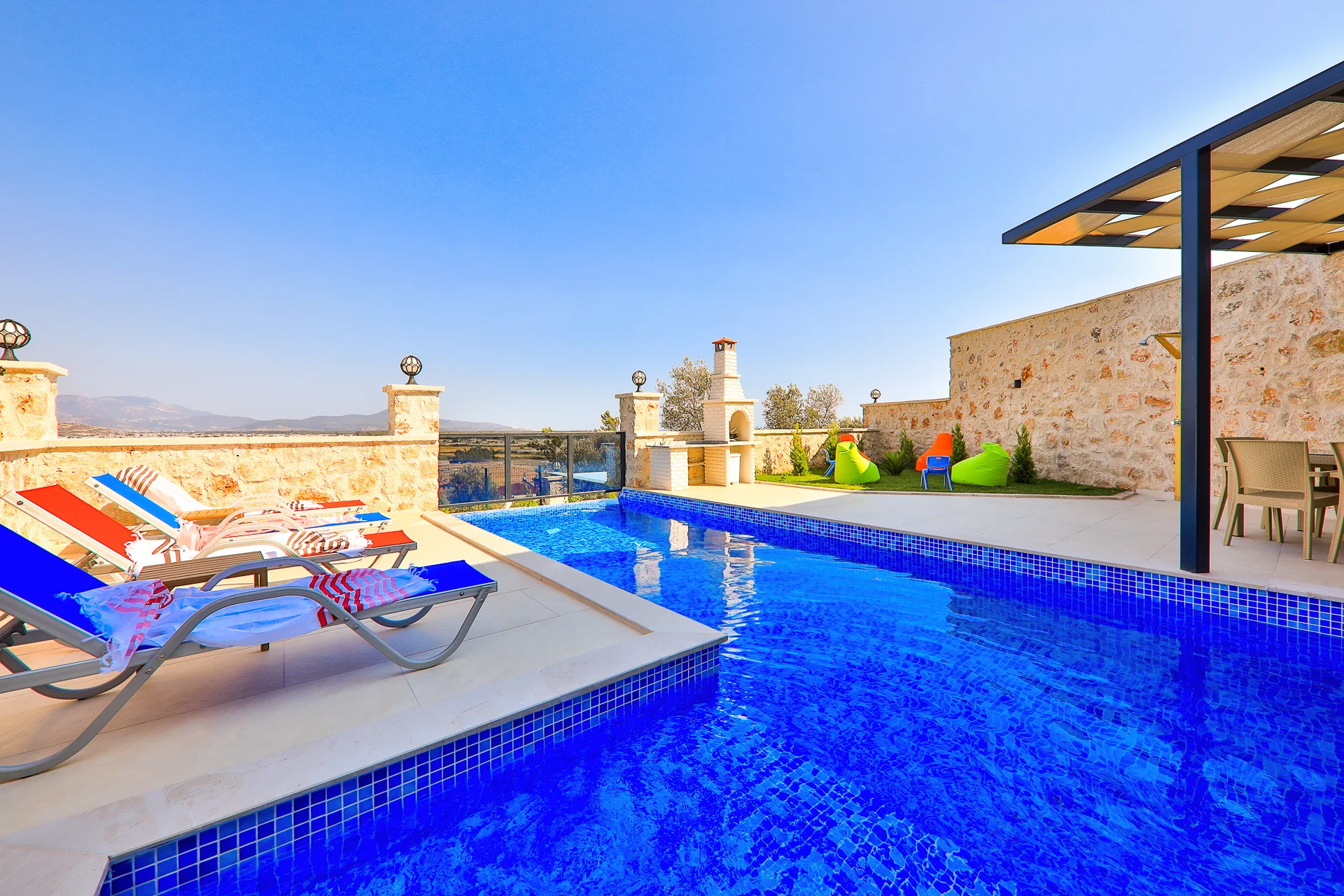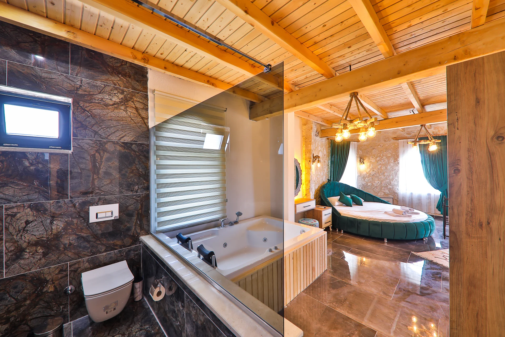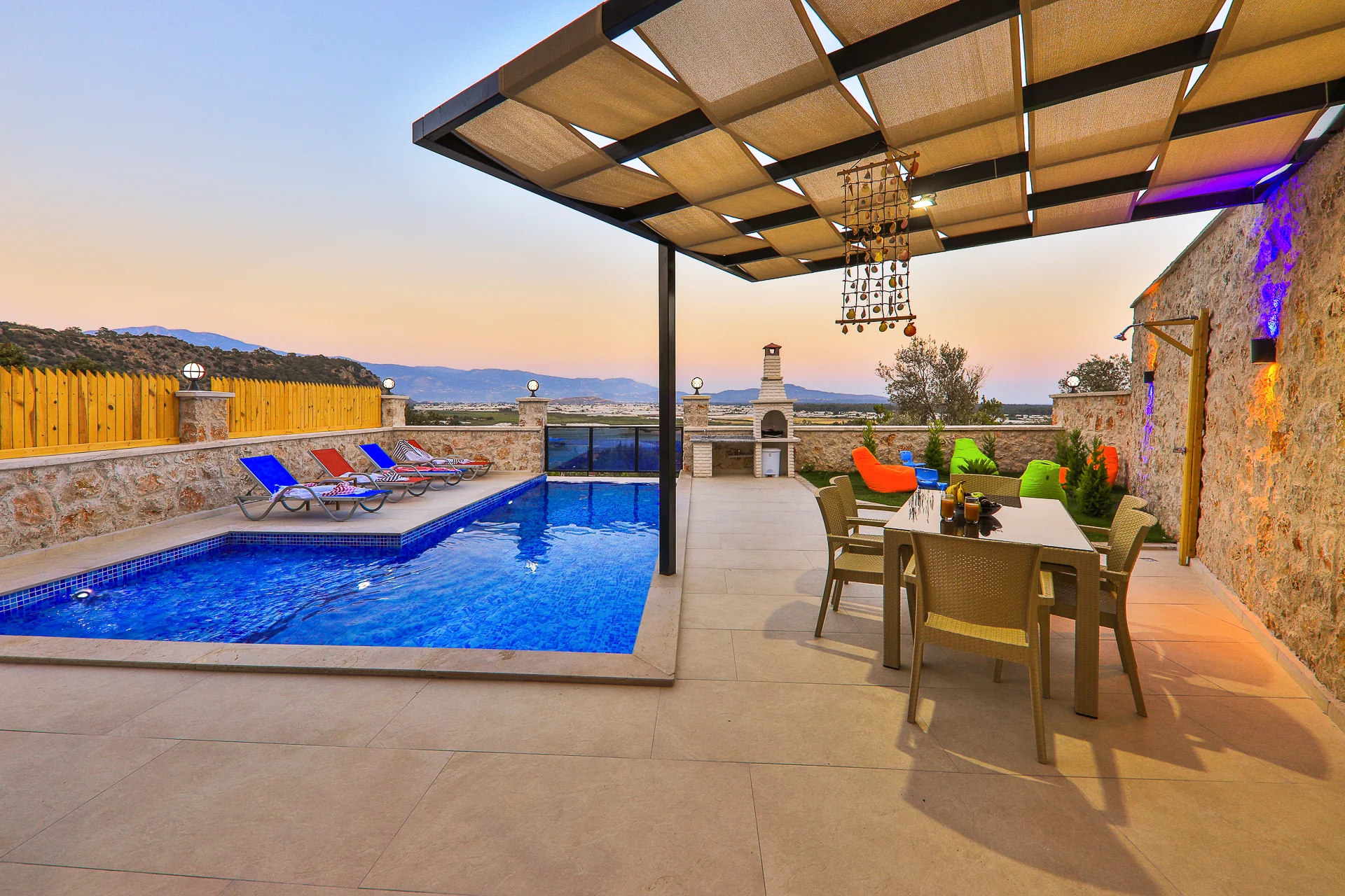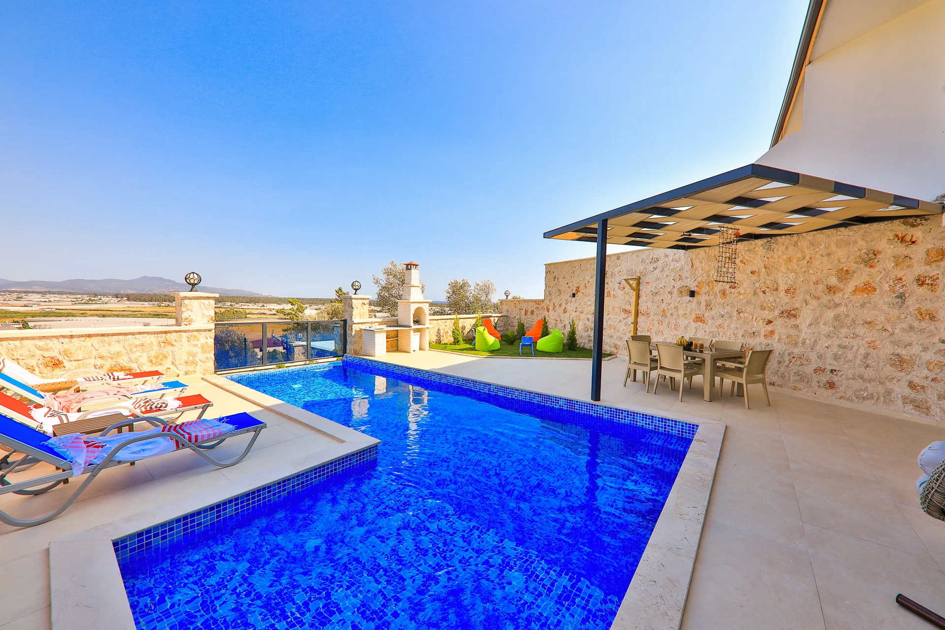 Fethiye’nin Seydikemer Karadere bölgesinde yer alan Villa Santos 1, taş mimarisi ve modern detaylarla birleştirilmiş özel tasarımıyla dikkat çeken lüks bir tatil villasıdır. Üç yatak odası ve altı kişilik kapasitesiyle hem aileler hem de arkadaş grupları için konforlu bir yaşam alanı sunar. Bölgenin doğal güzellikleri ve sakin yapısı, villanın ferah mimarisiyle birleşerek misafirlere yıl boyunca huzurlu bir tatil imkânı sağlar. Taş dokulu dış görünümü ve modern iç tasarımı, Villa Santos 1’i bölgedeki özel konseptli villalar arasına taşır. Not: Isıtma fiyatı günlük 1.300TL(Döneme göre değişiklik gösterebilir) ekstra alınmaktadır. Isıtma bedeli konaklanacak gün boyunca hesaplanmaktadır ve talep edilmesi durumunda suyun yeterli ısıya ulaşabilmesi için eve giriş yapmadan en geç 3 gün öncesine kadar iletişim kişisine bildirilmesi gerekmektedir. Not: Villamız resmi olarak Fethiye sınırlarında bulunsa da konum itibarıyla Kalkan merkeze daha yakın bir mesafededir. Not: Bölgenin alt yapısının zayıf olmasından kaynaklı telefon (mobil şebeke) belirli noktalarda çekmektedir. Yatak Odaları 1. Yatak Odası: Oda içerisinde 1 adet çift kişilik yatak, jakuzi, gardırop, komodin, banyo-WC ve balkon yer almaktadır. 2. Yatak Odası: Oda içerisinde 1 adet çift kişilik yatak, jakuzi, gardırop, komodin, banyo-WC ve balkon yer almaktadır. 3. Yatak Odası: Oda içerisinde 2 adet tek kişilik yatak, gardırop, komodin, banyo-WC ve balkon yer almaktadır. Depozito: Tatiliniz başlamadan önceki son adım olarak sizden depozito alınmaktadır. Herhangi bir hasar sonucunda kırık ve kayıp gibi problemler olmadığı taktirde villadan ayrılıştan 10 dakika önce villa/apart kontrol edilip herhangi bir sorun görünmediği takdirde depozito sizlere geri verilmektedir.