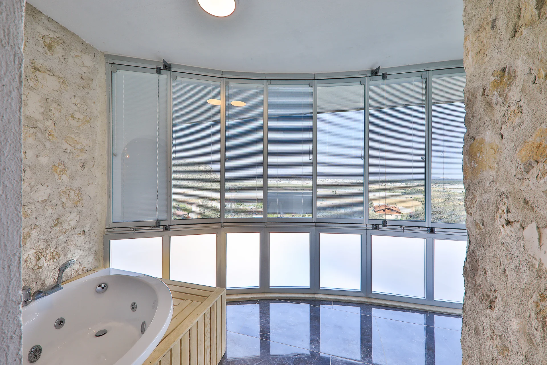 Предлагает частный бассейн и сад с существенно ограниченной видимостью извне.