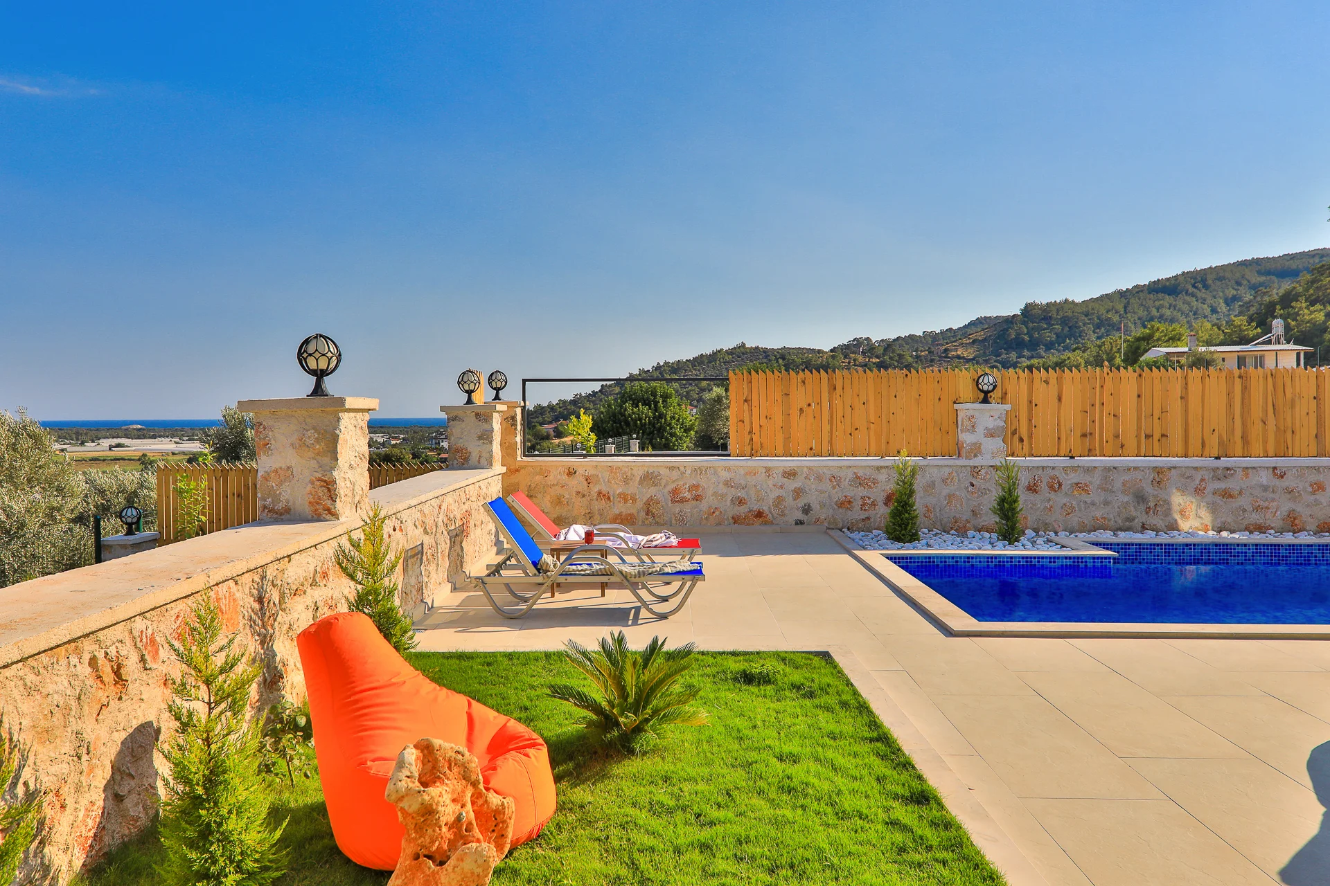 Villa Santos 2, Fethiye Seydikemer Karadere-Kumluova bölgesinde yer alan, tam korunaklı özel havuz, ısıtmalı kapalı havuz, sauna, hamam ve çift jakuzi gibi lüks özellikleriyle öne çıkan, 3 yatak odalı ve 6 kişi kapasiteli özel bir tatil villasıdır. Doğa içinde panoramik deniz manzarası sunan villa, hem balayı çiftleri hem de çekirdek aileler için yıl boyunca konforlu bir tatil imkânı sağlar. Tamamen yeni inşa edilmiş modern mimarisi, geniş yaşam alanı, birinci sınıf malzemeler ve özenle seçilmiş iç dekorasyonu sayesinde Villa Santos 2, konuklarına üst düzey bir konaklama deneyimi sunar. Villanın dış alanında yer alan korunaklı özel havuz, dışarıdan görünmeyecek şekilde tasarlanmış olup mahremiyete önem veren misafirler için mükemmel bir kullanım alanı oluşturur. Havuz terası geniş güneşlenme alanı, yeşil bahçe dokusu ve ferah verandası ile hem gündüz hem de akşam keyifli vakit geçirmenizi sağlar. İç mekânda yer alan ısıtmalı kapalı havuz, sauna ve Türk hamamı, özellikle serin dönemlerde dört mevsim tatil yapabilme avantajı sunar. Ebeveyn süitinde yer alan geniş jakuzi ise misafirlerin ekstra rahatlama ve keyif deneyimi yaşaması için düşünülmüştür. Yatak Odaları 1. Yatak Odası: Oda içerisinde 1 adet çift kişilik yatak, jakuzi, gardırop, komodin, banyo-WC ve balkon yer almaktadır. 2. Yatak Odası: Oda içerisinde 1 adet çift kişilik yatak, jakuzi, gardırop, komodin, banyo-WC ve balkon yer almaktadır. 3. Yatak Odası: Oda içerisinde 2 adet tek kişilik yatak, gardırop, komodin, banyo-WC ve balkon yer almaktadır. Depozito : Tatiliniz başlamadan önceki son adım olarak sizden depozito alınmaktadır. Herhangi bir hasar sonucunda kırık ve kayıp gibi problemler olmadığı taktirde villadan ayrılıştan 10 dakika önce villa/apart kontrol edilip herhangi bir sorun görünmediği takdirde depozito sizlere geri verilmektedir.