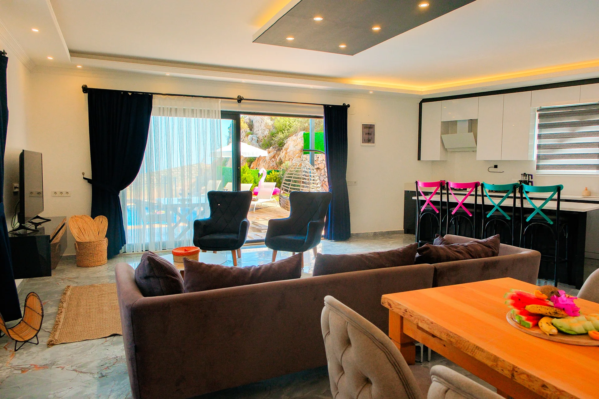 Villa Sento, Kalkan Ordu Bölgesi’nde, muhteşem deniz manzarasına hakim, modern ve keyifli tatil villamızdır. Özellikle 4 kişilik aileler için tasarlanmış ve her bir villa birbirini görmeyecek şekilde düzenlenmiş, böylece mahremiyet ve özel bir tatil deneyimi sunulmuş. Villa Sento, deniz manzarasının keyfini çıkarabileceğiniz, modern konforlarla donatılmış ve doğa ile iç içe bir tatil arayışında olan aileler için ideal bir seçenektir. Villa Sento’ nun konumu, Kalkan’ın eşsiz manzaralarını ve doğal güzelliklerini keşfetmek için mükemmel bir başlangıç noktası sunar. Ayrıca, site içerisinde yer alması, güvenli ve organize bir tatil ortamı sunarken, ailelerin rahatlıkla vakit geçirebileceği ve çocukların güven içinde oyun oynayabileceği alanlar sağlar.