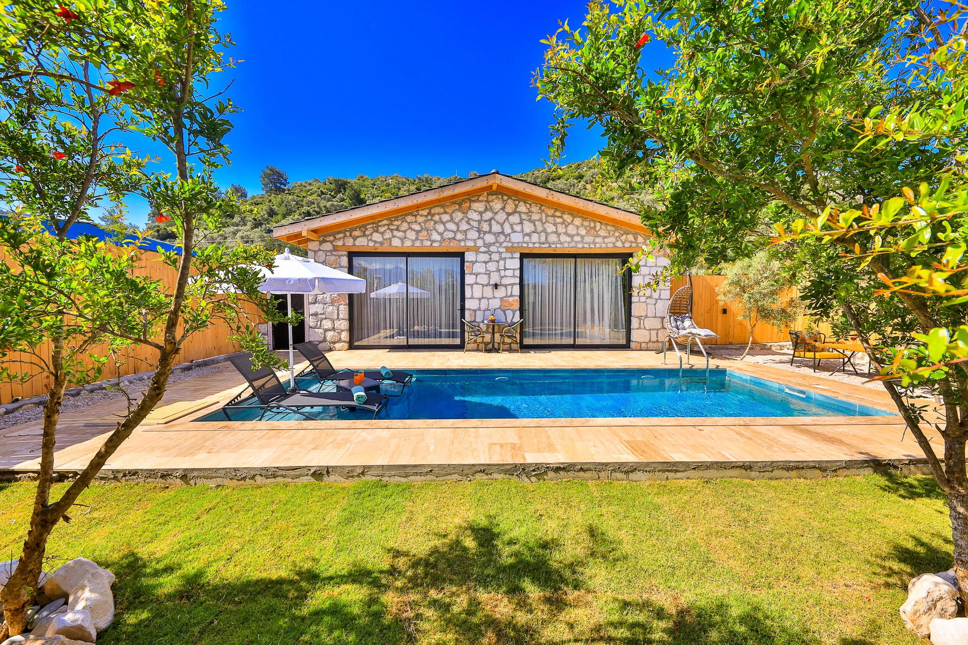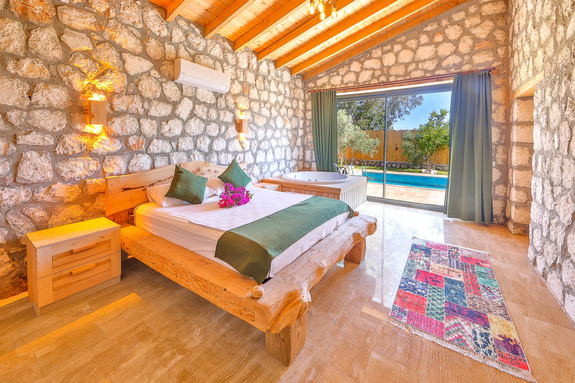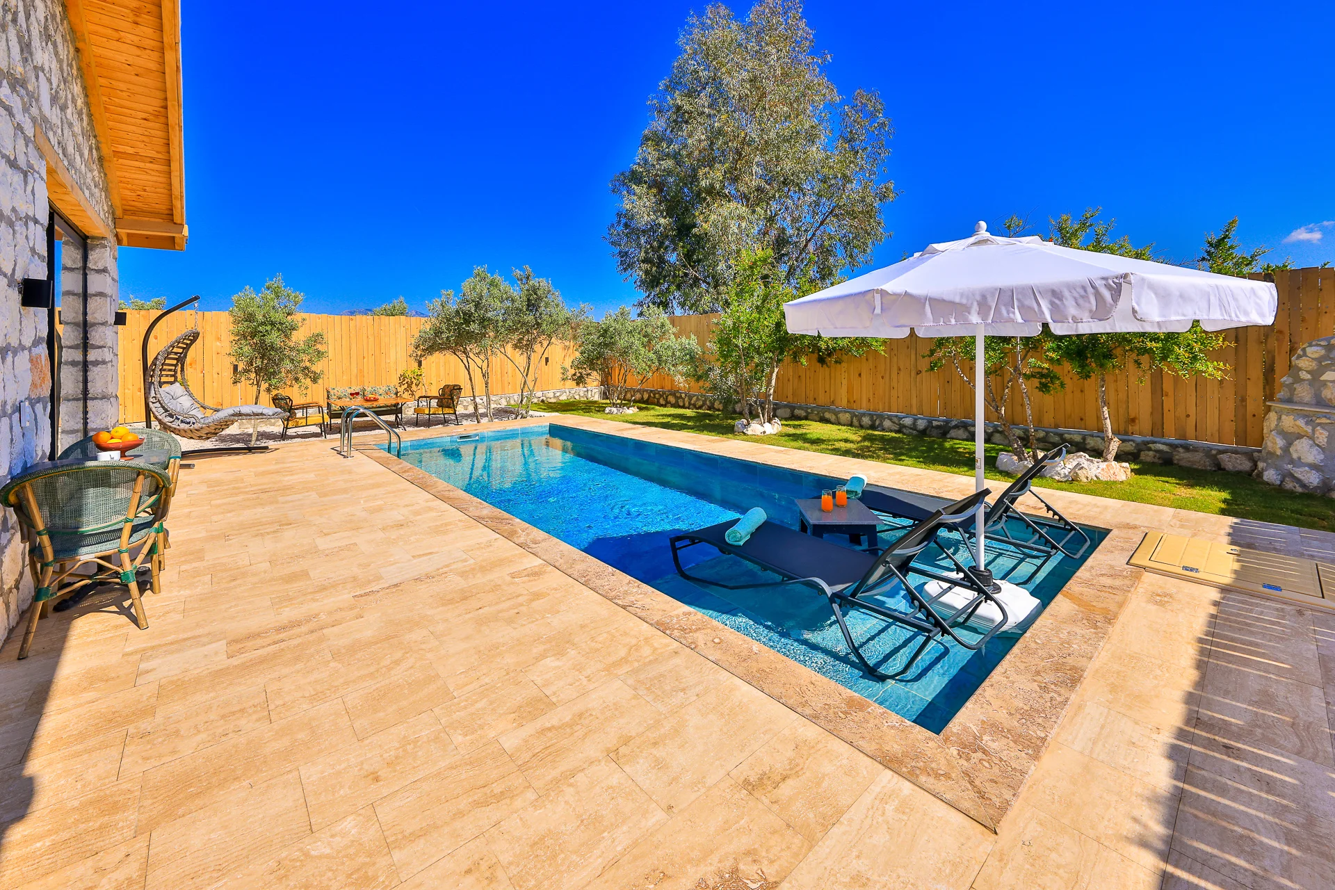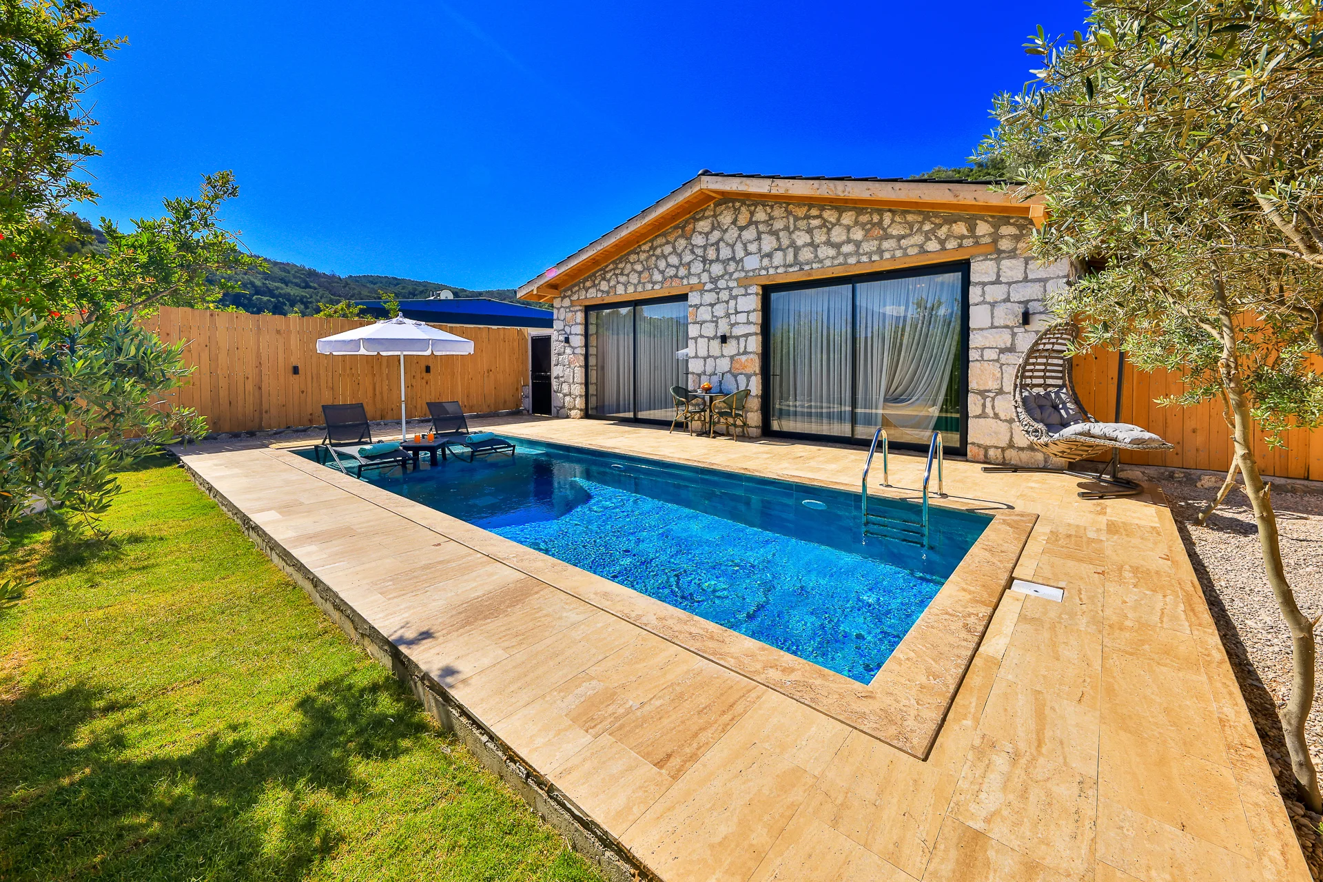 Villa Bolu 3 Kalkan Patara mevkisinde bulunan kiralık balayı villası, yemyeşil bir bahçeye sahip, sessiz sakin bir konumda tatil isteyen çiftlerimiz için oldukça uygun bir seçenektir. Muhafazakar villalar ve balayı villaları kategorisinde yer alan villamız, 1 yatak odası ile 2 kişilik konaklama kapasitesine sahiptir. Havuzu korunaklı ve bahçesi dışarıdan görünmeyen Villa Bolu 3, Türkiyenin en büyük plajına ve Patara Antik Kentine çok yakın bir mesafededir .