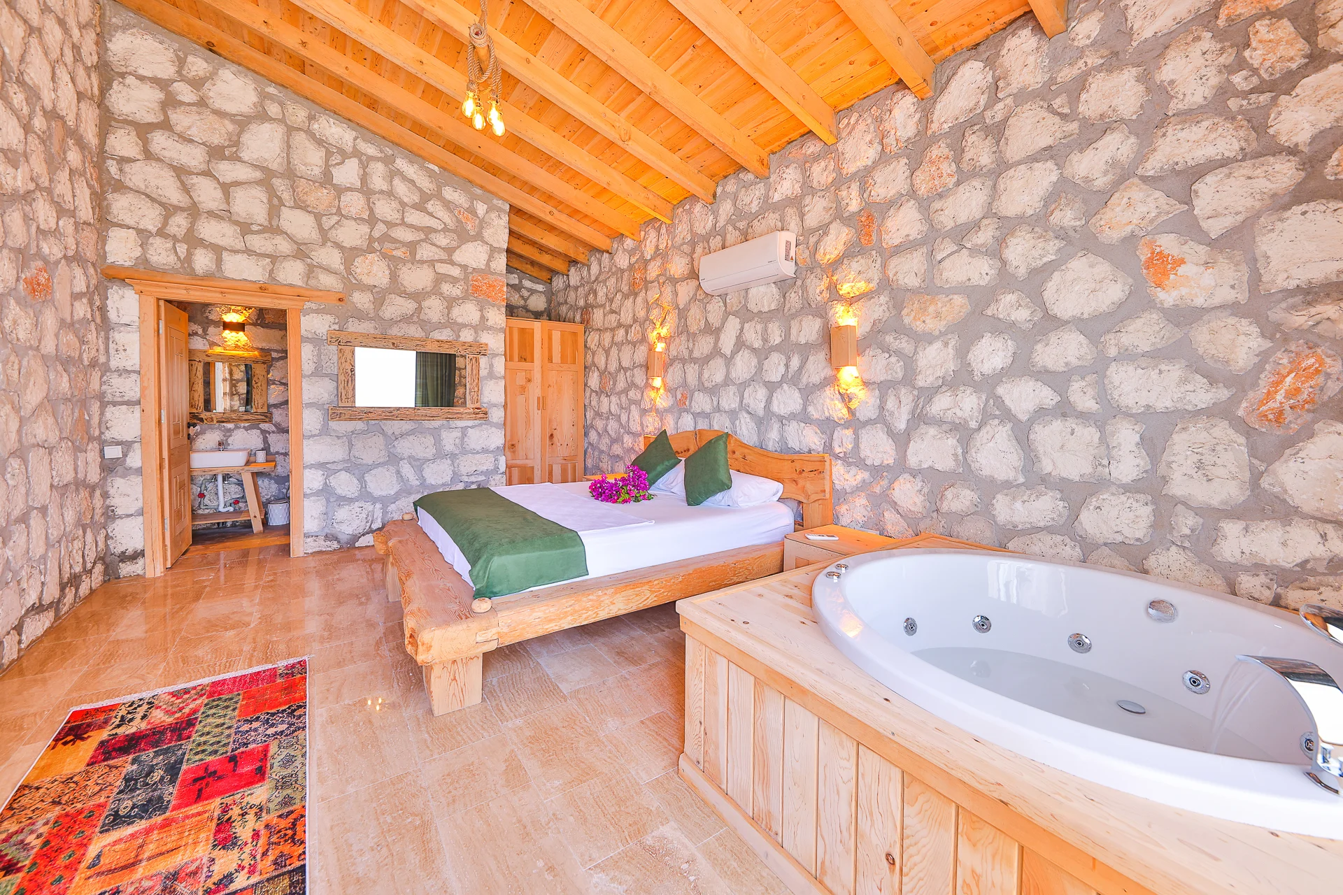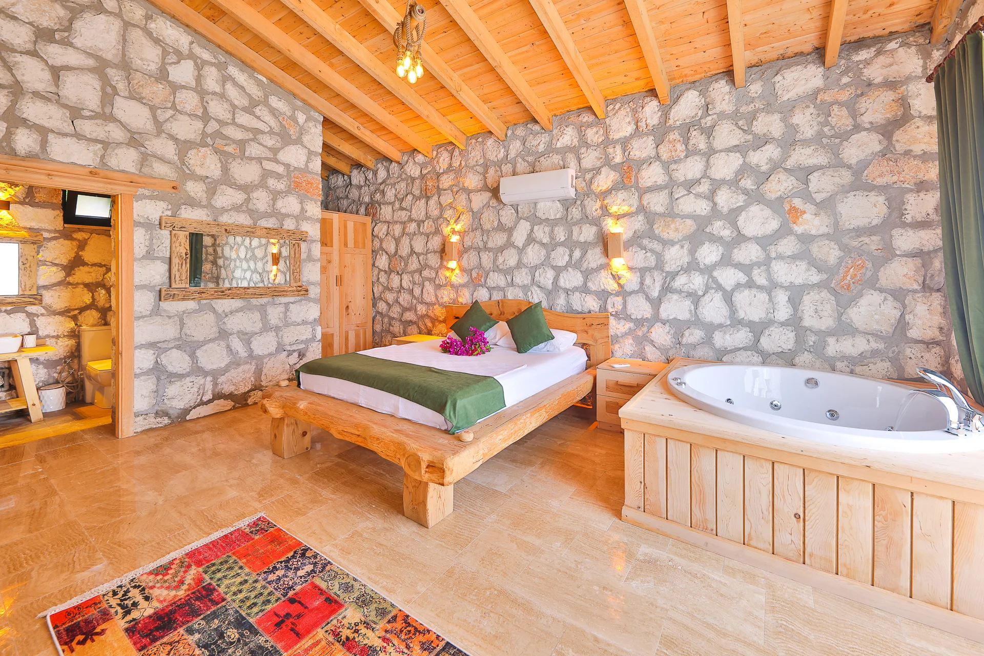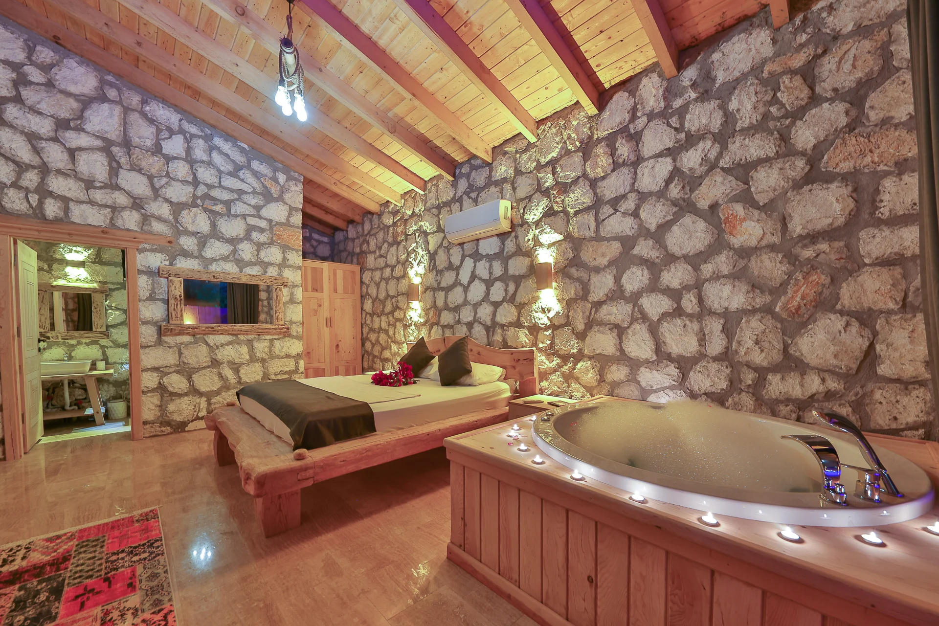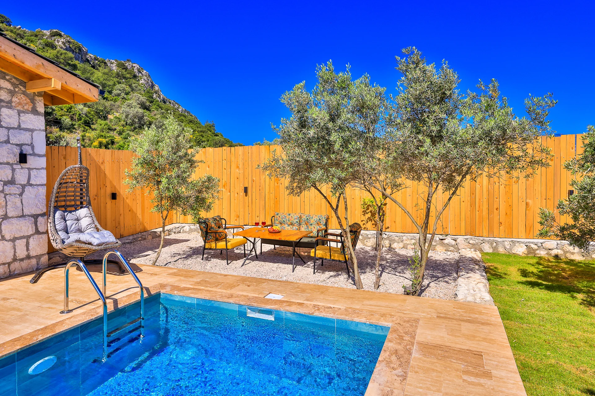 Villa Bolu 3 Kalkan Patara mevkisinde bulunan kiralık balayı villası, yemyeşil bir bahçeye sahip, sessiz sakin bir konumda tatil isteyen çiftlerimiz için oldukça uygun bir seçenektir. Muhafazakar villalar ve balayı villaları kategorisinde yer alan villamız, 1 yatak odası ile 2 kişilik konaklama kapasitesine sahiptir. Havuzu korunaklı ve bahçesi dışarıdan görünmeyen Villa Bolu 3, Türkiyenin en büyük plajına ve Patara Antik Kentine çok yakın bir mesafededir .