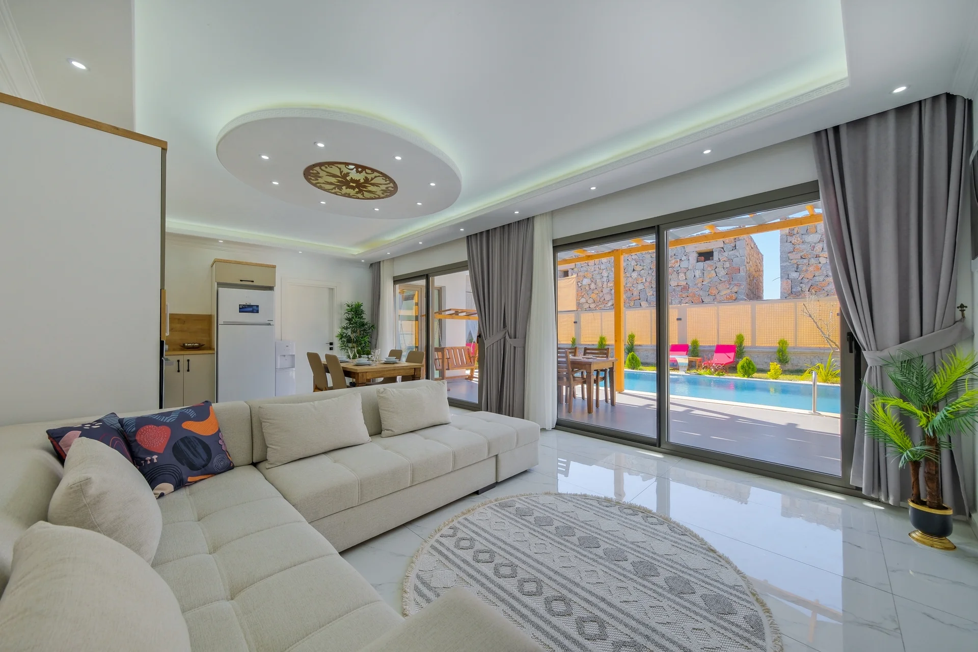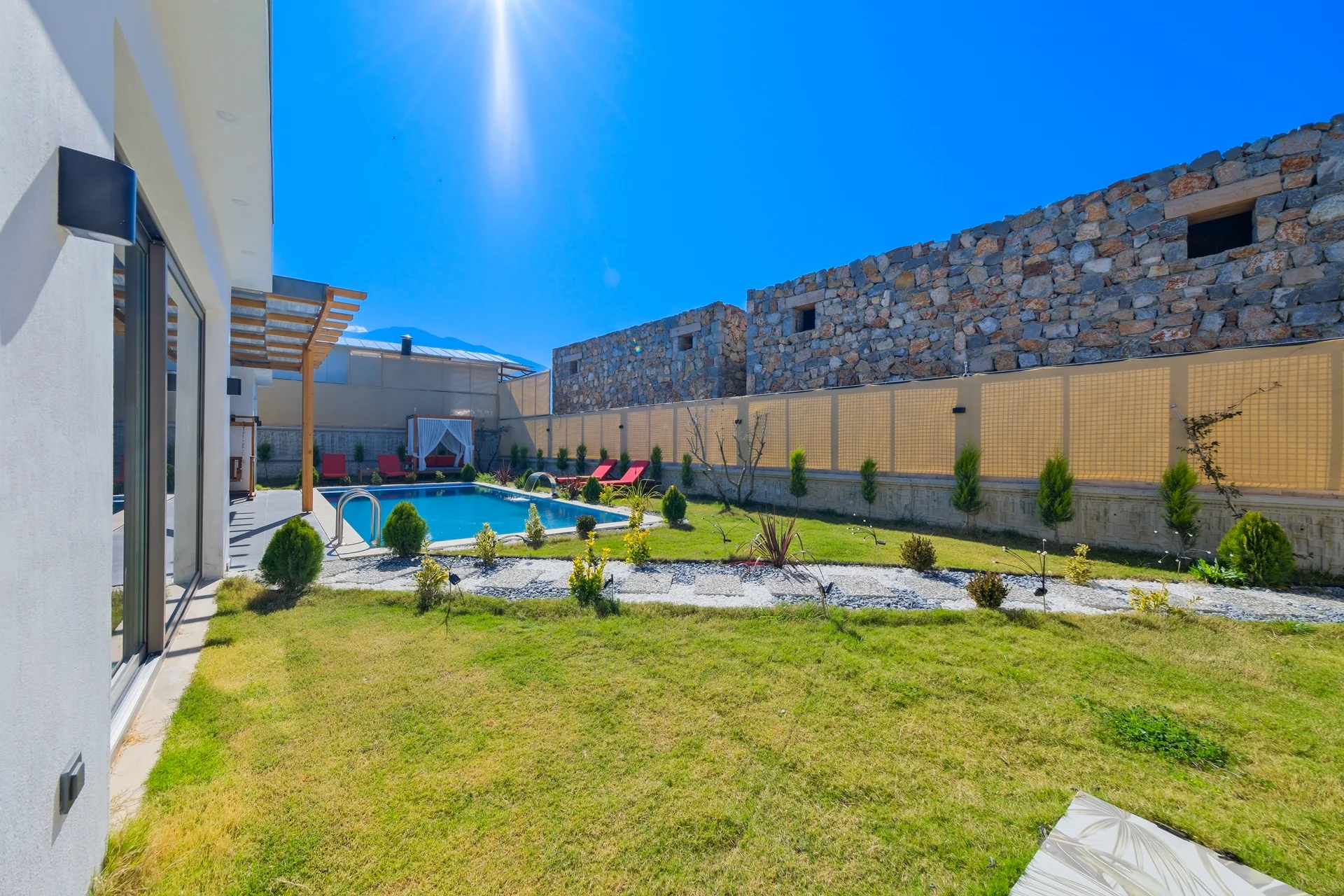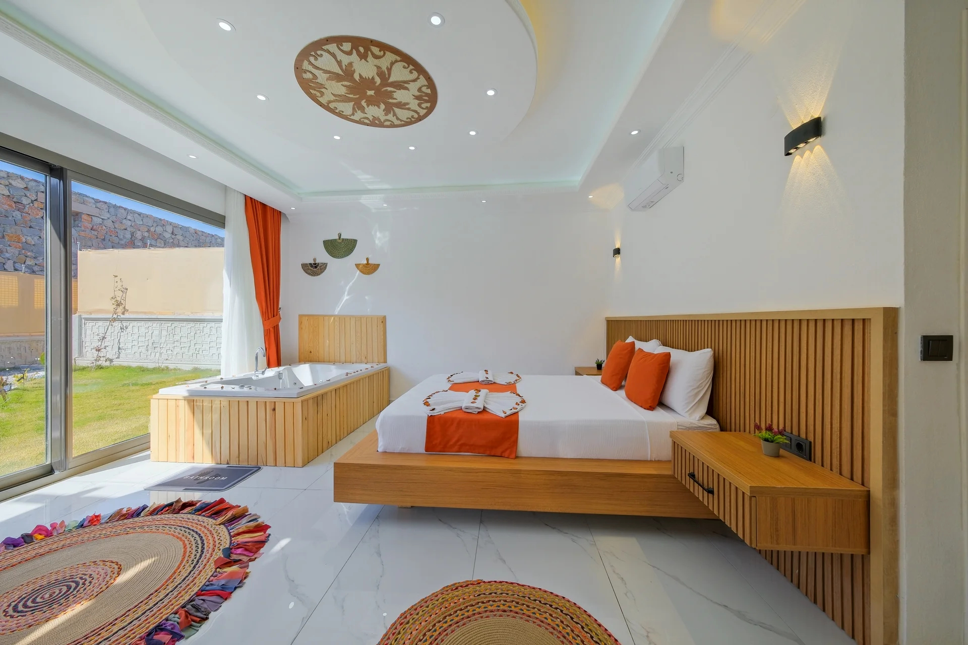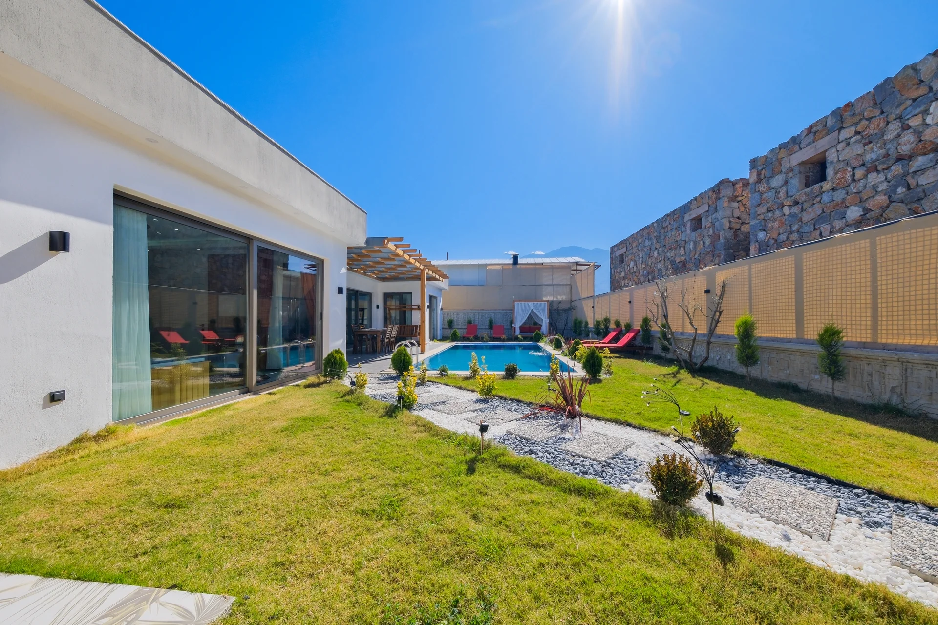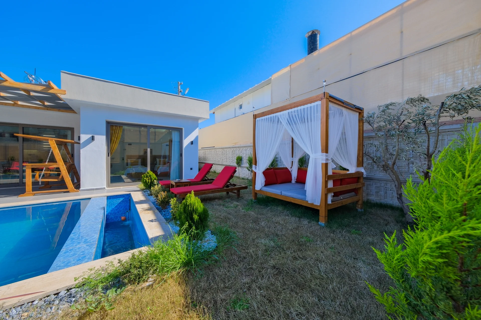 Villa Efsane : Fethiye-Çamköy’de merkezi bir konumda yer almaktadır.Korunaklı havuza sahip olan villamız 2 yatak odalı 4 kişilik tatil villamızdır. Modern ve şık dizayn edilen villamızda keyifli bir tatil geçirebilmeniz için her detay en ince ayrıntısına kadar düşünülmüştür. Konforlu bir tatil geçirmek isteyen misafirlerimiz için ideal bir tatil villasıdır. NOT : Villamızın yakınında Villa Efsane 2 bulunmaktadır. Yakın konumlu villa kiralamak isteyen misafirlerimiz için oldukça uygundur. Yatak Odaları : 1-Yatak Odası : 1 adet çift kişilik yatak, TV, makyaj masası, komodin, jakuzi, banyo & WC , klima yer almaktadır. 2-Yatak Odası : 2 adet tek kişilik yatak, elbise dolabı, komodin, klima yer almaktadır. Havuz ölçüleri: 4 m x 8 m; derinlik 1.45 m’dir. Havuz ve bahçe bakımı her gün 1 defa sabah veya akşam yapılmaktadır.