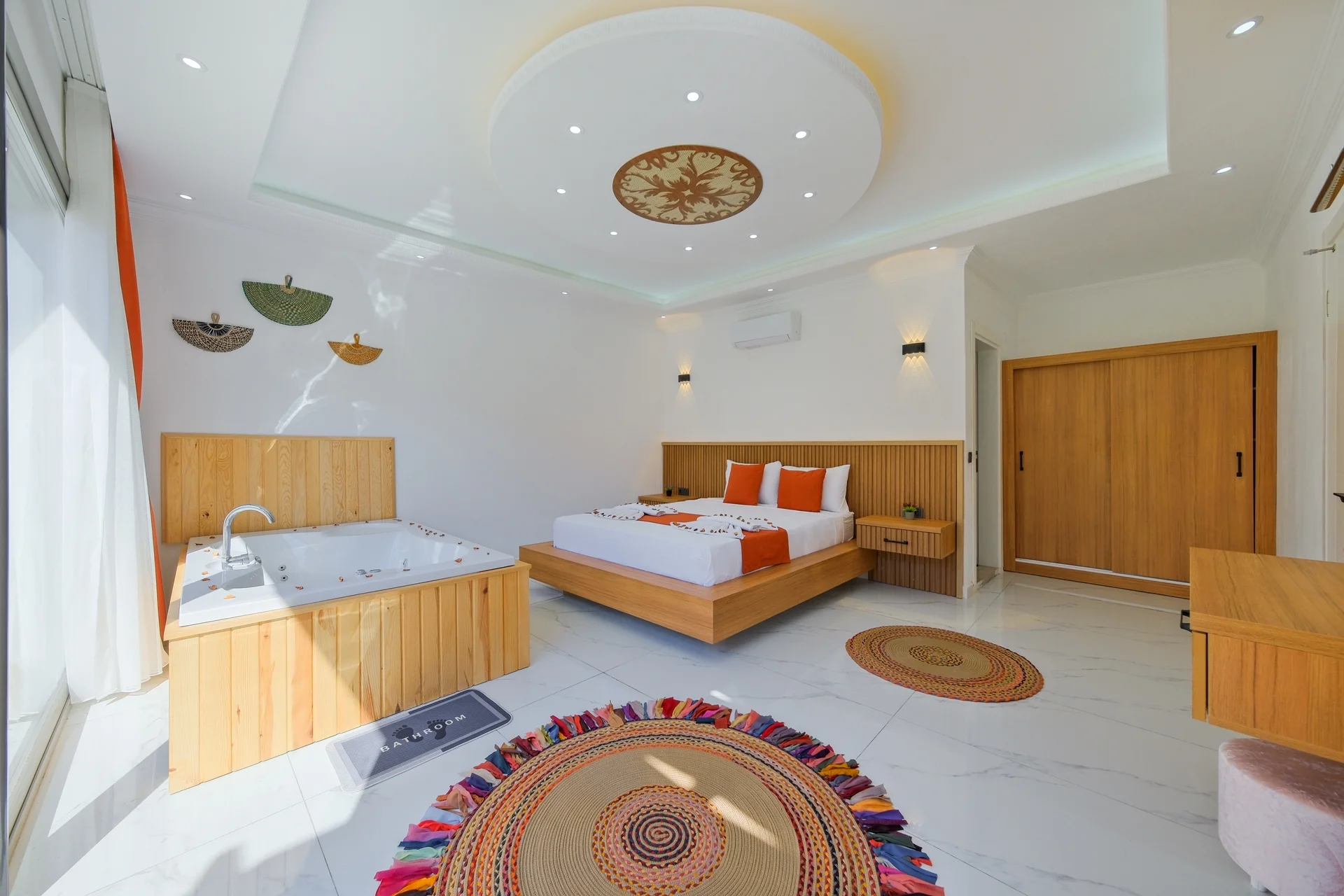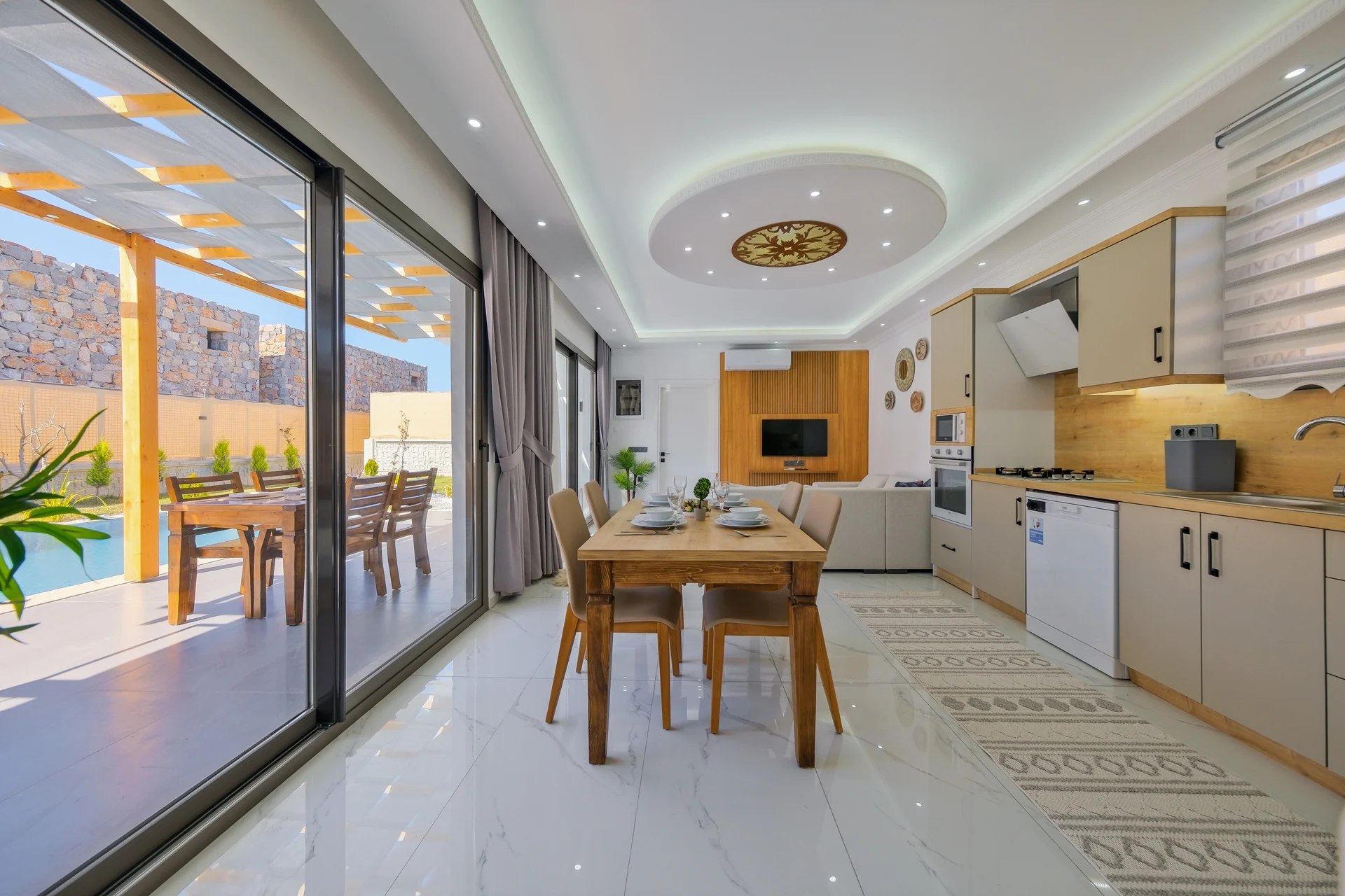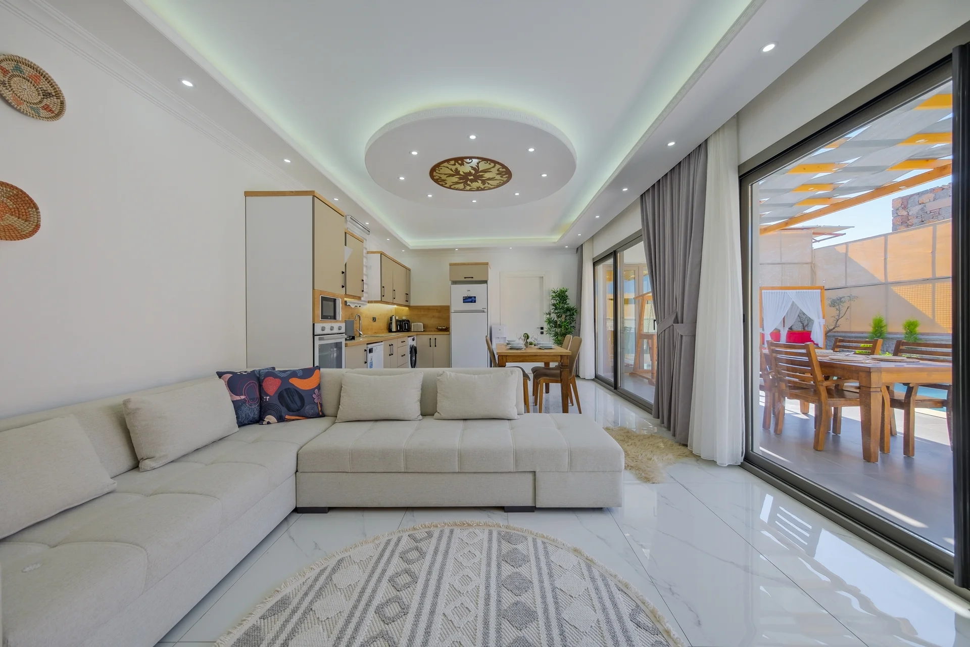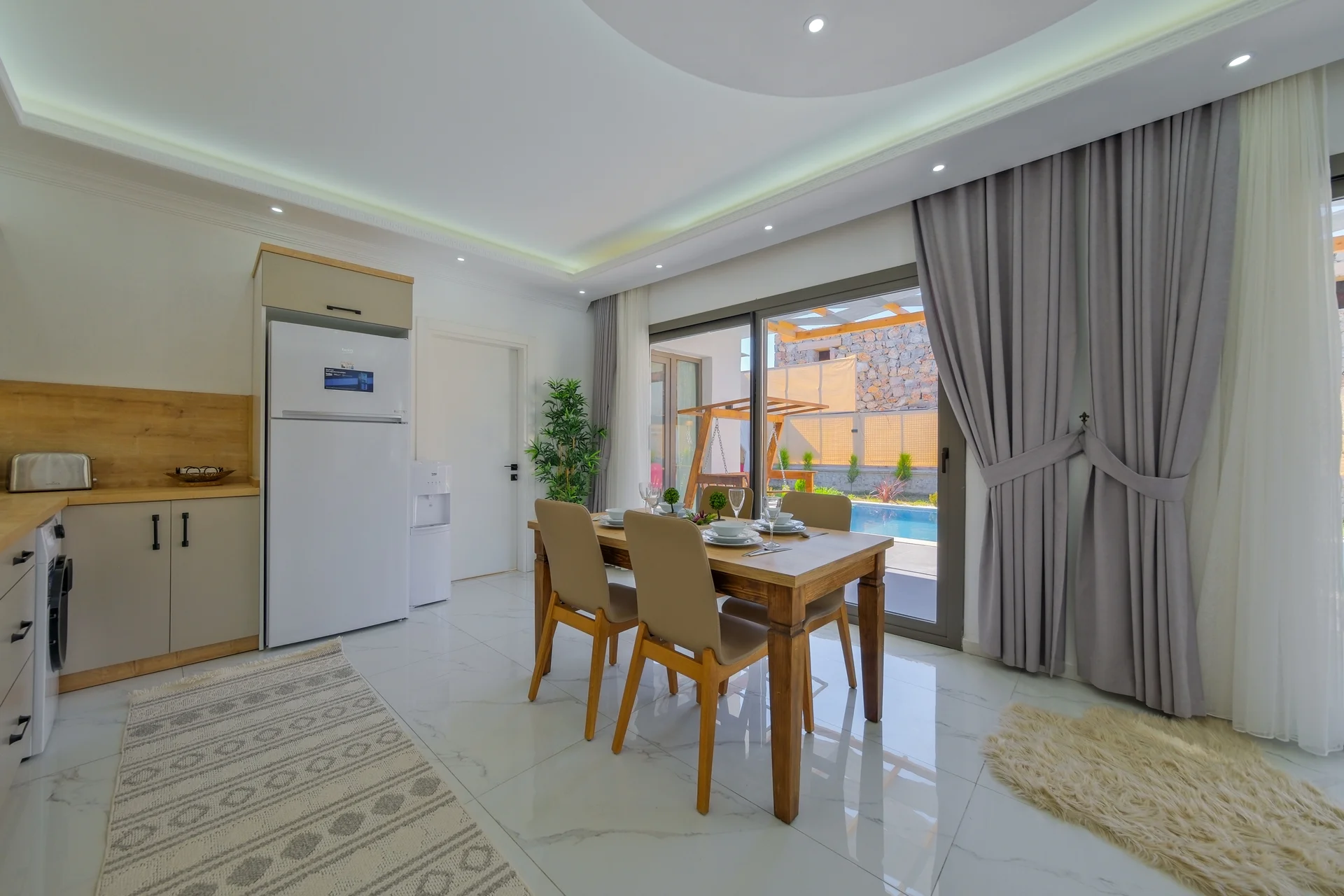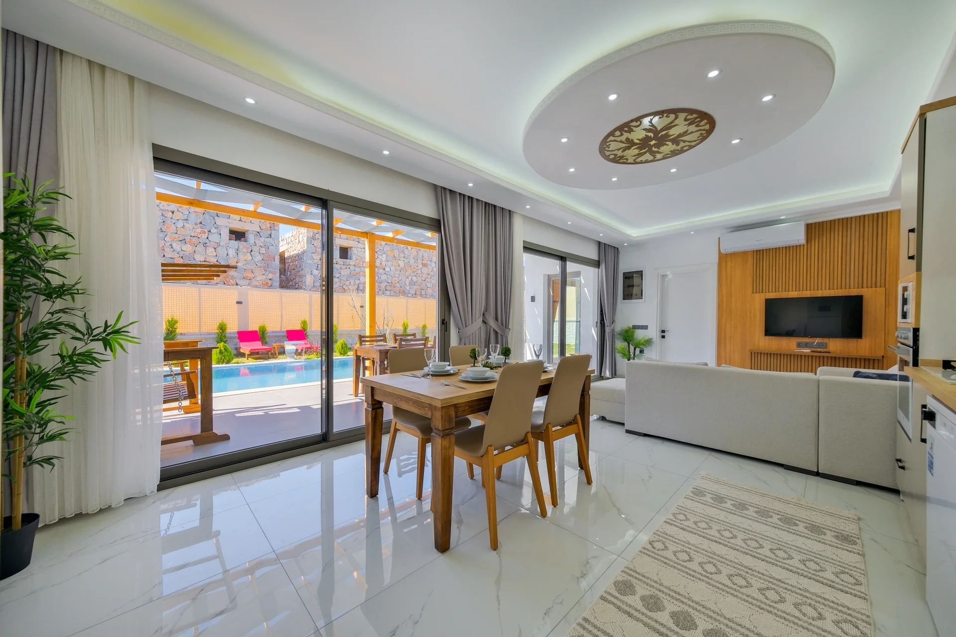 Villa Efsane : Fethiye-Çamköy’de merkezi bir konumda yer almaktadır.Korunaklı havuza sahip olan villamız 2 yatak odalı 4 kişilik tatil villamızdır. Modern ve şık dizayn edilen villamızda keyifli bir tatil geçirebilmeniz için her detay en ince ayrıntısına kadar düşünülmüştür. Konforlu bir tatil geçirmek isteyen misafirlerimiz için ideal bir tatil villasıdır. NOT : Villamızın yakınında Villa Efsane 2 bulunmaktadır. Yakın konumlu villa kiralamak isteyen misafirlerimiz için oldukça uygundur. Yatak Odaları : 1-Yatak Odası : 1 adet çift kişilik yatak, TV, makyaj masası, komodin, jakuzi, banyo & WC , klima yer almaktadır. 2-Yatak Odası : 2 adet tek kişilik yatak, elbise dolabı, komodin, klima yer almaktadır. Havuz ölçüleri: 4 m x 8 m; derinlik 1.45 m’dir. Havuz ve bahçe bakımı her gün 1 defa sabah veya akşam yapılmaktadır.