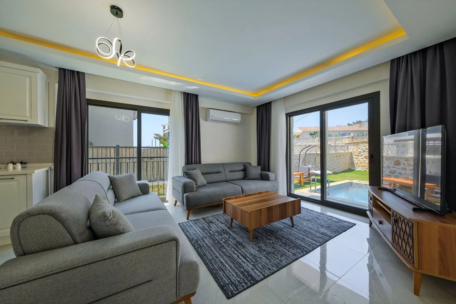 Fethiye’nin Faralya bölgesinde yer alan Villa Famose, doğayla iç içe huzurlu atmosferi ve geniş kullanım alanlarıyla sekiz kişilik konaklama kapasitesi sunan özel bir tatil villasıdır. Dört yatak odalı yapısı sayesinde kalabalık aileler ve arkadaş grupları için ideal bir seçenek oluşturur. Faralya’nın doğal dokusu ve sakin yapısı, villanın bahçeli mimarisiyle birleşerek misafirlere hem konforlu hem de dingin bir tatil imkânı sağlar. Üst katlardan görülen kısmi deniz manzarası ise özellikle gün batımlarında villa deneyimini daha keyifli bir noktaya taşır. 1.Yatak Odası: Çift kişilik yatak, Komodin, Klima, Elbise dolabı, Şifonyer, Banyo/WC bulunmaktadır. 2.Yatak Odası: Çift kişilik yatak, Komodin, Klima, Elbise dolabı,Banyo/WC bulunmaktadır. 3.Yatak Odası: 2 Adet Tek kişilik yatak, Komodin, Klima, Elbise dolabı, Banyo/WC bulunmaktadır. 4.Yatak Odası: 2 adet tek kişilik yatak, Komodin, Klima, Elbise dolabı, Banyo/WC bulunmaktadır.