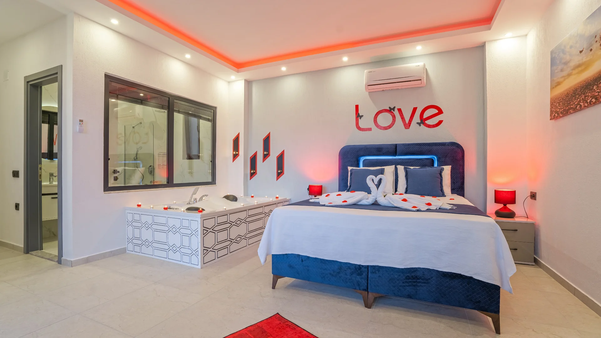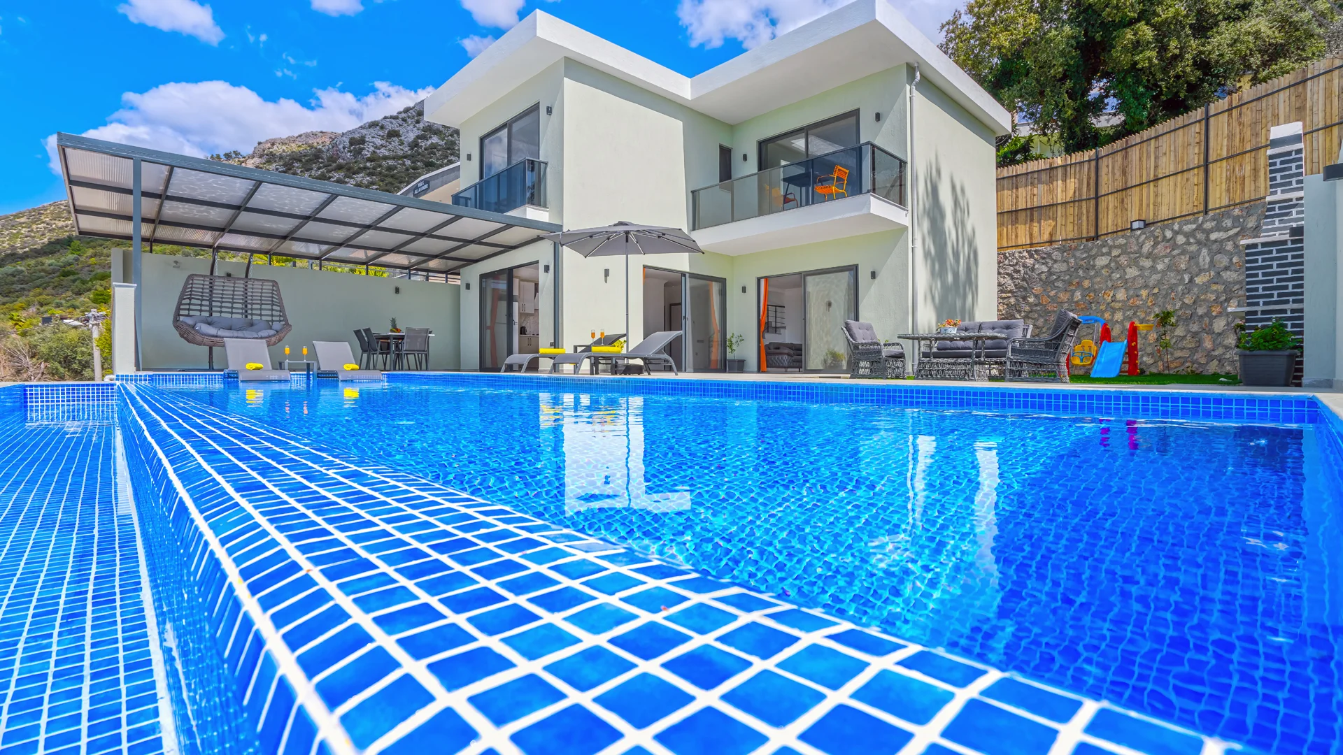Kalkan Üzümlü Bölgesinde bulunan 4 Kişi konaklama kapasitesine sahip Hakim Deniz Manzaralı, Korunaklı, Jakuzili ,Kiralık villamızdır. Muhteşem Deniz manzarasının yanı sıra çok şık dizaynı ve huzur dolu ortamı ile siz değerli misafirlerimiz için harika bir seçenek olacaktır. Barbekü, Oyun alanları ve Büyük Havuzu ile bir villa tatilinden arayacağınız hemen her şeyi sizlere sunan bir villadır. Havuz Boyutları: 11.5 METRE - 4 METRE - 1.4 METRE