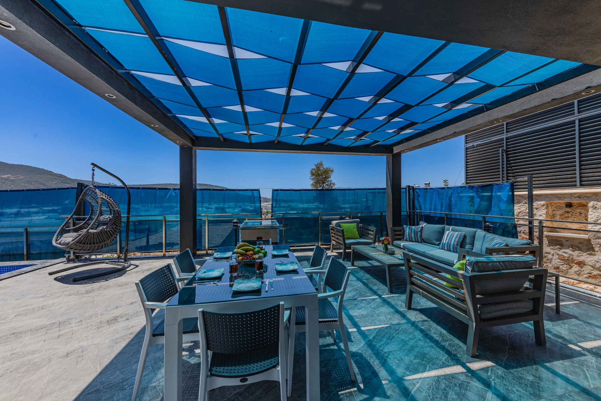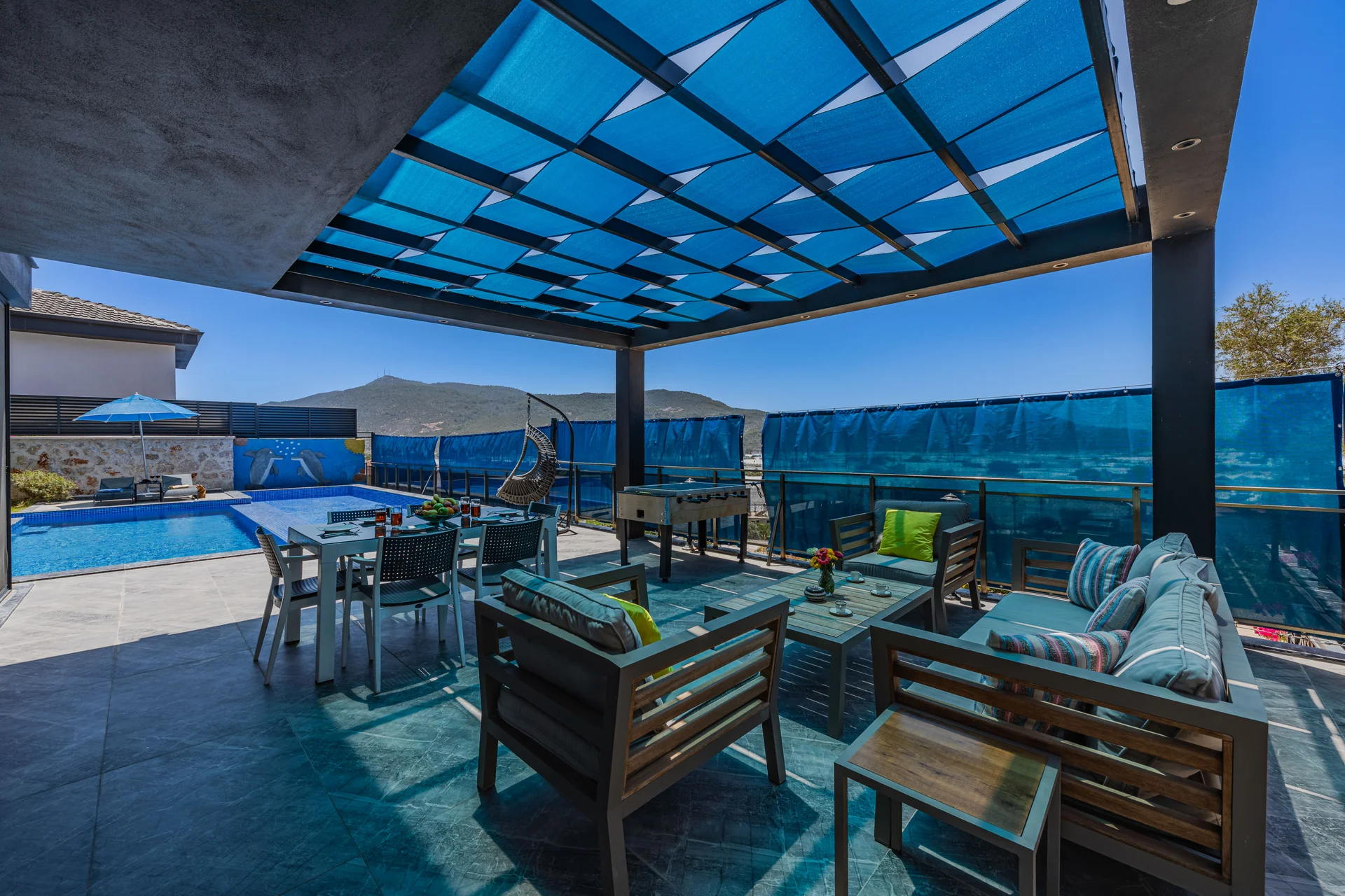 Villa Melda: Antalyaʼnın Kaş ilçesi, Kalkanʼın Yeşilköy bölgesinde yer almakta olan villamızdır. 2 yatak odası ile 4 kişiye kadar konaklama imkanına sahip villamız, özel havuzlu ve %100 korunaklıdır, ayrıca sığ havuzu çocuk havuzu olarak değerlendirilebilir. Villamızʼda langırt yer almaktadır. Villamızın yeşil bahçesi içerisinde küçük bir çocuk oyun parkı bulunmaktadır. Salon : Oturma grubu, klima, LCD TV, sehpa, uydu alıcı bulunmaktadır. Havuz terasına çıkış yapılabilmektedir. Mutfak : Buzdolabı, bulaşık makinası,fırın,4ʼlü ocak, mikrodalga fırın, kettle, yemek masası, yemek takımları, çatal ve bıçak takımları, tencere ve tava takımları, bardaklar bulunmaktadır.
