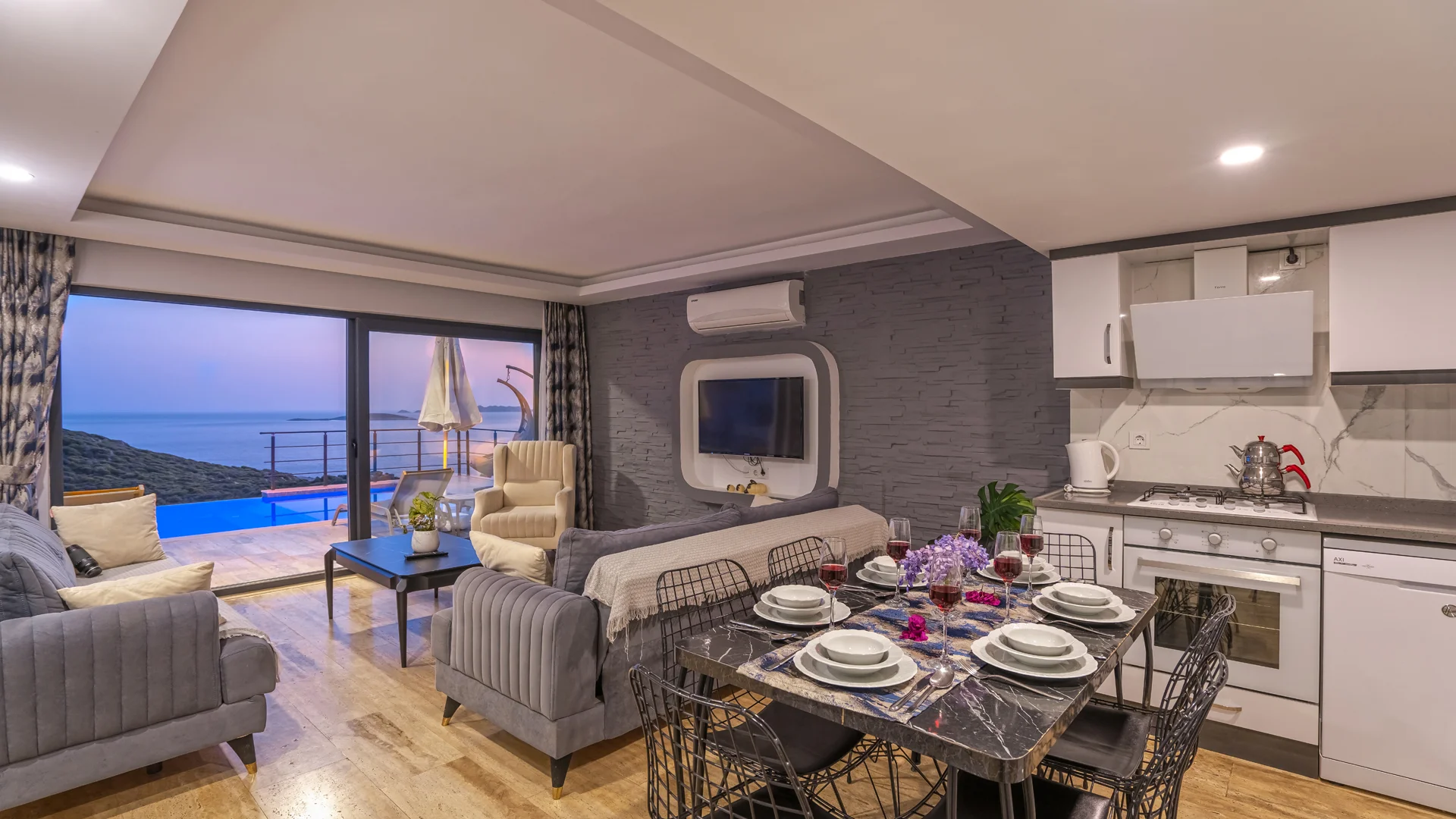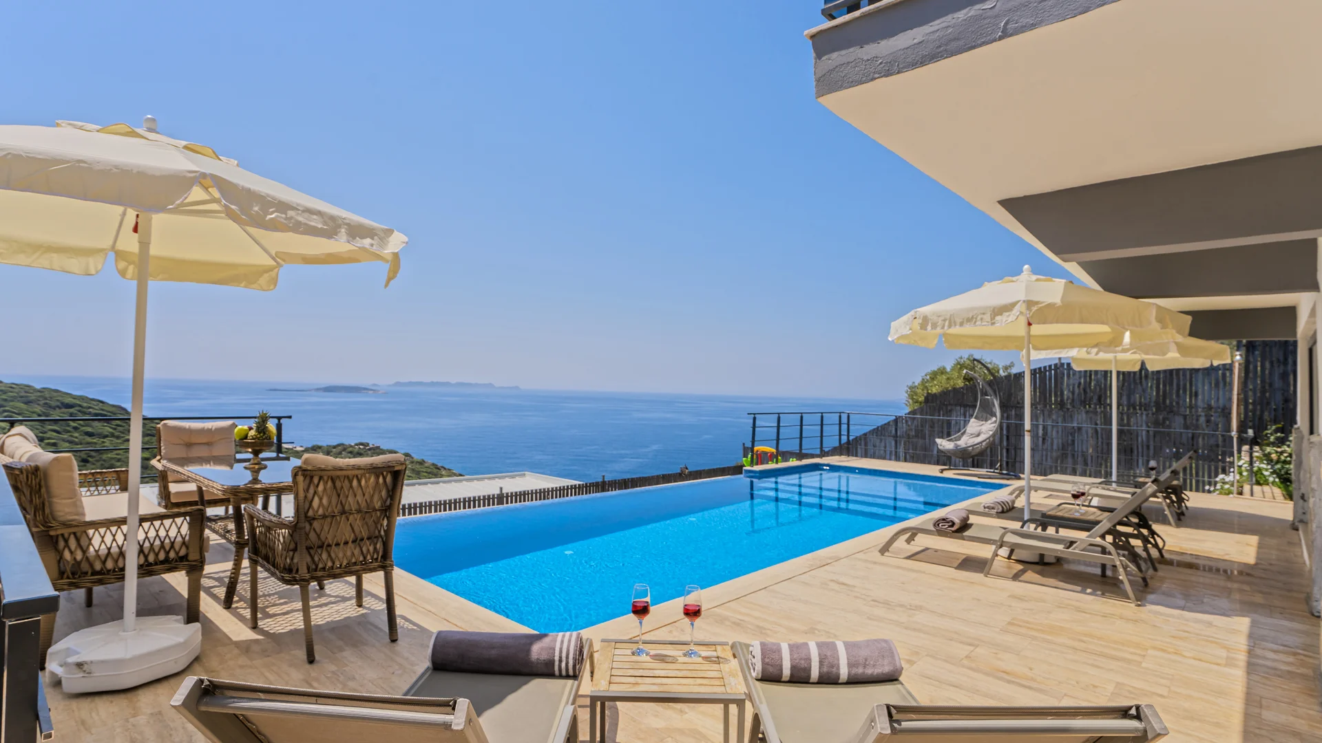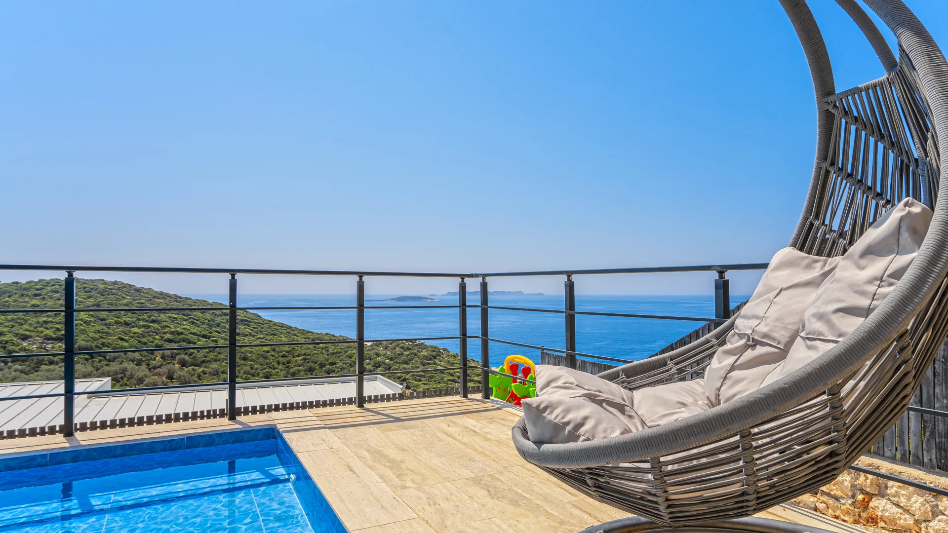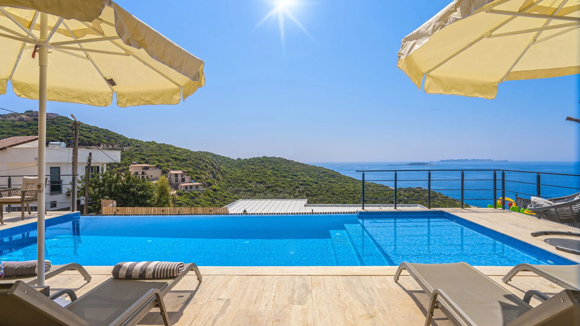 Villa Nevra 2 Kaş Gökseki bölgesinde muhteşem deniz manzarasına sahip, 3 yatak odalı 6 kişi kapasiteli çift jakuzili Kiralık Villamızdır. Doğa içerisinde sizlere şehrin gürültüsünden ve kalabalığından uzak muhteşem bir tatil sunan villamızın manzarası eşsiz bir manzara olup Kaş denizinin maviliklerini doyasıya izleyebileceğiniz bir konumda bulunmaktadır.