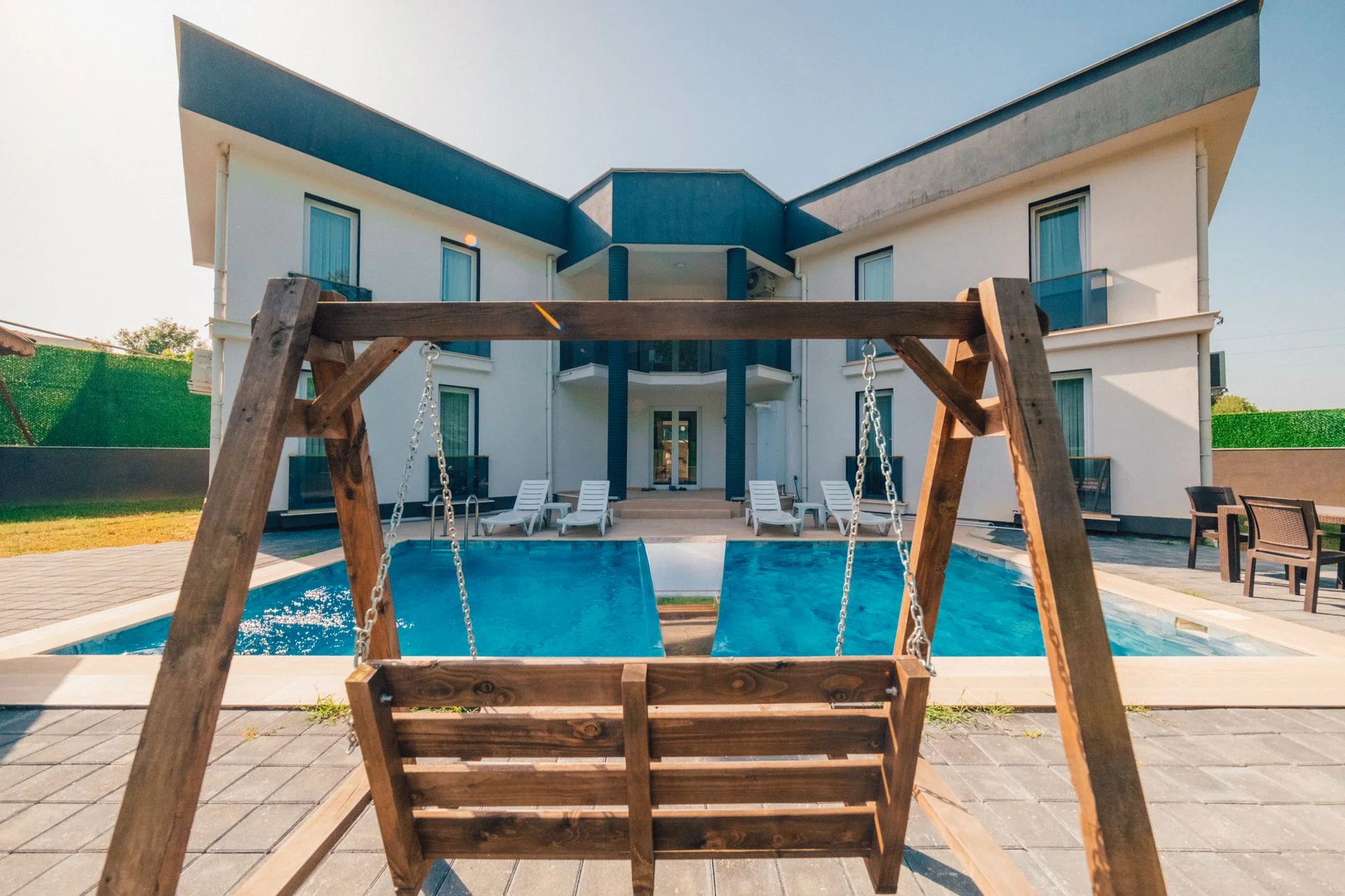 Villa Number One; Sakaryaʼnın Sapanca beldesinde konumlanan 5 Yatak odalı 4 tuvalet banyolu 12 kişilik konaklama kapasitesine sahip tatil villamızdır. Muhteşem doğa içerisinde bulunan Villa Number One, merkeze de yakın konumdadır. Salon : Oturma grubu, Televizyon, uydu alıcısı, elektrikli süpürge, ütü ve ütü masası, sehpa, klima bulunmaktadır. Mutfak : Eksiksiz ve modern bir şekilde dekorize edilmiş Amerikan mutfağımızın içerisinde yer alan buzdolabı, fırın, su ısıtıcısı, çatal, bıçak gibi mutfak eşyaları sayesinde kolayca yemeklerinizi hazırlayabilirsiniz. Havuz Boyutu: En: 5 m Boy: 10 m Derinlik: 1,50 m
