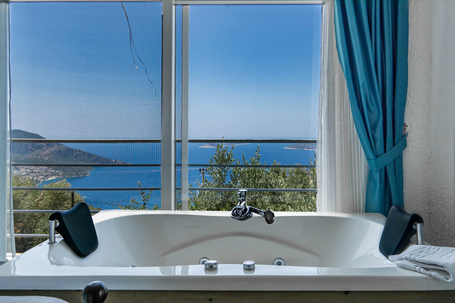 Villa Paradise 3: Kalkan Kördere mevkiinde konumlanan özel havuzu tam korunaklı balayı villamızdır. Taş yapısıyla ve hasır çatısıyla şık bir mimariye sahiptir. Konumu itibariyle merkeze yakın ve kolay ulaşım sağlayabileceğiniz bir noktadadır. Villamızın muhteşem deniz manzarası ve harika iç dizaynıyla sizlere son derece rahat ve konforlu bir tatil sunmaktadır. Kalkan Kördere mevkiinde yer alan villamız, merkeze yakın bir konumda bulunmaktadır. Dünyaca ünlü Kaputaş Plajıʼna yaklaşık 10-15 dk mesafededir. Gece hayatına ve şehir hayatına yakın konumda olmasıyla ön plana çıkmaktadır. Salon : Oturma grubu, klima, LCD TV, sehpa, uydu alıcı bulunmaktadır. Havuz terasına çıkış yapılabilmektedir. Mutfak : Buzdolabı, bulaşık makinası,fırın,4ʼlü ocak, mikrodalga fırın, kettle, yemek masası, yemek takımları, çatal ve bıçak takımları, tencere ve tava takımları, bardaklar bulunmaktadır.