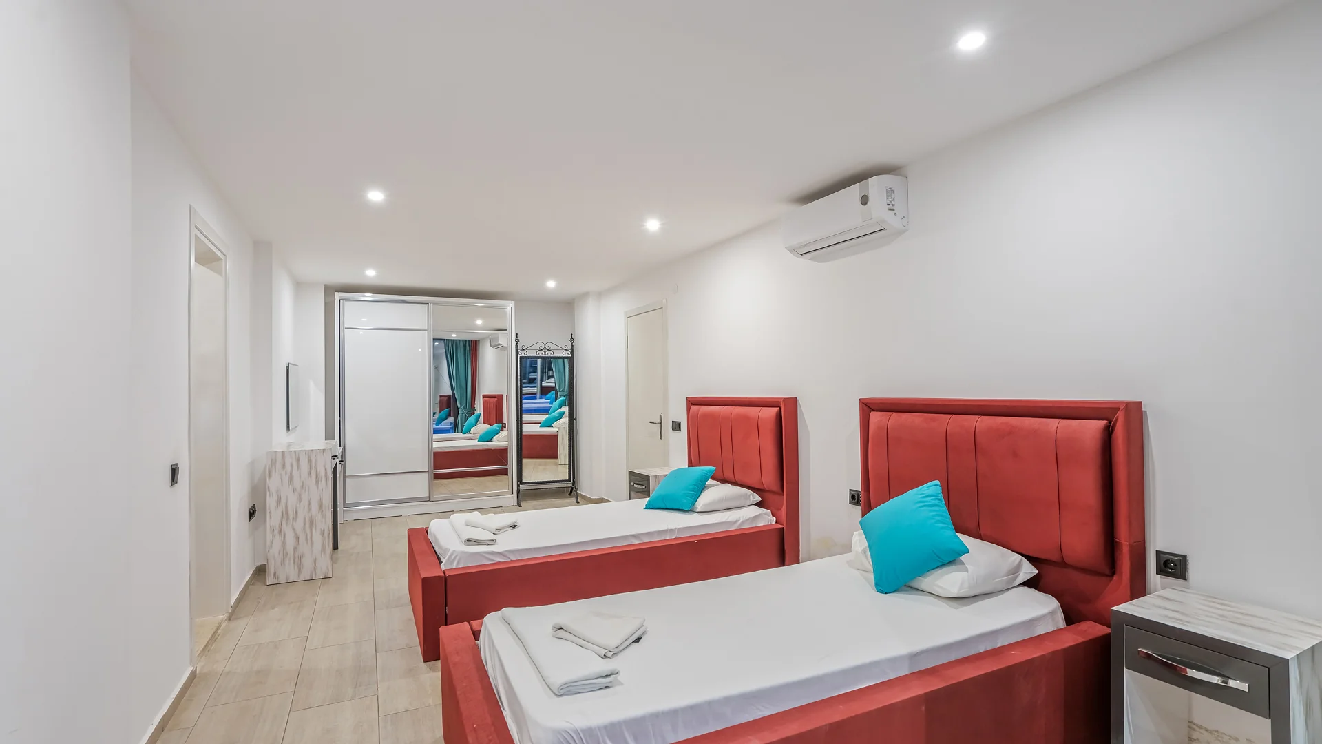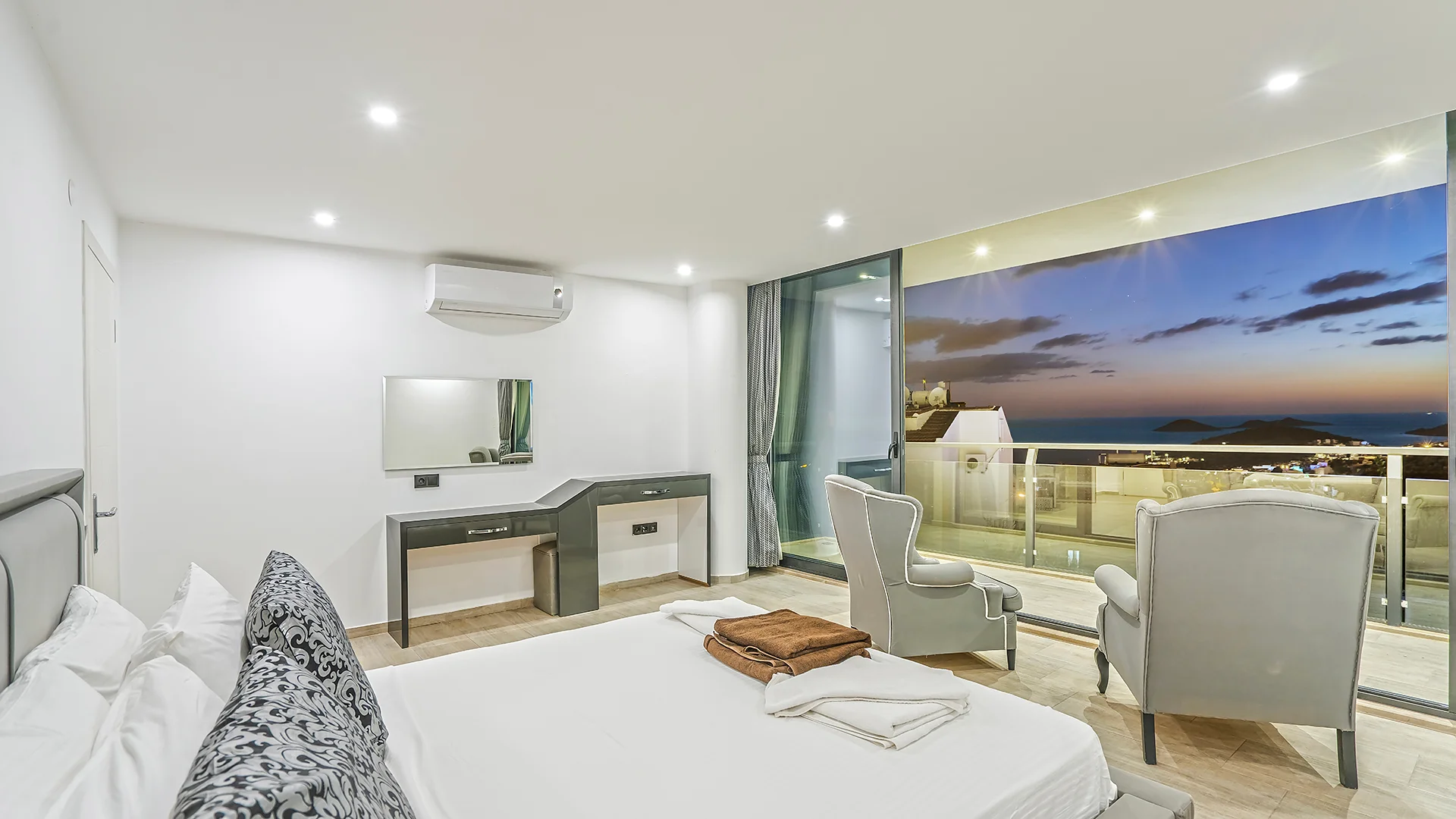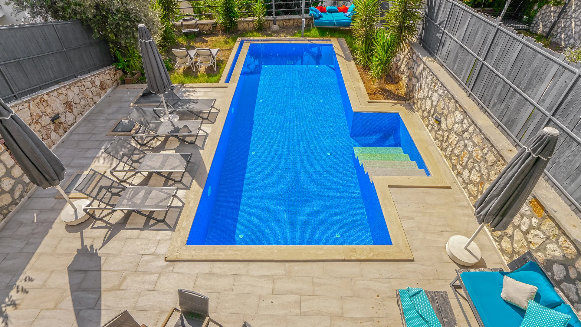 Villa Santini: Kalkan’ın en gözde bölgelerinden biri olan Kızıltaş mevkiinde, 8 kişilik konaklama kapasitesine sahip, lüks detaylarla donatılmış bir tatil villamızdır. Villa Santini, modern tasarımı ve etkileyici deniz manzarasıyla misafirlerine unutulmaz bir tatil fırsatı sunar.Lüks detaylarla donatılmış Villa Santini, sadece konforlu bir konaklama değil, aynı zamanda dinamik bir tatil arayanlar için de ideal bir yerdir. Villanın spor salonunda formunuzu koruyabilir ve tatil boyunca aktif yaşam tarzınızı sürdürebilirsiniz.Villa Santini, hem dinlenmek hem de eğlenceli bir tatil yapmak isteyen misafirlermiz için mükemmel bir seçenektir. Deniz manzarası, lüks olanakları ve özel detaylarıyla bu villamız, sevdiklerinizle birlikte unutulmaz anılar için sizleri bekliyor. Havuz Boyutu : En: 5,5 m Boy: 10 m Derinlik: 1,5 m