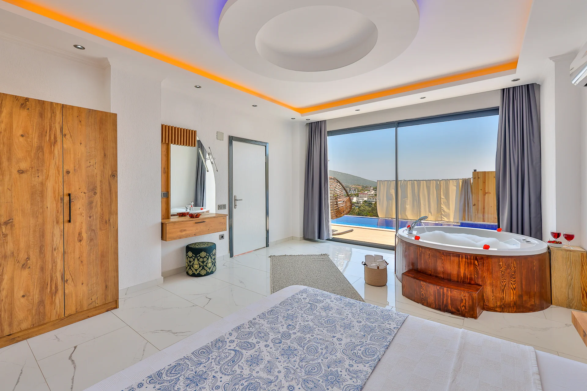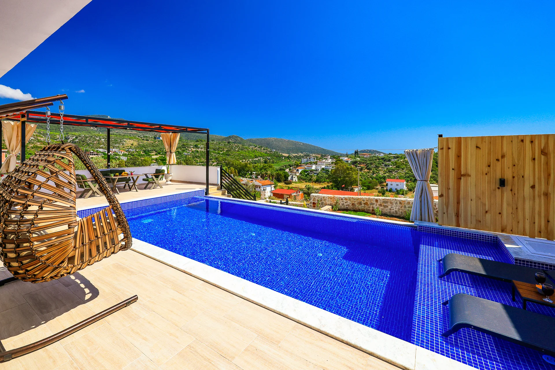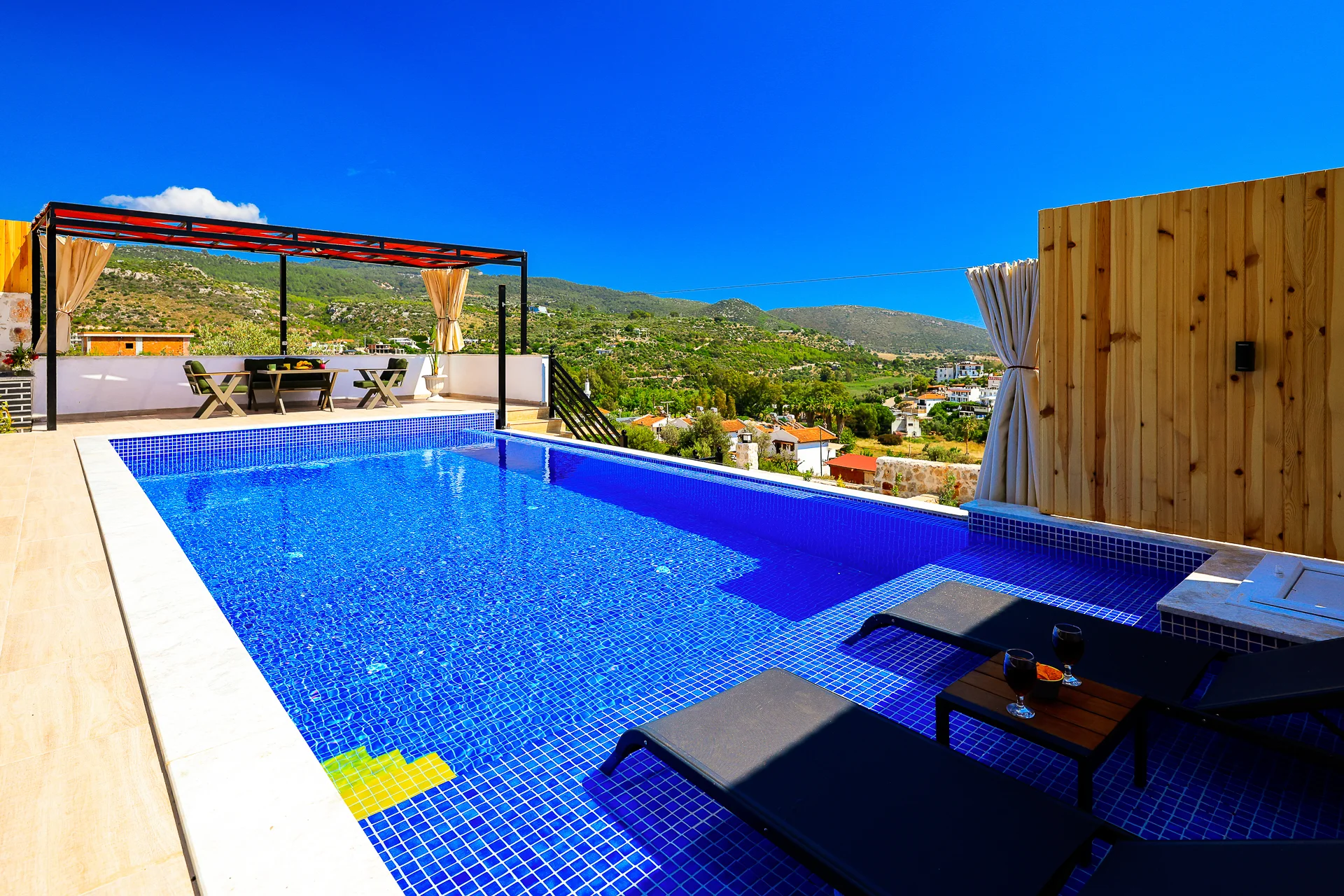 Villa Fatma, Kaş Patara bölgesinde bulunan Tam korunaklı Havuzlu Kiralık Balayı villamızdır. Oldukça merkezi konumda yer alan villamız patara şehrine , antik kentine ve patara plajına maksimum 5 dakikalık mesafededir. Harika iç dizaynı ile sizlere rahat bir tatil sunmak için tasarlanmıştır. Havuz terasına yatak odası ve salondan ayrı ayrı çıkışlar mevcuttur . Ayrıca Jakuzisi havuz manzaralıdır. Hakim konumu sayesinde şehri net şekilde görebileceğiniz gibi dilediğiniz taktirde kimse sizi göremeyecektir. Not: Villaya girişte 4000 TL hasar depozitosu alınır. Hasar olmaması durumunda çıkış günü iade edilir. Tüm villalarımıza ilk gün giriş saati öğleden sonra 16.00, en son gün villadan ayrılma saati sabah 10.00’dur. Aradaki zaman diliminde temizlik yapıldığı için Villaya/Aparta giriş saatinizden erken gelmeniz durumunda size yardımcı olamayacağımızı belirtmek isteriz. Lütfen villaya giriş ve çıkış saatlerine riayet ediniz.