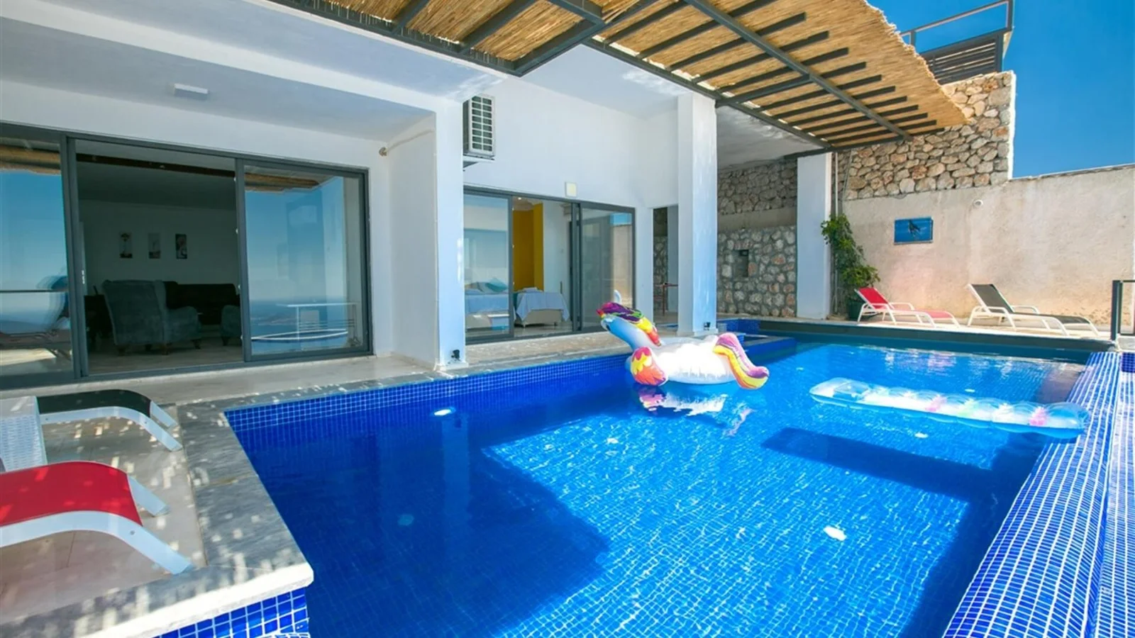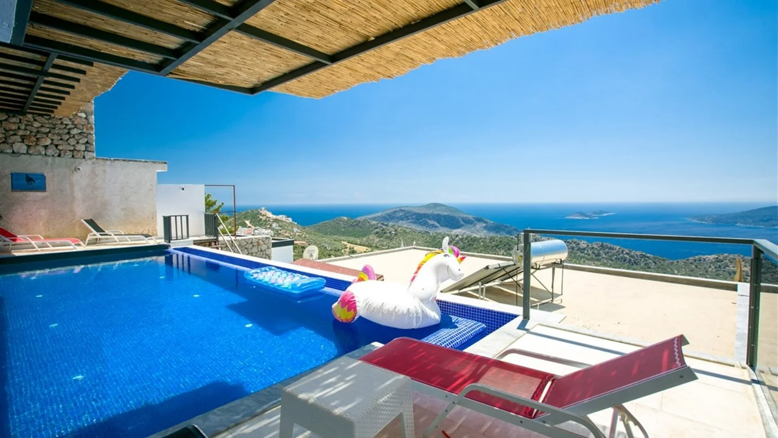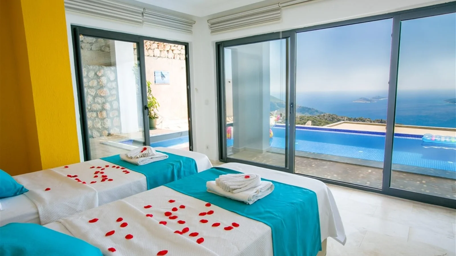 Villa Rimay, Kalkan Kördere bölgesinde yer alan deniz manzaralı özel yüzme havuzlu kiralık tatil villasıdır. Kiralık Villa Rimay, jakuzili villalar, balayı villaları ve deniz manzaralı villalar kategorisinde yer alan 2 yatak odalı 4 kişi konaklama olanağına sahiptir. Eşsiz deniz ve doğa manzarasıyla, lüks ve ayrıcalıklı tatil imkanı sunuyor. Balayı çiftlerimiz ve çekirdek ailelerimiz için ideal seçenekler arasındadır. Sadece size özel havuzlu villada tatil fırsatı sunan villamızın, denize uzaklığı yaklaşık 5 km’dir. Not: Villamızda minimum kiralama 5 gecedir. 7 gece altındaki konaklamalarda ekstra 4500 TL temizlik ücreti talep edilmektedir. Hasar Depozitosu: Villaya girişte 5000 TL nakit hasar depozitosu alınmaktadır. Villada hasar, zayi, kırık vb. gibi durumlar oluşmaması durumunda bu bedel çıkış gününde iade edilmektedir.