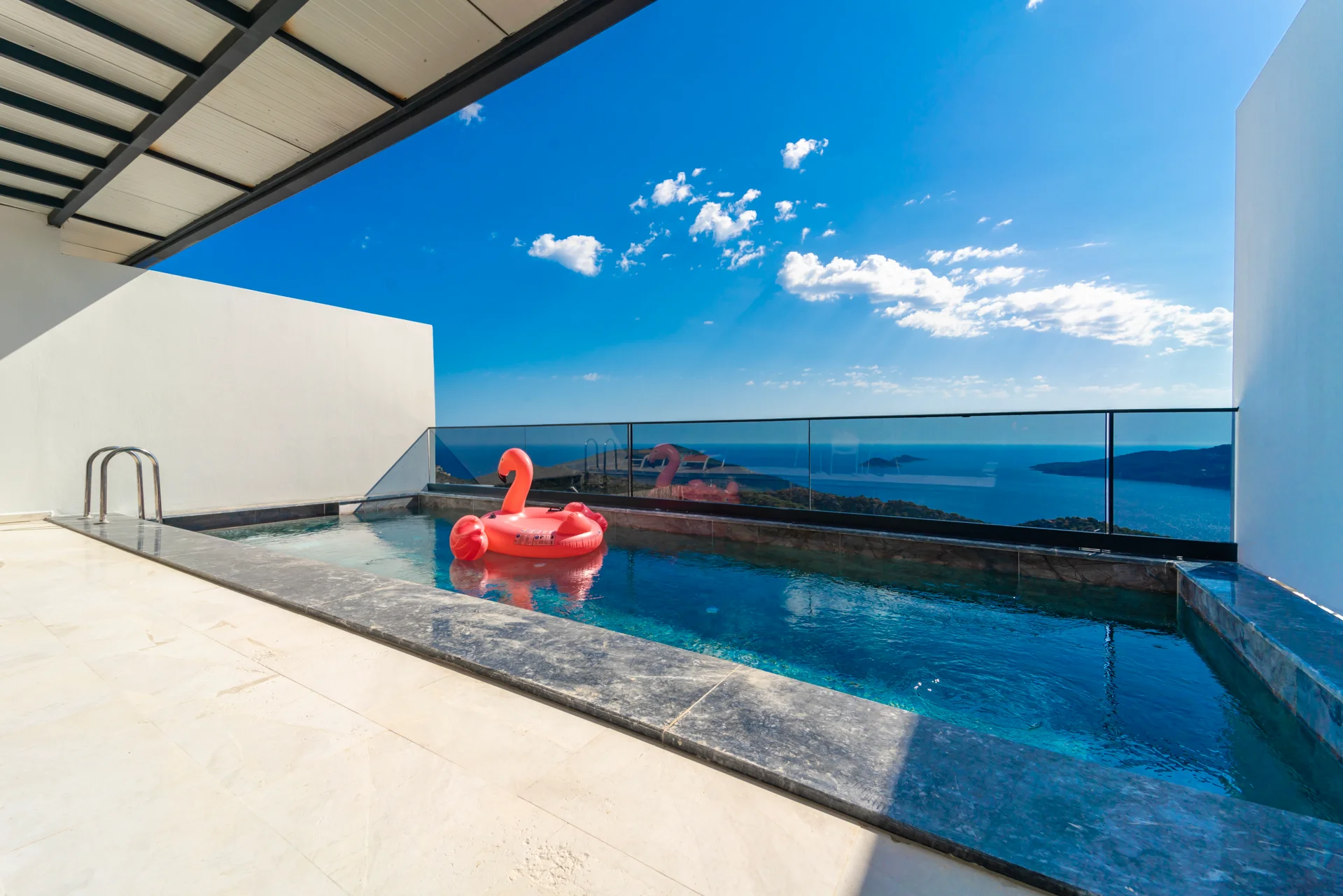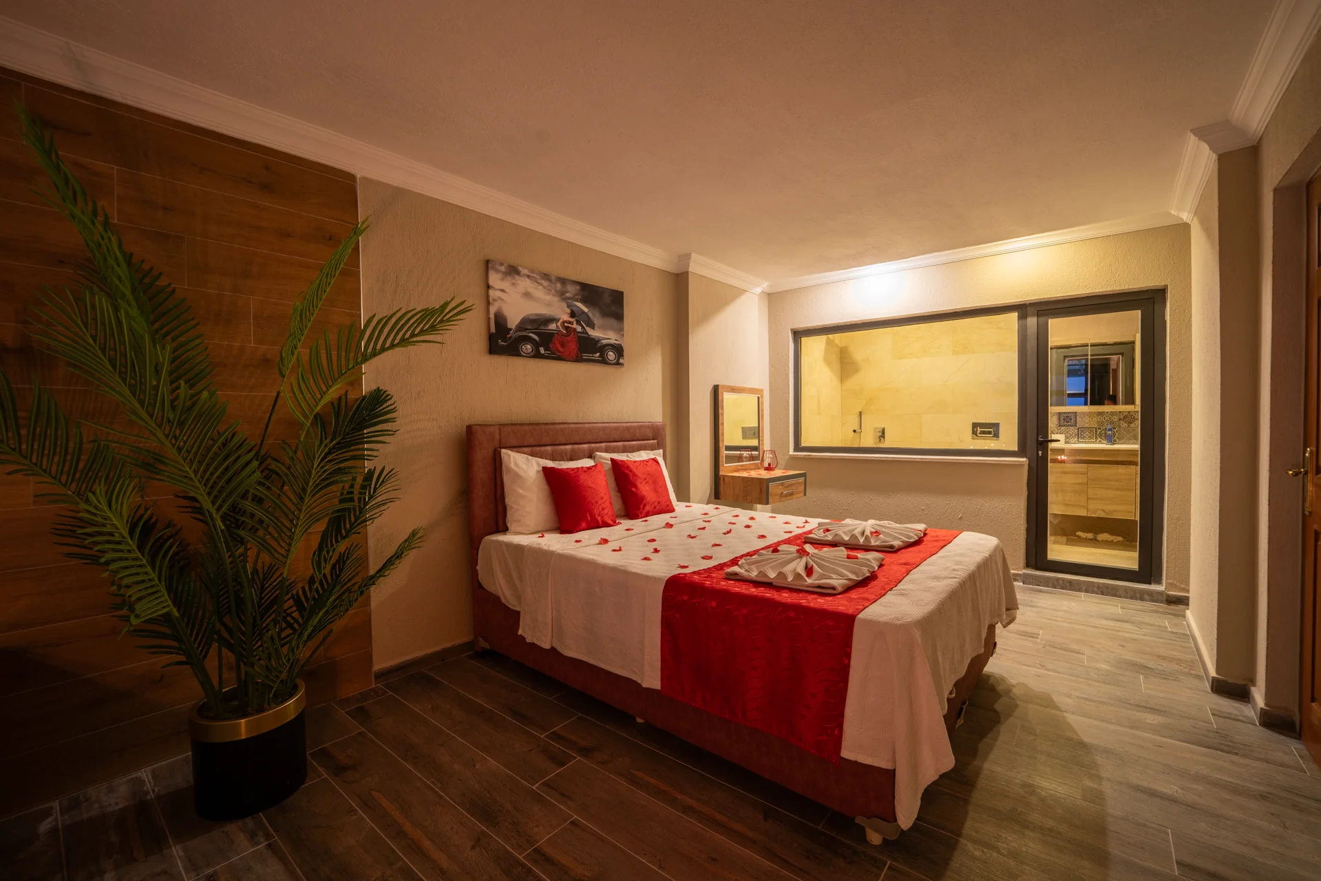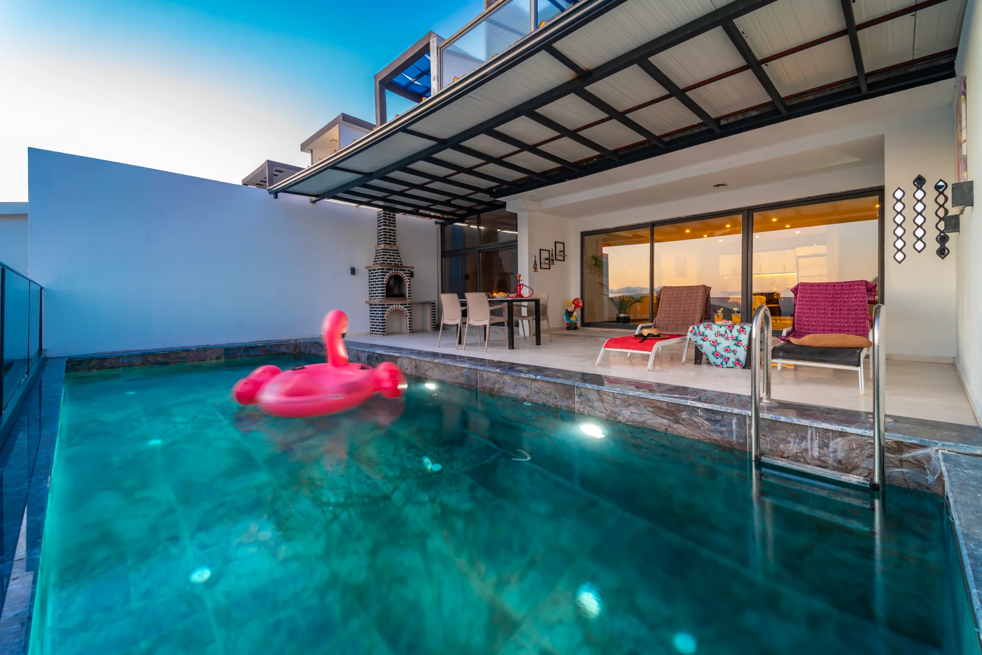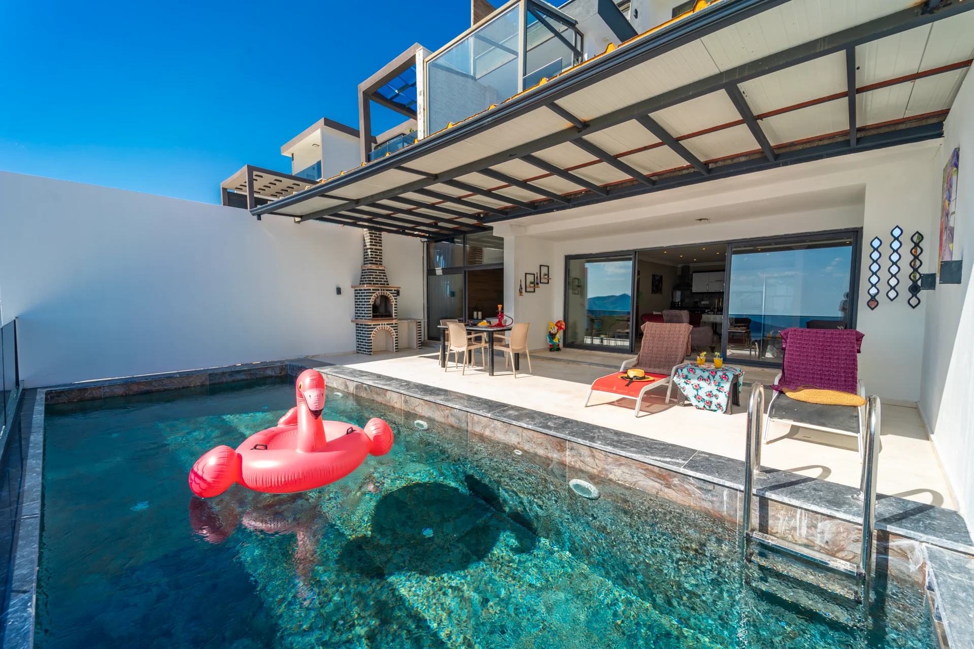 Villa Ruvia: Kalkanʼın Kördere bölgesinde, 1 yatak odalı 2 kişi konaklama kapasiteli deniz manzaralı villamızdır. Villamızda keyifli vakit geçirebilieceğiniz havuz terası oturma grubu ve barbekü bulunmaktadır. Özellikle balayı çiftleri ve çekirdek aileler için tasarlanan bu villa, jakuzisi ve muhteşem manzarasıyla müşterilerimize ayrıcalıklı bir tatil deneyimi sunar. Havuz Boyutu : En: 3,5 m Boy: 8 m Derinlik: 1,55 m Depozito : Villaya girişte 5000TL depozito alınmaktadır. Herhangi bir hasar, kırık dökük, kayıp gibi problemler olmadığı taktirde villadan ayrılıştan 10 dk. önce villa/apart kontrol edilip depozito misafirimize iade edilmektedir. Tüm villalarımıza ilk gün giriş saati öğleden sonra 16.00, en son gün villadan ayrılma saati sabah 10.00’dur. Aradaki zaman diliminde temizlik yapıldığı için Villaya/Aparta giriş saatinizden erken gelmeniz durumunda size yardımcı olamayacağımızı belirtmek isteriz. Lütfen villaya giriş ve çıkış saatlerine uyunuz .
