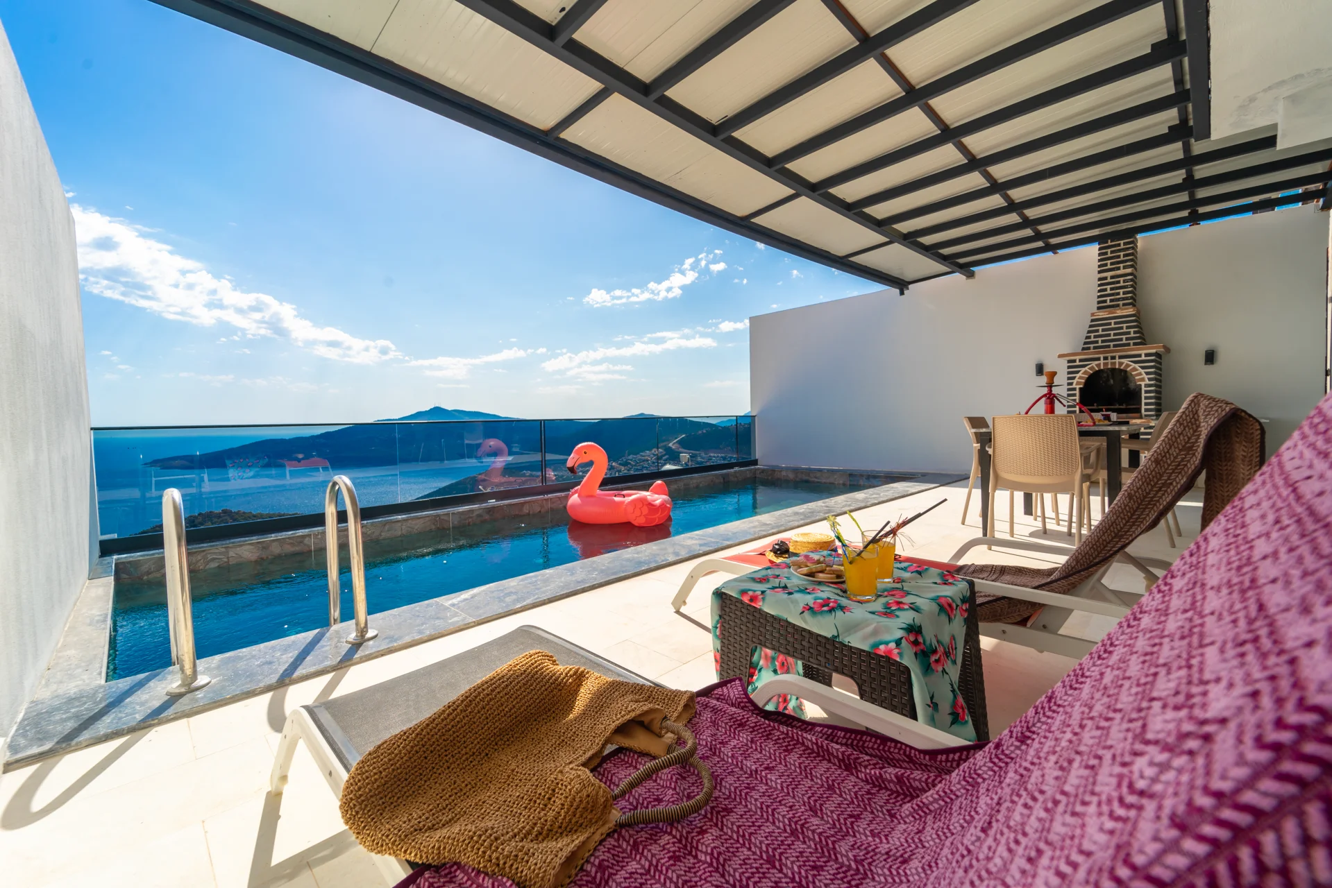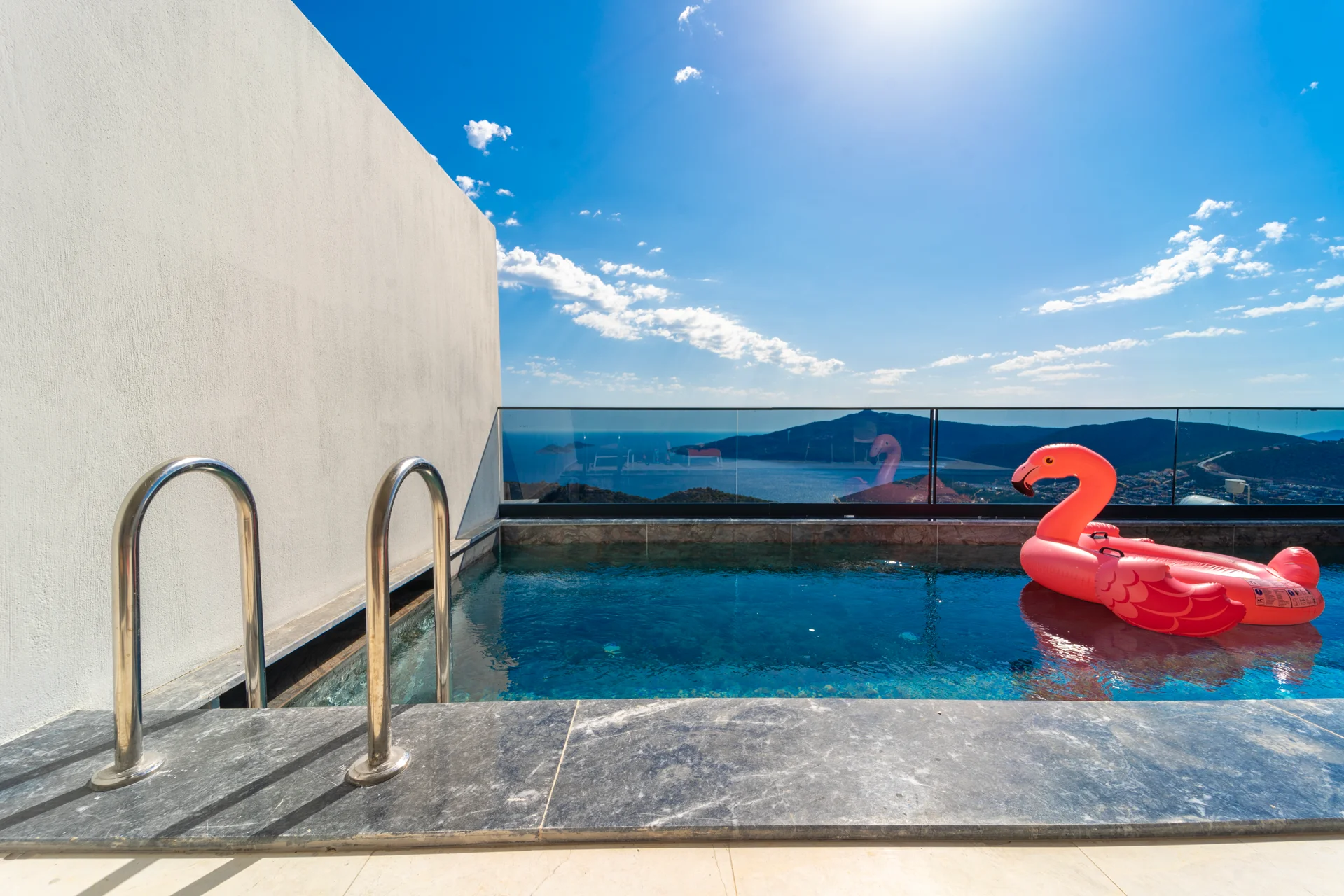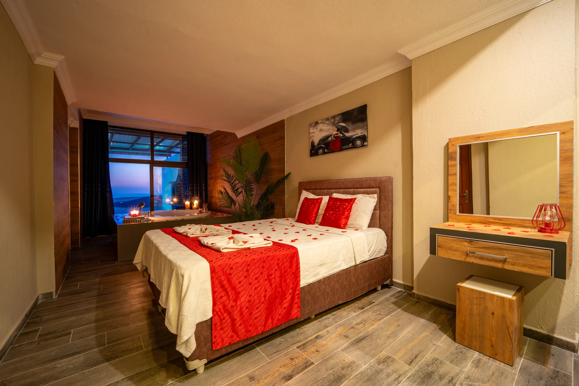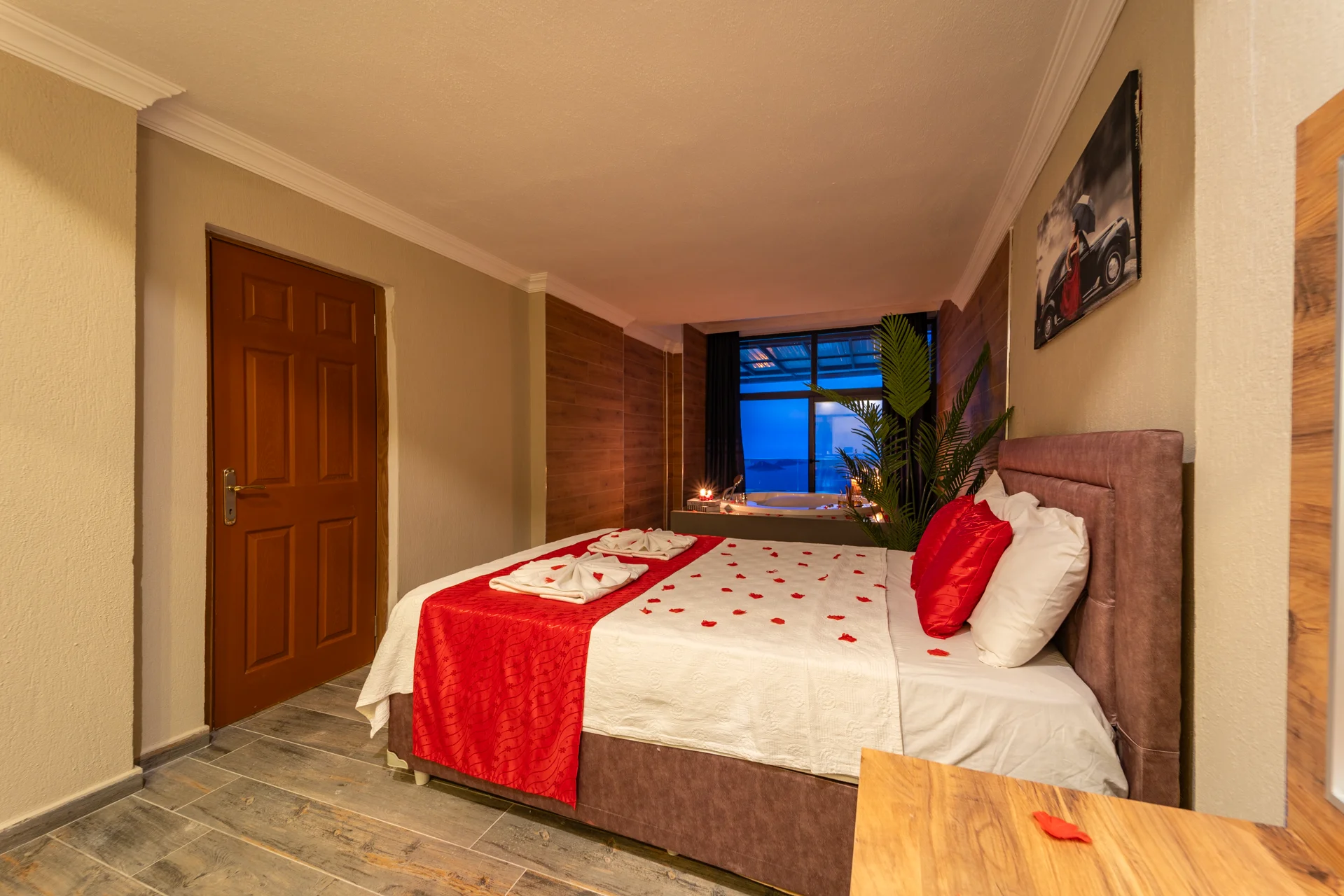 Villa Ruvia: Kalkanʼın Kördere bölgesinde, 1 yatak odalı 2 kişi konaklama kapasiteli deniz manzaralı villamızdır. Villamızda keyifli vakit geçirebilieceğiniz havuz terası oturma grubu ve barbekü bulunmaktadır. Özellikle balayı çiftleri ve çekirdek aileler için tasarlanan bu villa, jakuzisi ve muhteşem manzarasıyla müşterilerimize ayrıcalıklı bir tatil deneyimi sunar. Havuz Boyutu : En: 3,5 m Boy: 8 m Derinlik: 1,55 m Depozito : Villaya girişte 5000TL depozito alınmaktadır. Herhangi bir hasar, kırık dökük, kayıp gibi problemler olmadığı taktirde villadan ayrılıştan 10 dk. önce villa/apart kontrol edilip depozito misafirimize iade edilmektedir. Tüm villalarımıza ilk gün giriş saati öğleden sonra 16.00, en son gün villadan ayrılma saati sabah 10.00’dur. Aradaki zaman diliminde temizlik yapıldığı için Villaya/Aparta giriş saatinizden erken gelmeniz durumunda size yardımcı olamayacağımızı belirtmek isteriz. Lütfen villaya giriş ve çıkış saatlerine uyunuz .