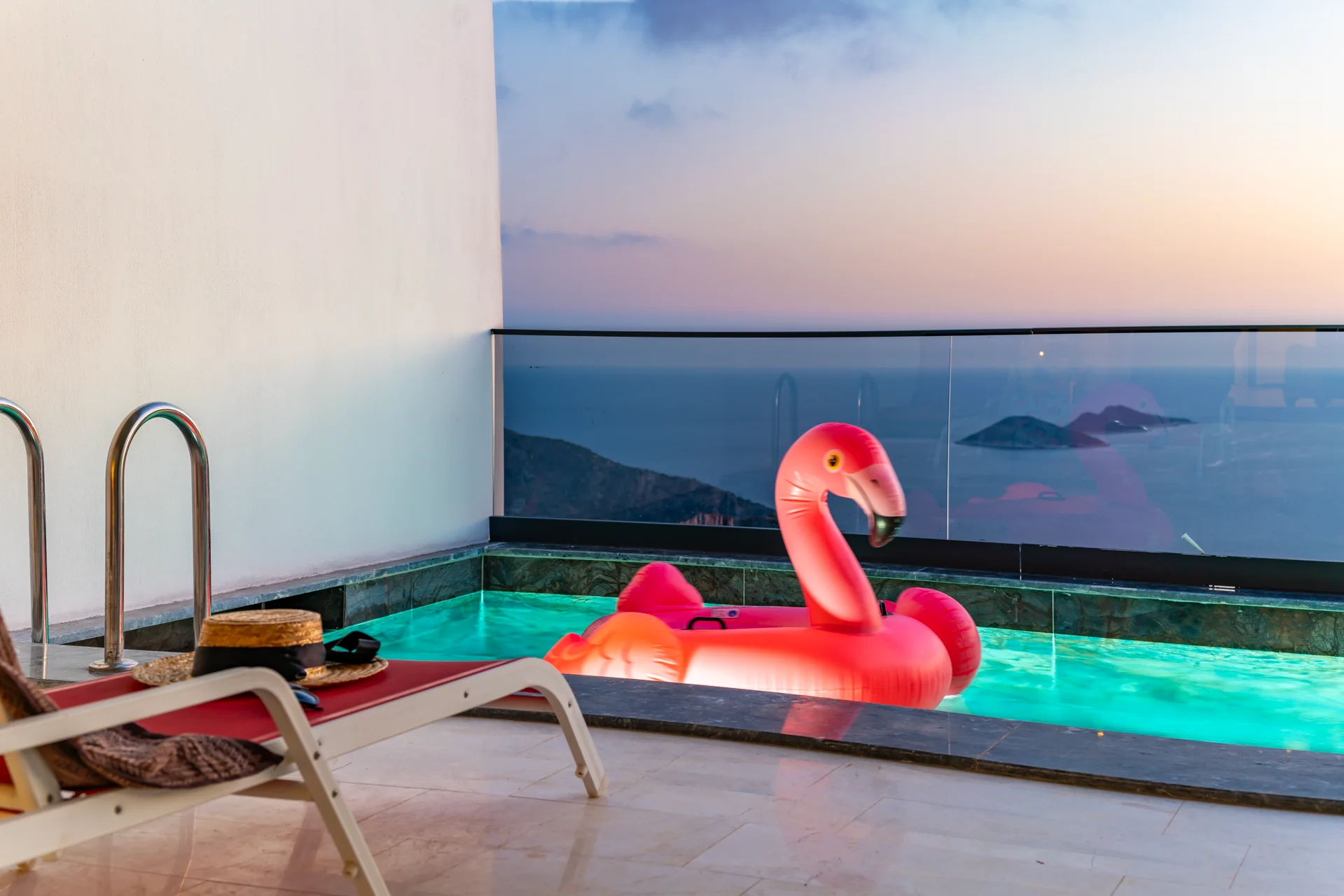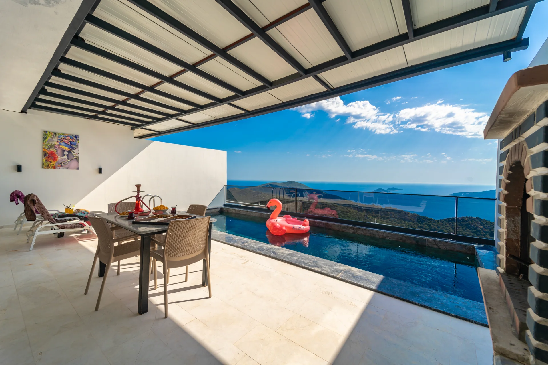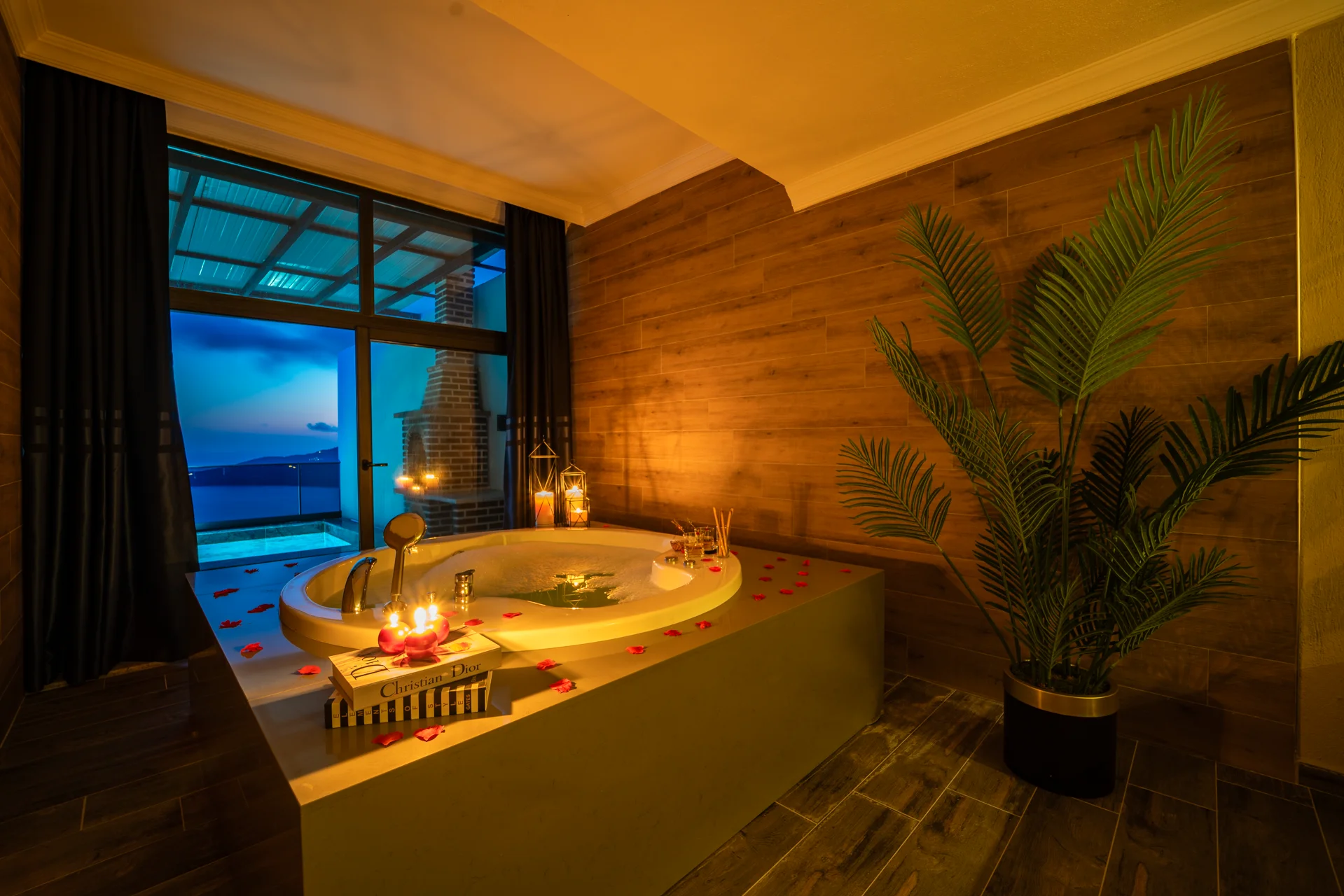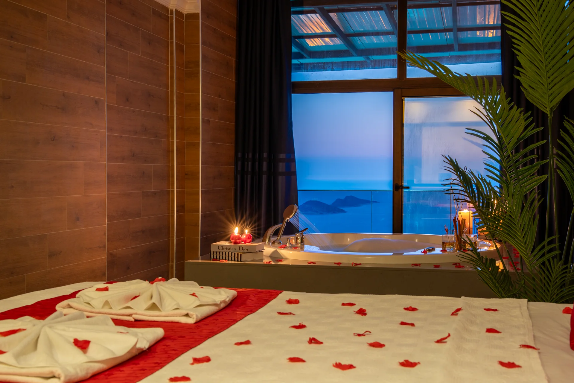 Villa Ruvia: Kalkanʼın Kördere bölgesinde, 1 yatak odalı 2 kişi konaklama kapasiteli deniz manzaralı villamızdır. Villamızda keyifli vakit geçirebilieceğiniz havuz terası oturma grubu ve barbekü bulunmaktadır. Özellikle balayı çiftleri ve çekirdek aileler için tasarlanan bu villa, jakuzisi ve muhteşem manzarasıyla müşterilerimize ayrıcalıklı bir tatil deneyimi sunar. Havuz Boyutu : En: 3,5 m Boy: 8 m Derinlik: 1,55 m Depozito : Villaya girişte 5000TL depozito alınmaktadır. Herhangi bir hasar, kırık dökük, kayıp gibi problemler olmadığı taktirde villadan ayrılıştan 10 dk. önce villa/apart kontrol edilip depozito misafirimize iade edilmektedir. Tüm villalarımıza ilk gün giriş saati öğleden sonra 16.00, en son gün villadan ayrılma saati sabah 10.00’dur. Aradaki zaman diliminde temizlik yapıldığı için Villaya/Aparta giriş saatinizden erken gelmeniz durumunda size yardımcı olamayacağımızı belirtmek isteriz. Lütfen villaya giriş ve çıkış saatlerine uyunuz .