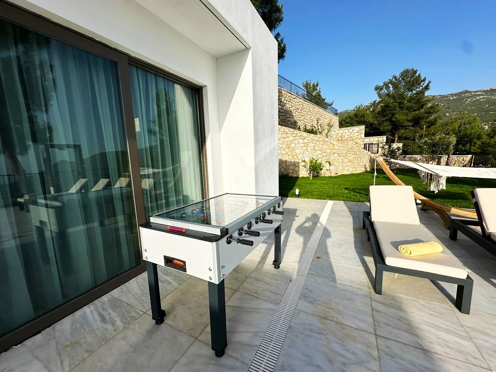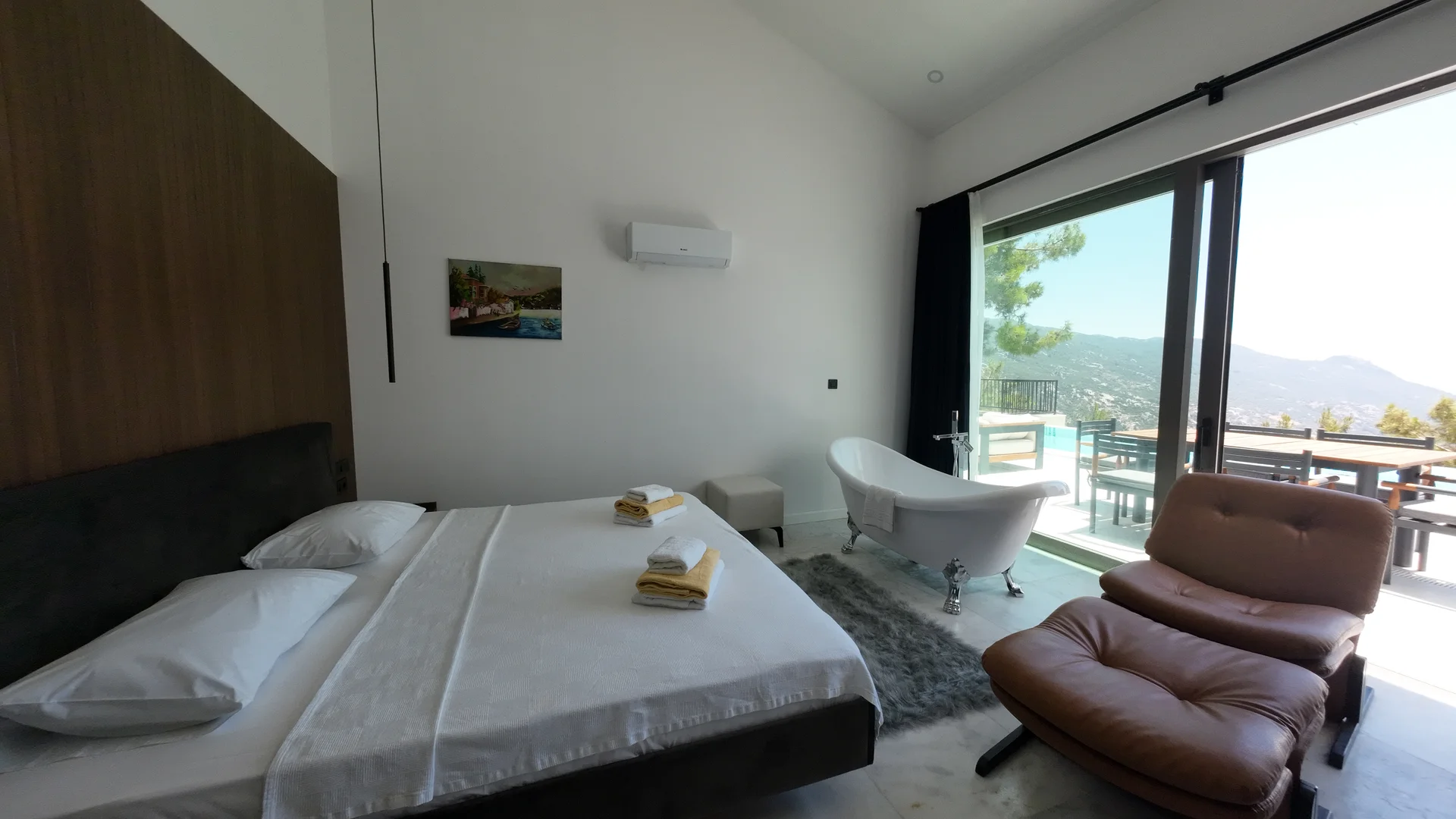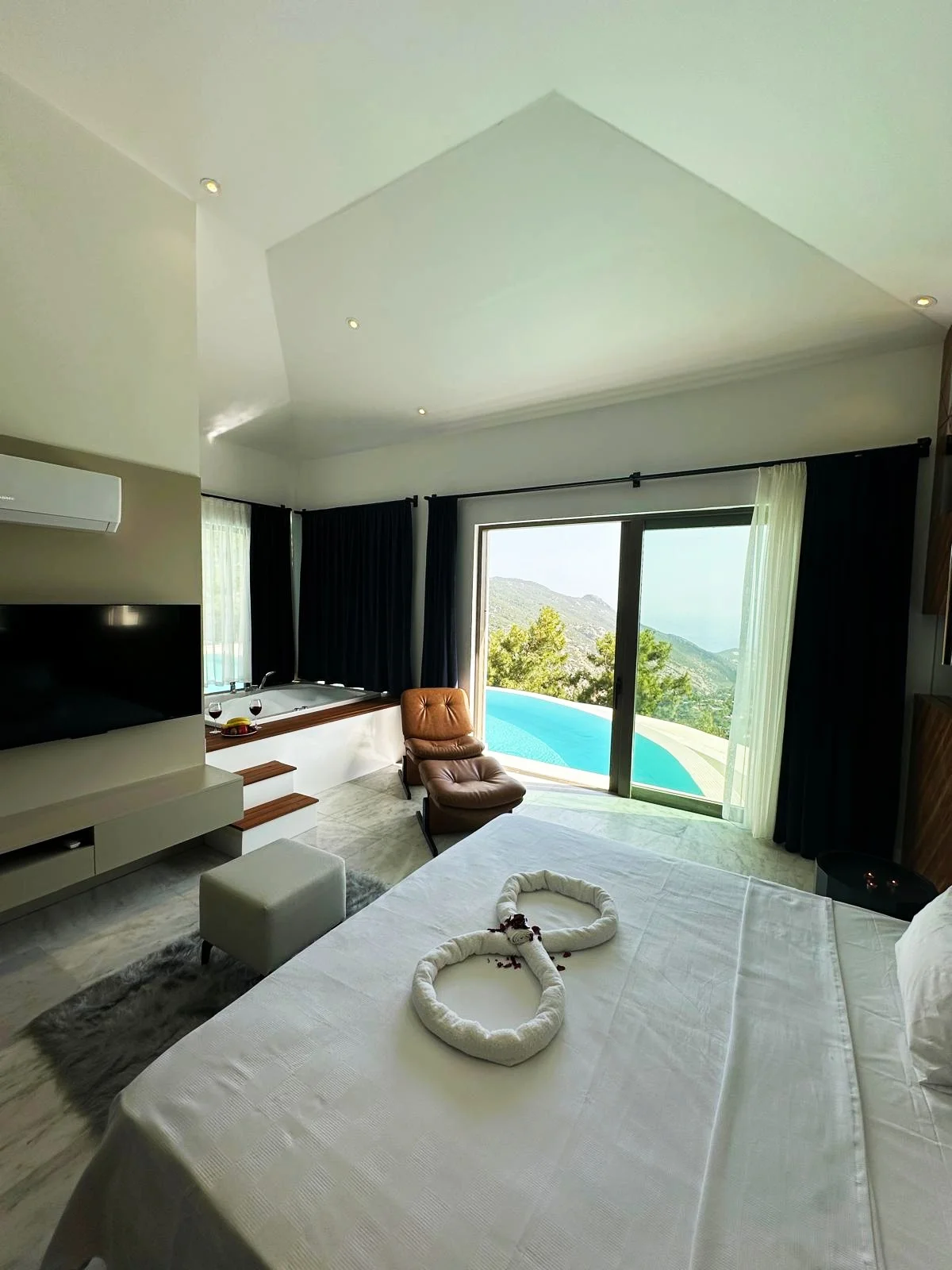 Kalkan’ın İslamlar bölgesinde konumlanan Villa Sunlight , doğa ile iç içe bir ortamda, lüks ve modern tasarımıyla sakin bir villa tatili arayan misafirler için planlanmış özel bir konaklama seçeneğidir. 2 yatak odası ve 4 kişilik kapasitesi, küçük aileler ve birlikte tatil yapmak isteyen çiftler için dengeli bir kullanım sunar. Villanın dış alanında yer alan özel yüzme havuzu, korunaklı yapısı sayesinde daha rahat bir kullanım imkânı sunar. Havuz çevresi, doğa manzarası eşliğinde gün boyunca vakit geçirmek isteyen misafirler için keyifli bir alan oluşturur. Açık alan düzeni, villada geçirilen zamanı daha sakin ve özel hâle getirir. 1. Yatak Odası : 1 adet çift kişilik yatak, klima, jakuzi, elbise dolabı, makyaj masası, banyo ve lavabo bulunmaktadır. 2. Yatak Odası : 1 adet çift kişilik yatak, klima, küvet, elbise dolabı, makyaj masası, komodin, banyo ve lavabo bulunmaktadır.