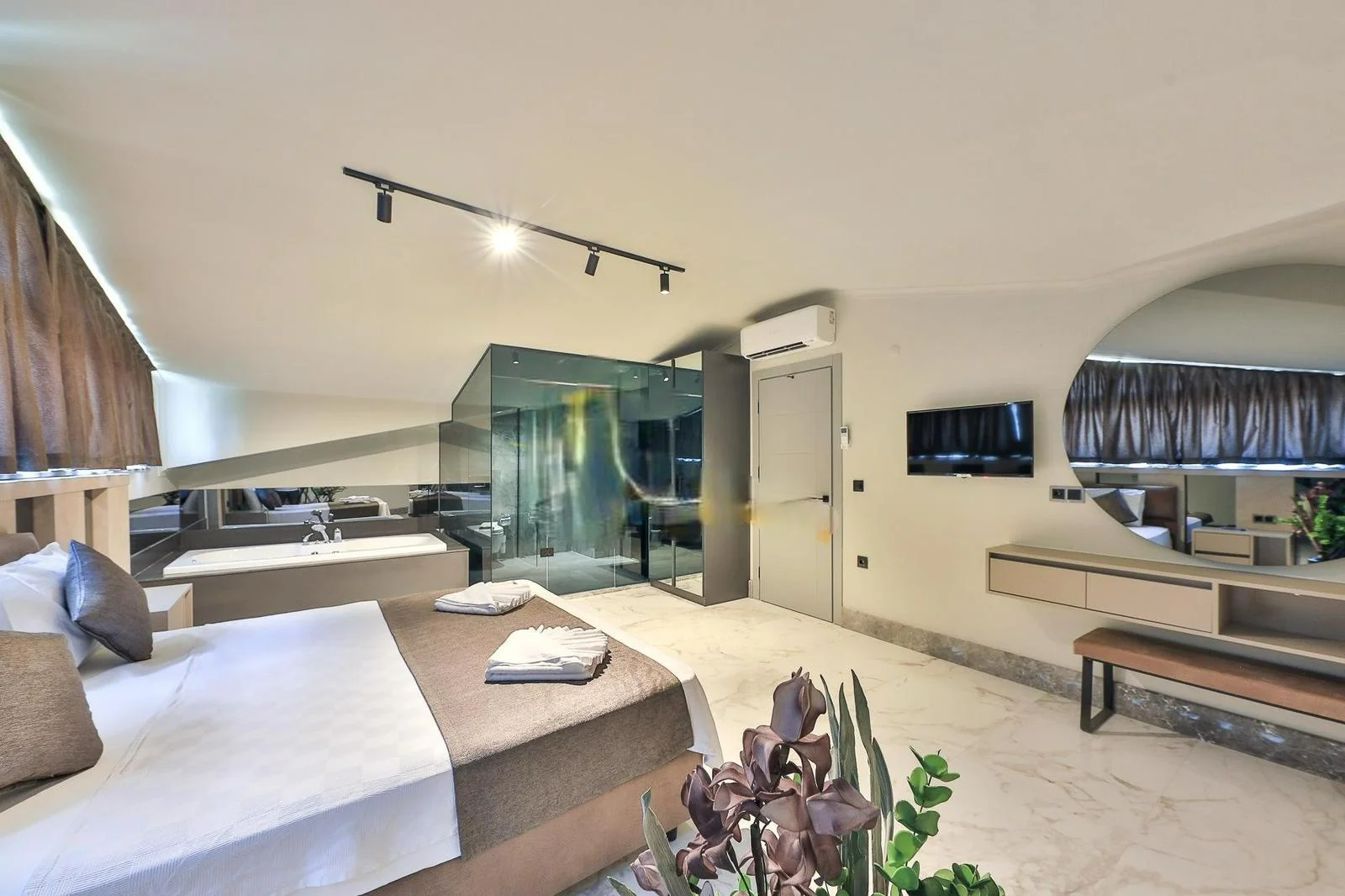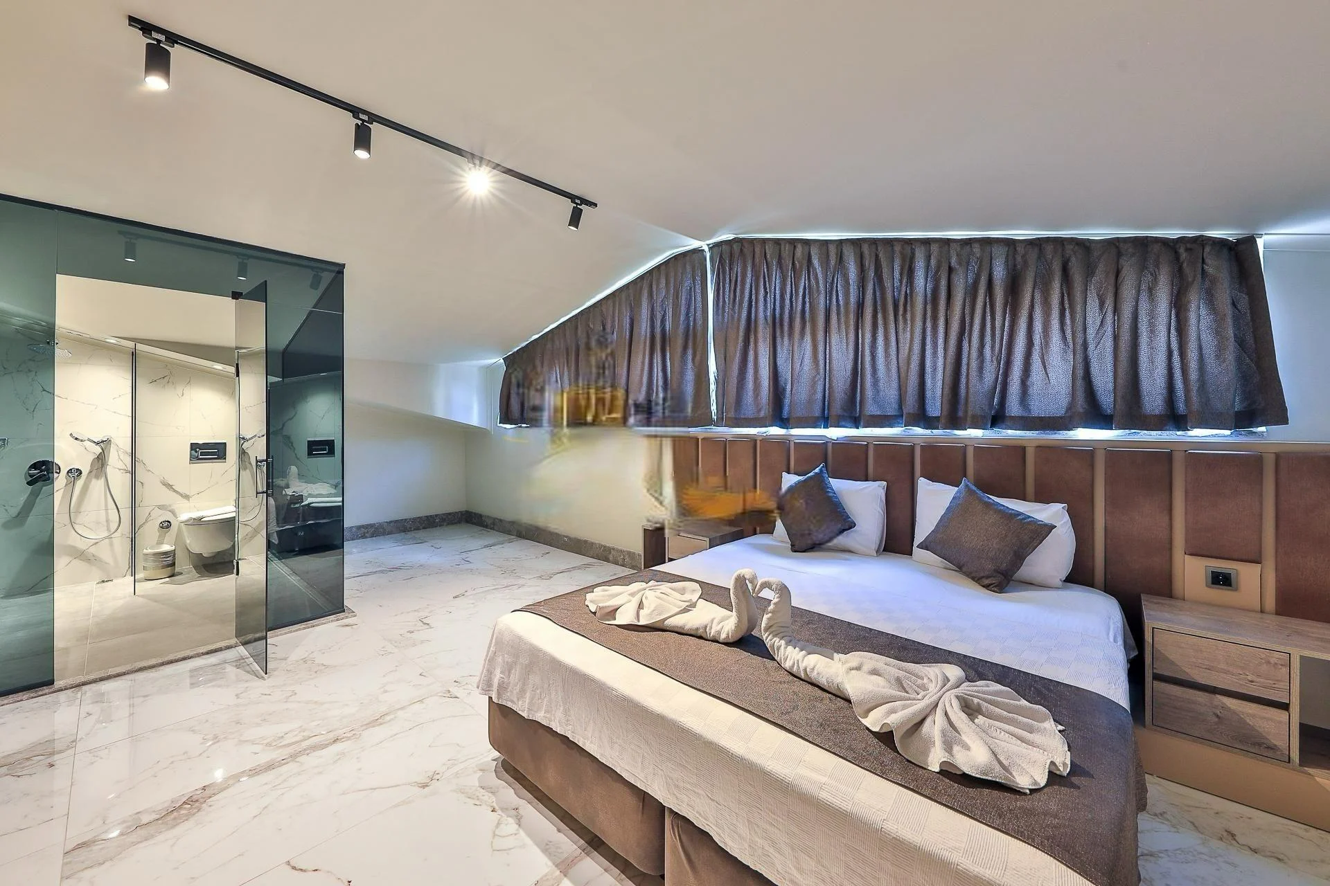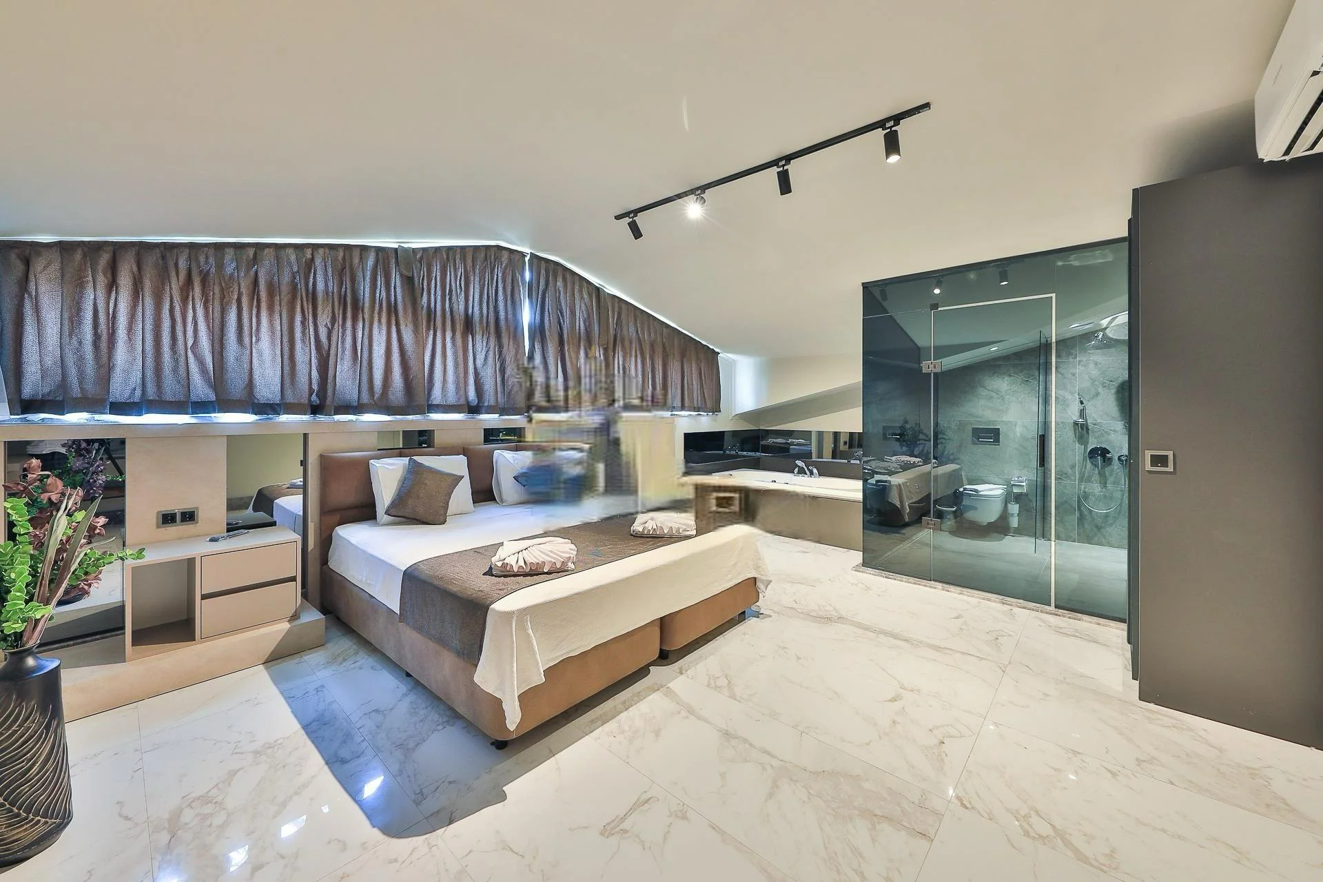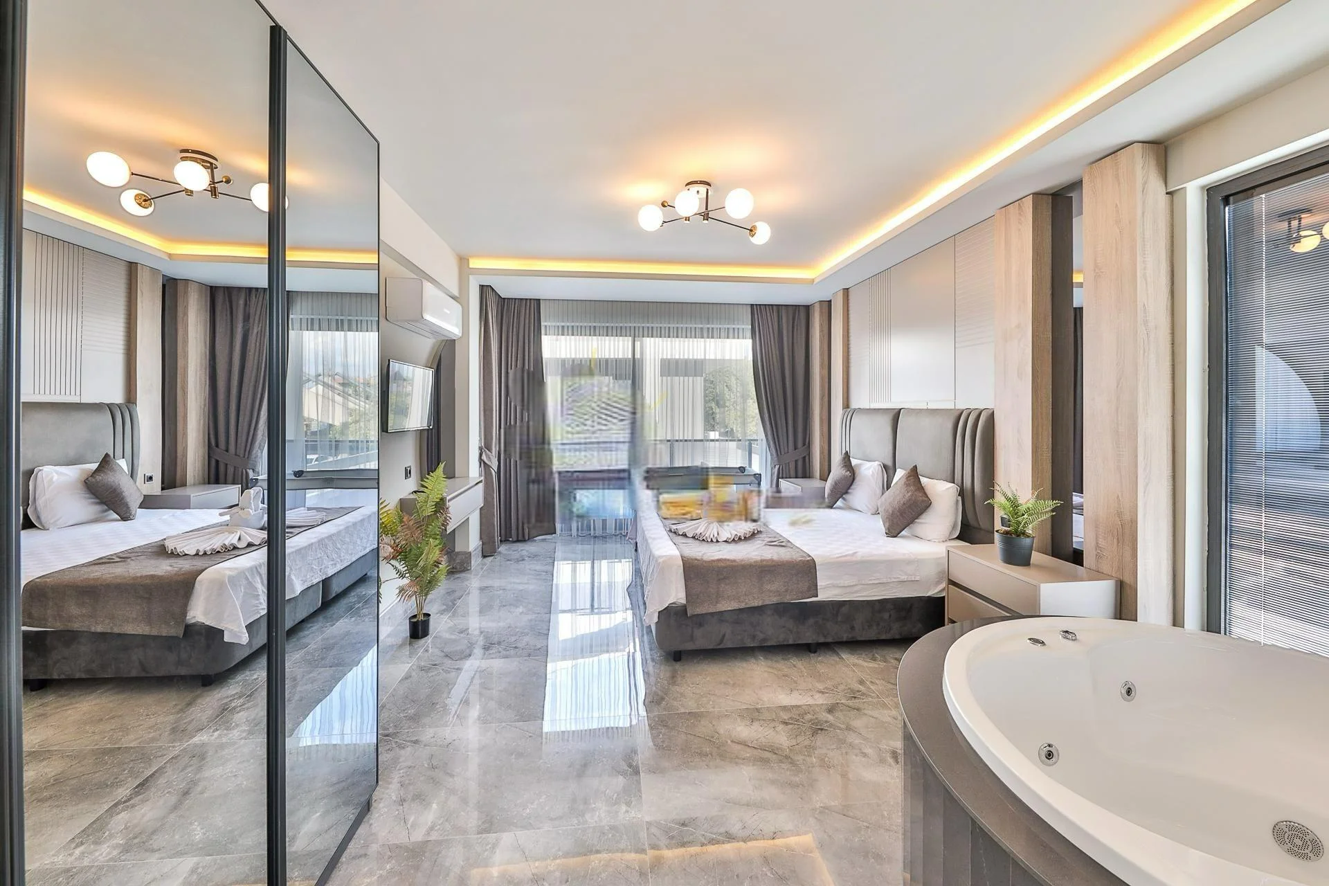 Geniş yaşam alanlarıyla aileler için ideal ve konforlu bir konaklama imkanı sunar.