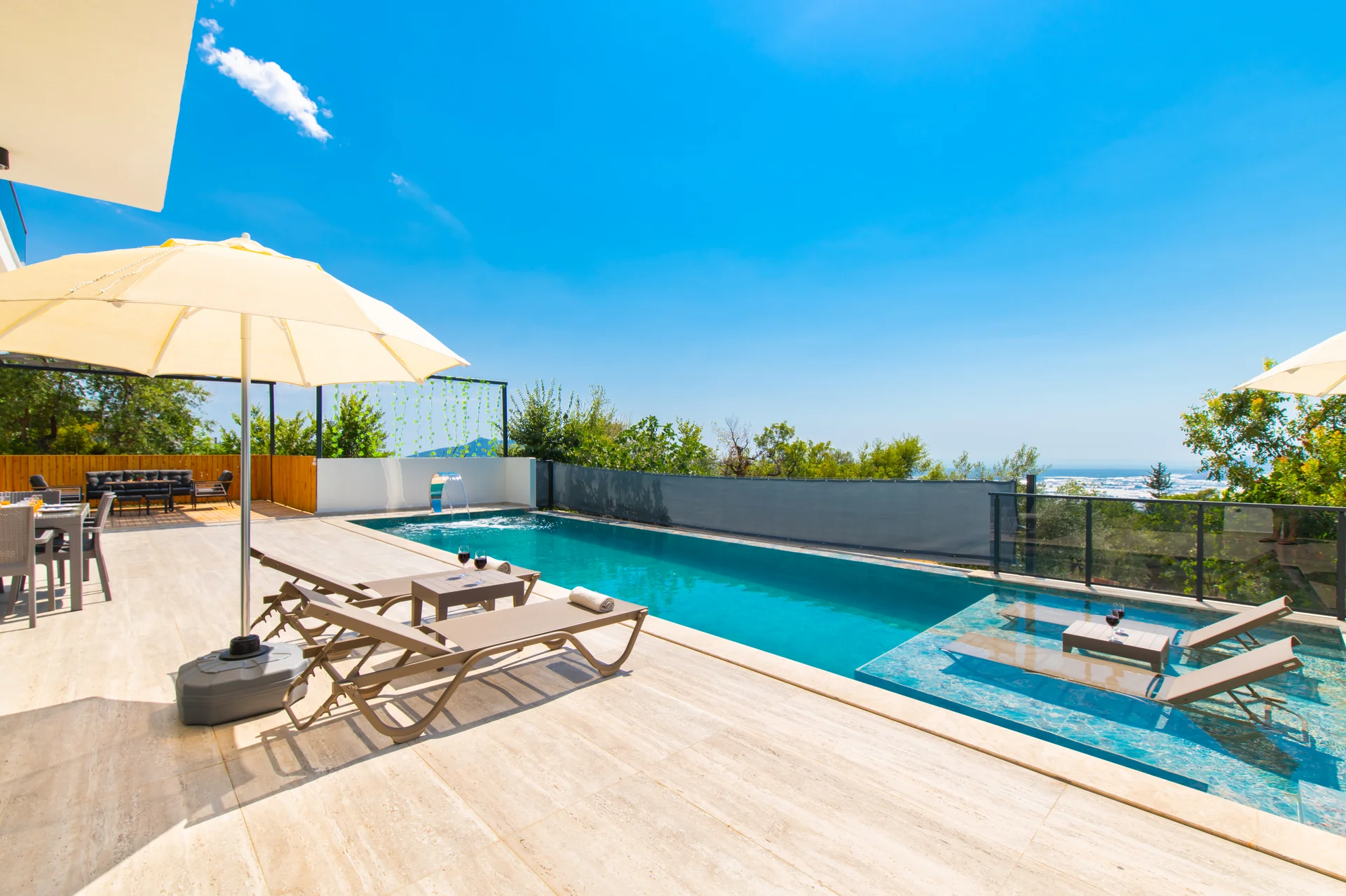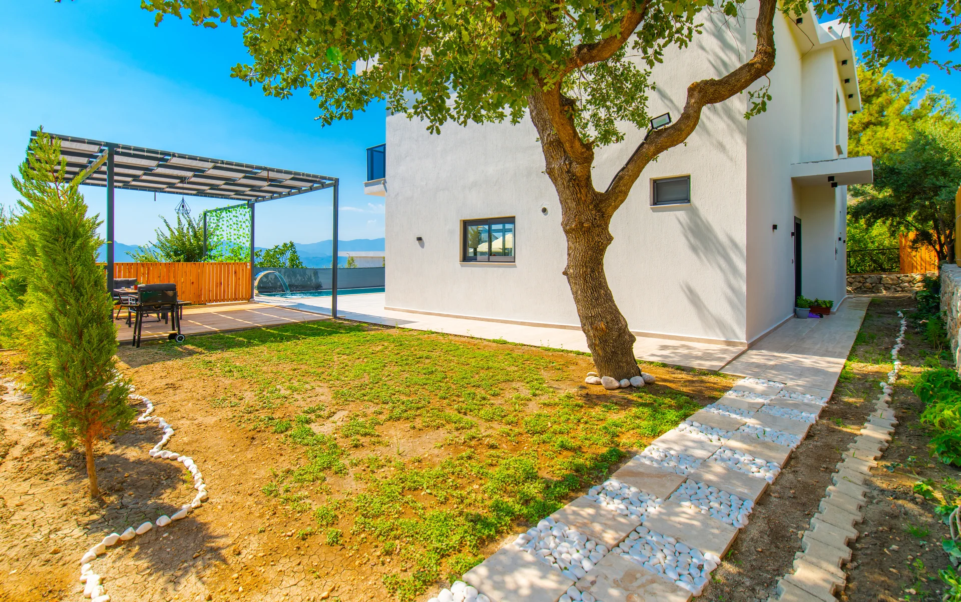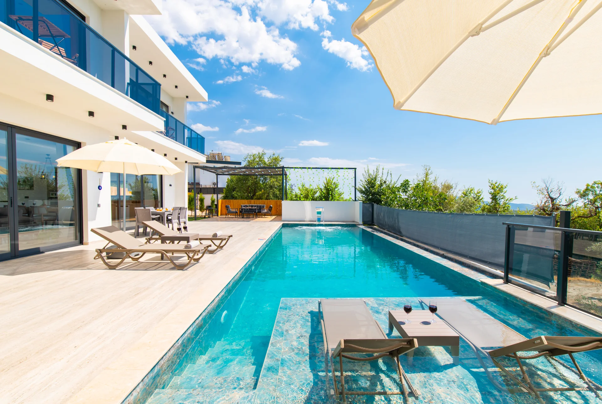 Dışarıdan görünürlüğü büyük ölçüde sınırlandırılmış, size özel havuz ve bahçe alanı sunar.