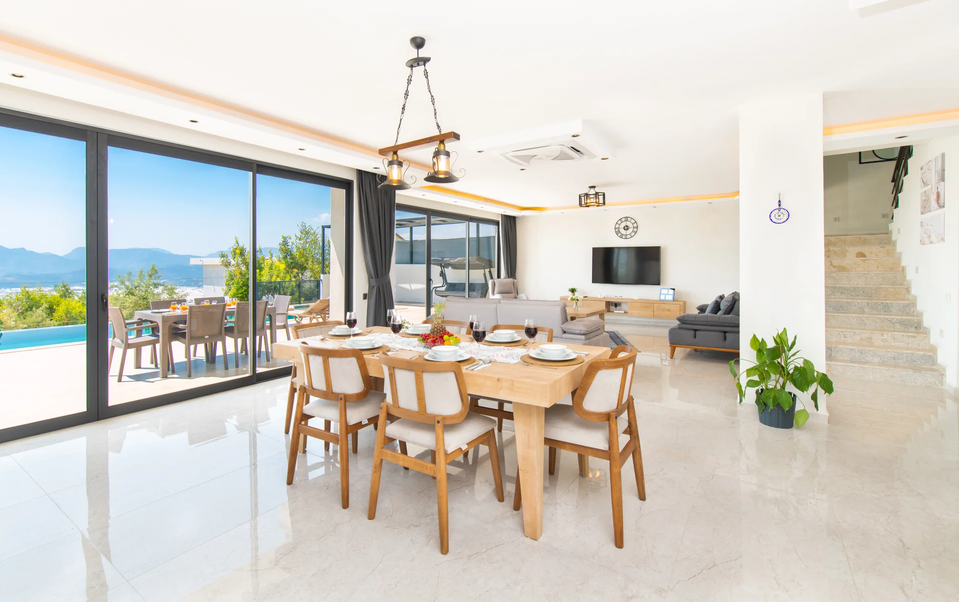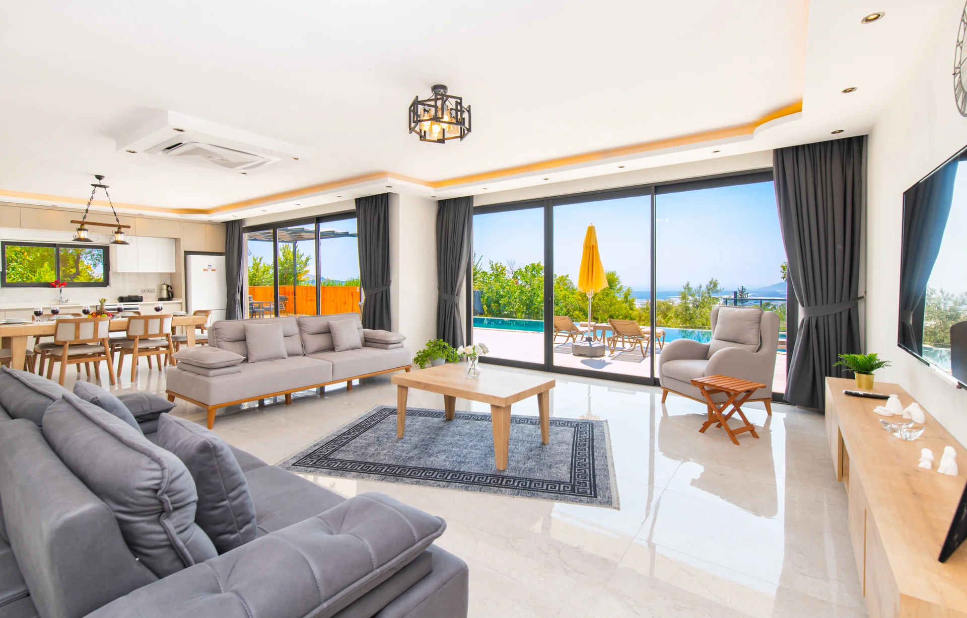 Geniş yaşam alanlarıyla aileler için ideal ve konforlu bir konaklama imkanı sunar.