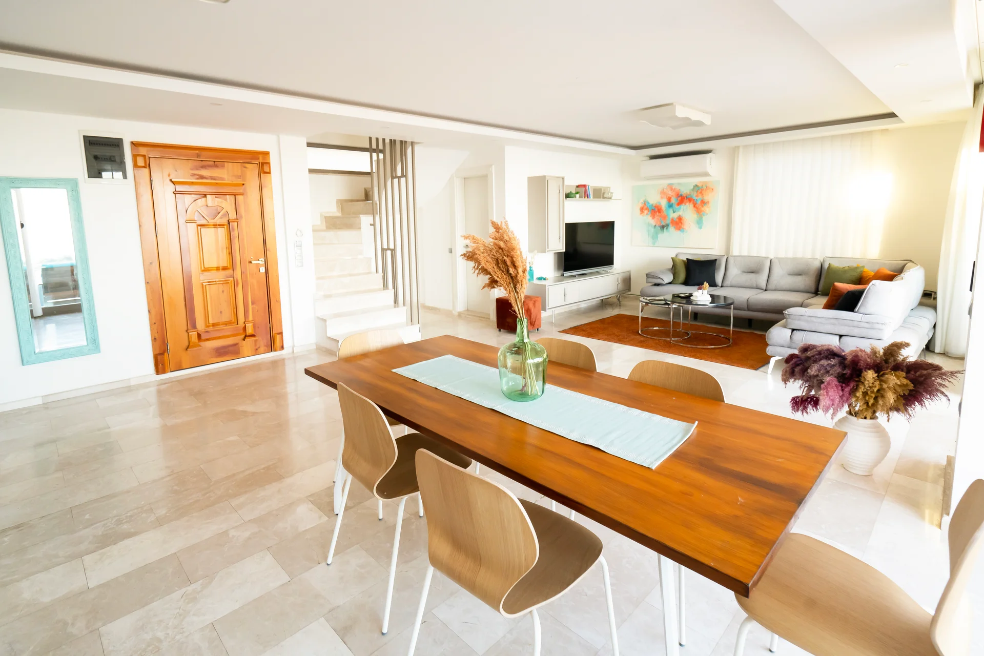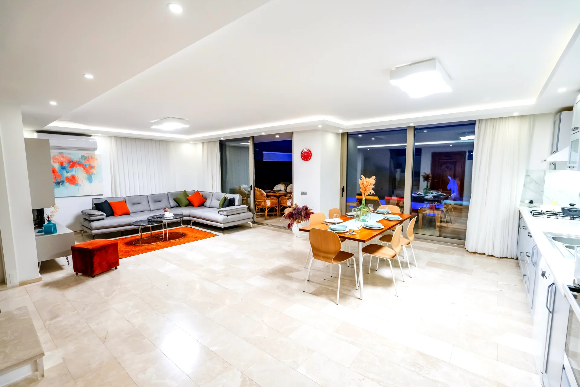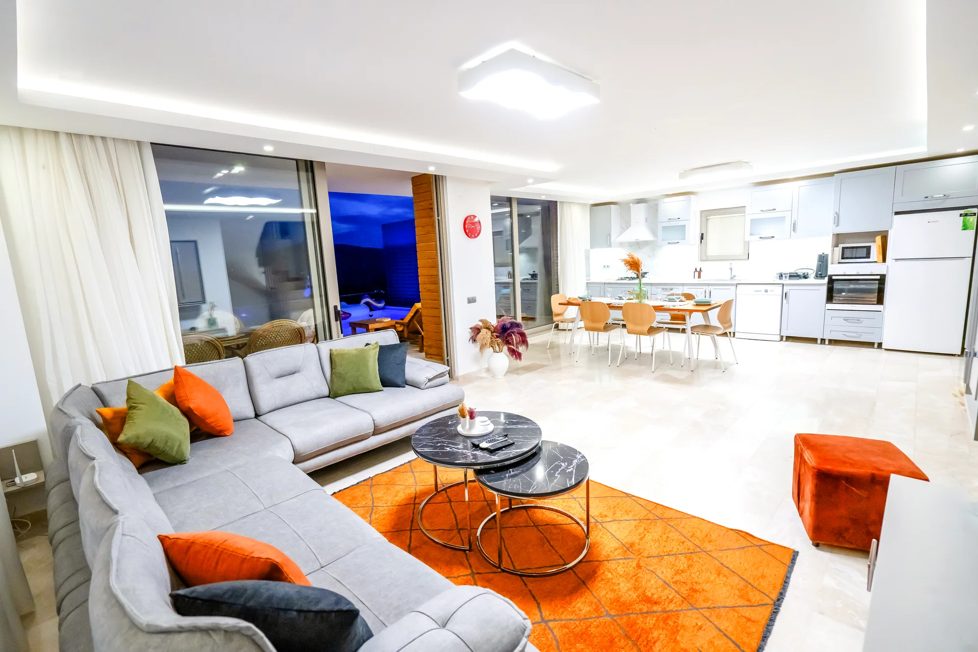 Geniş yaşam alanlarıyla aileler için ideal ve konforlu bir konaklama imkanı sunar.