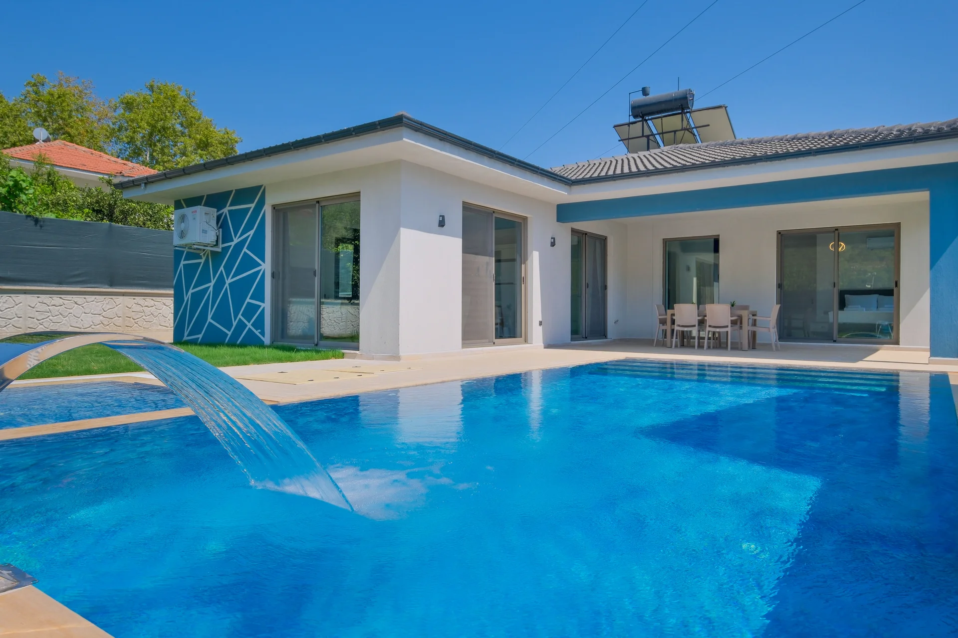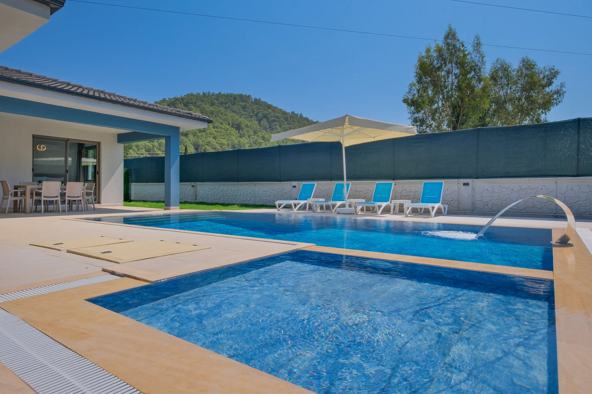 Dışarıdan görünürlüğü büyük ölçüde sınırlandırılmış, size özel havuz ve bahçe alanı sunar.