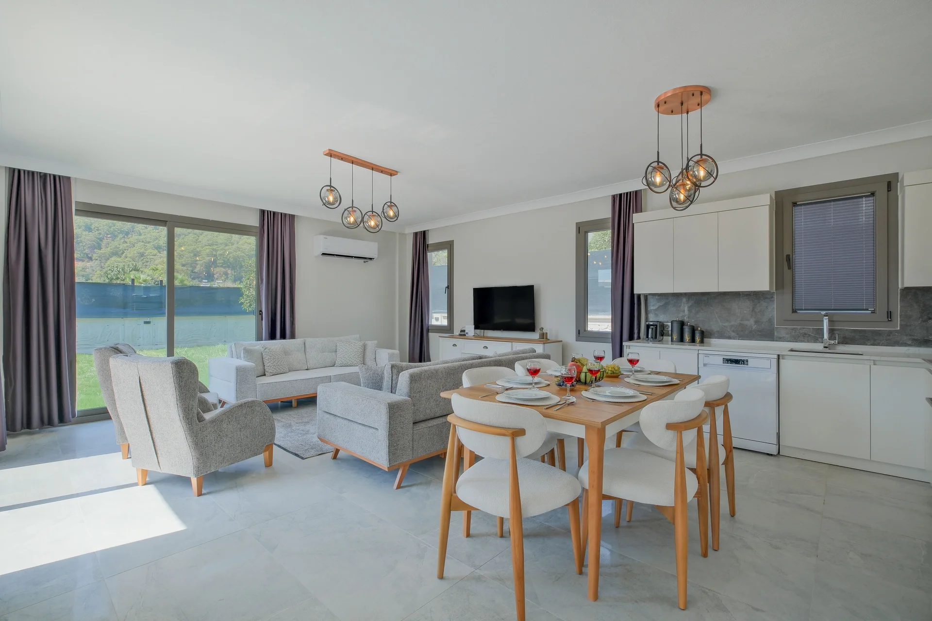 Geniş yaşam alanlarıyla aileler için ideal ve konforlu bir konaklama imkanı sunar.