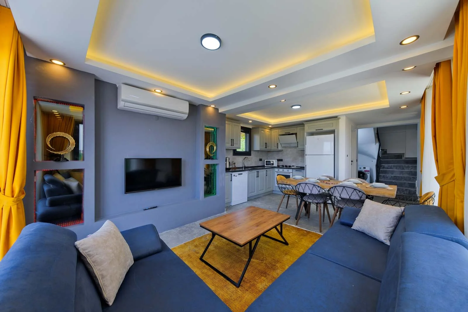 Geniş yaşam alanlarıyla aileler için ideal ve konforlu bir konaklama imkanı sunar.