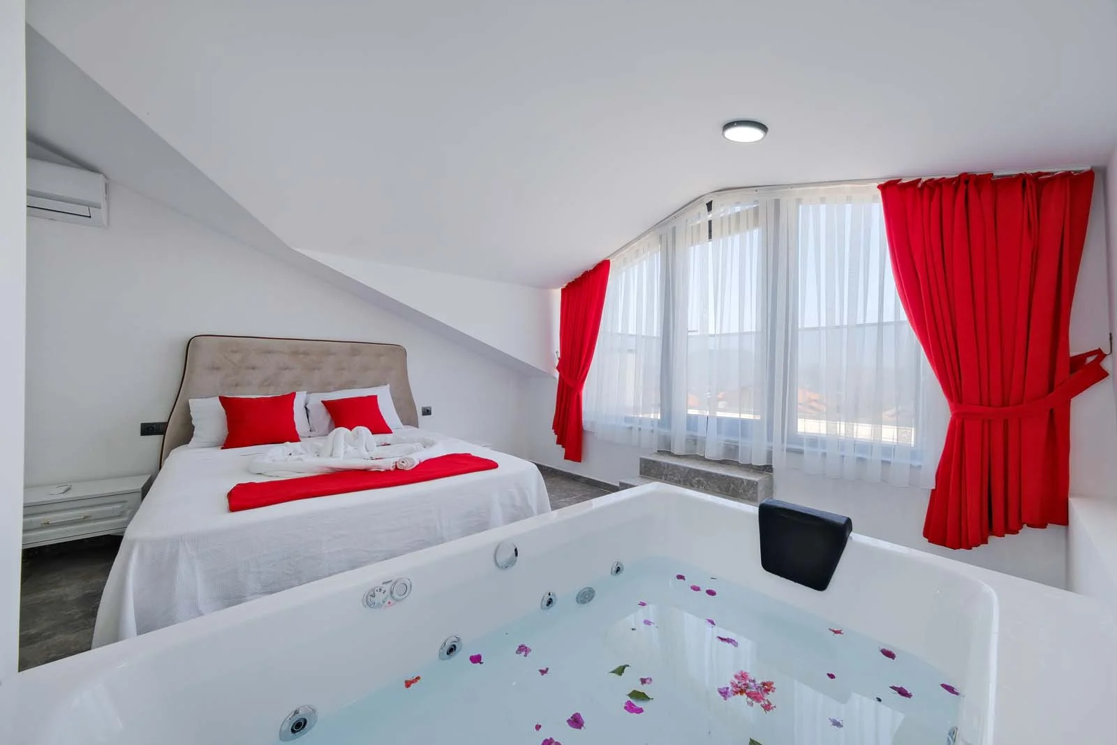 Fethiye’nin tercih edilen tatil bölgelerinden Ovacık mevkiinde konumlanan villamız Sakin ve huzurlu bir çevrede yer alan villamız, dünyaca ünlü Ölüdeniz Plajı’na ve Hisarönü merkeze kolay ulaşım avantajına sahiptir. Bu özelliği sayesinde Ölüdeniz kiralık villa arayışında olan misafirlerimiz için de avantajlı bir konum sunmaktadır. Hem doğa içerisinde konaklayıp hem de kısa sürede denize ulaşmak isteyen tatilciler için ideal bir alternatiftir. özellikle jakuzili kiralık villa tercih eden misafirlerimiz için ayrıcalıklı bir tatil deneyimi sunmaktadır. Ebeveyn yatak odasında bulunan jakuzi sayesinde günün yorgunluğunu keyifli bir şekilde atabilir, tatilinizi daha konforlu ve özel hale getirebilirsiniz. Havuz Ölçüleri Uzunluk: 7 m Genişlik: 3 m Derinlik: 1.55 cm