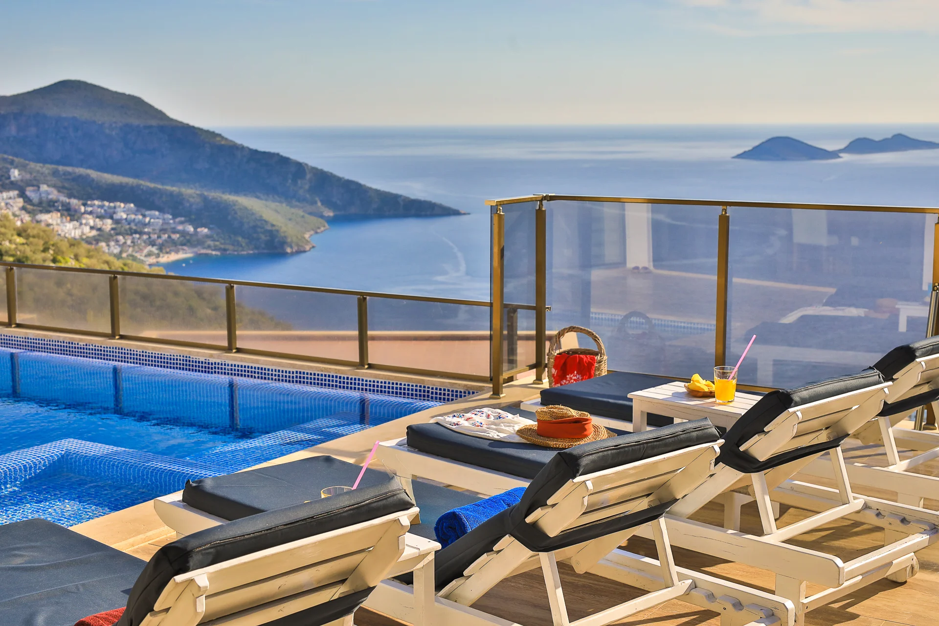Kalkan’ın seçkin bölgelerinden biri olan Kızıltaş mevkiinde konumlanan Villa Nautilus, eşsiz Akdeniz manzarası, modern mimarisi ve zengin donanımıyla ayrıcalıklı bir villa tatili sunmaktadır. Kalkan merkezine kısa sürüş mesafesinde yer alan villamız, hem manzara hem de ulaşım kolaylığını bir arada arayan misafirler için ideal bir tercihtir. 4 yatak odası ve 8 kişilik konaklama kapasitesiyle geniş aileler ve kalabalık arkadaş gruplarına hitap eden Villa Nautilus, lüks ve konforu aynı çatı altında buluşturur. Kalkan merkeze yaklaşık 2 km mesafede bulunan Villa Nautilus, marketlere, restoranlara ve plajlara kolay ulaşım imkânı sunar. Deniz manzaralı, lüks ve donanımlı bir villa tatili arayan misafirler için Villa Nautilus, konforlu ve unutulmaz bir konaklama deneyimi vadeder. Not: Kapalı havuz ısıtma ücreti ve sauna kullanım ücreti günlük 1400TL, haftalık 9800TL • Isıtma ücreti ödemeyenler için sauna aktif değildir. (İç havuz ısıtma sıcaklığı 29 dereceye ulaşır) + Sauna (sauna günde 1 saat kullanılabilir. Bu kural hem Sağlık Bakanlığının talimatı gereği hem de misafirlerimiz nedeniyle uygulanmaktadır.) Talep edilmesi durumunda suyun yeterli ısıya ulaşabilmesi için eve giriş yapmadan en geç 3 gün öncesine kadar iletişim kişisine bildirilmesi gerekmektedir. Yatak Odaları: 1.Yatak Odası: 1 adet çift kişilik yatak, klima, elbise dolabı, jakuzi, makyaj masası, komodin, banyo ve tuvalet bulunmaktadır. Deniz manzaralı bir balkonu vardır. 2.Yatak Odası:1 adet çift kişilik yatak, klima, elbise dolabı, makyaj masası, komodin, banyo ve tuvalet bulunmaktadır. Deniz manzaralı bir balkonu vardır. 3.Yatak Odası:1 adet çift kişilik yatak, klima, elbise dolabı, makyaj masası, komodin, banyo ve tuvalet bulunmaktadır. Deniz manzaralı bir balkonu vardır. 4. Yatak Odası: 2 tane adet tek kişilik yatak, klima, elbise dolabı, makyaj masası, komodin, banyo ve tuvalet bulunmaktadır. Deniz manzaralı bir balkonu vardır.
