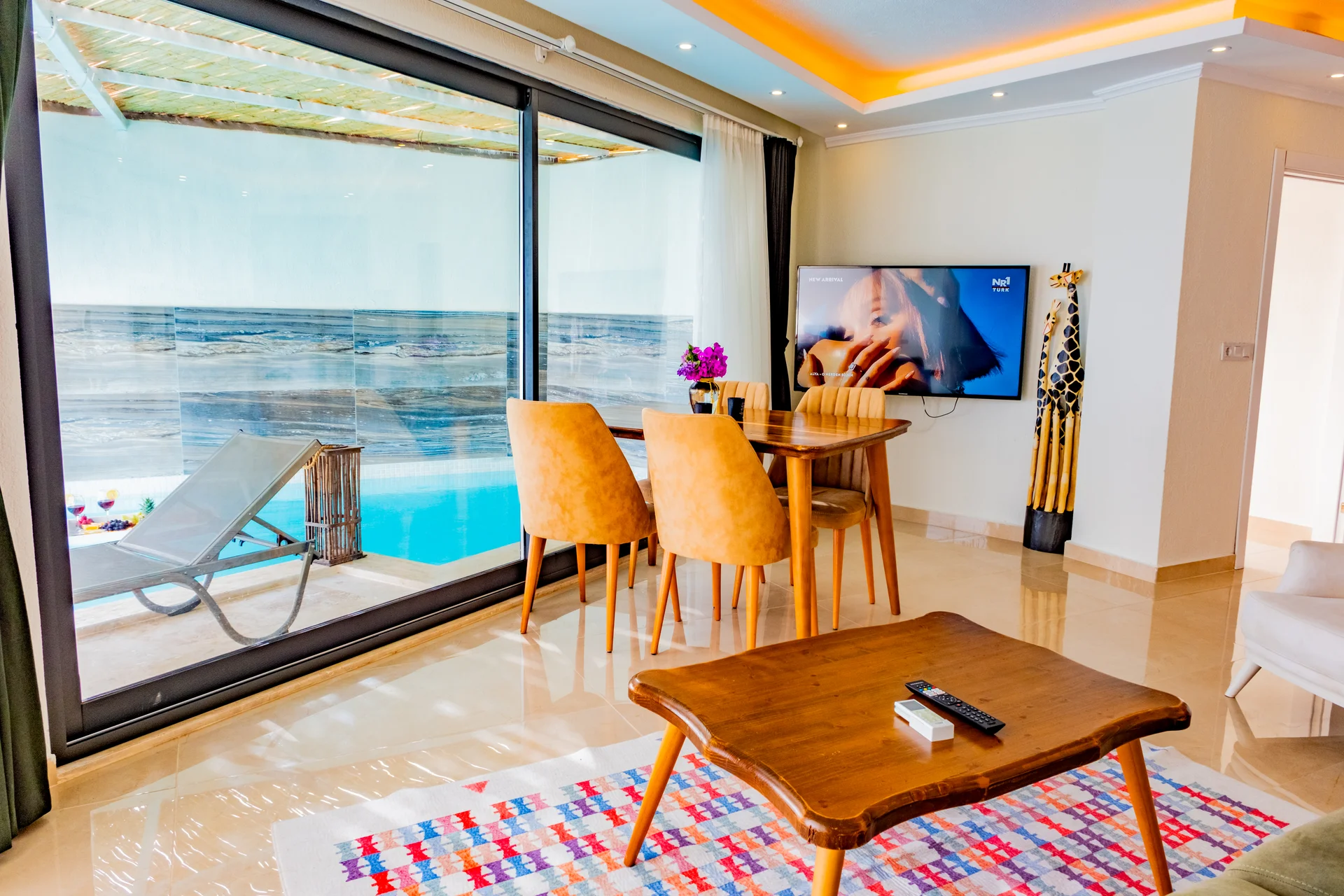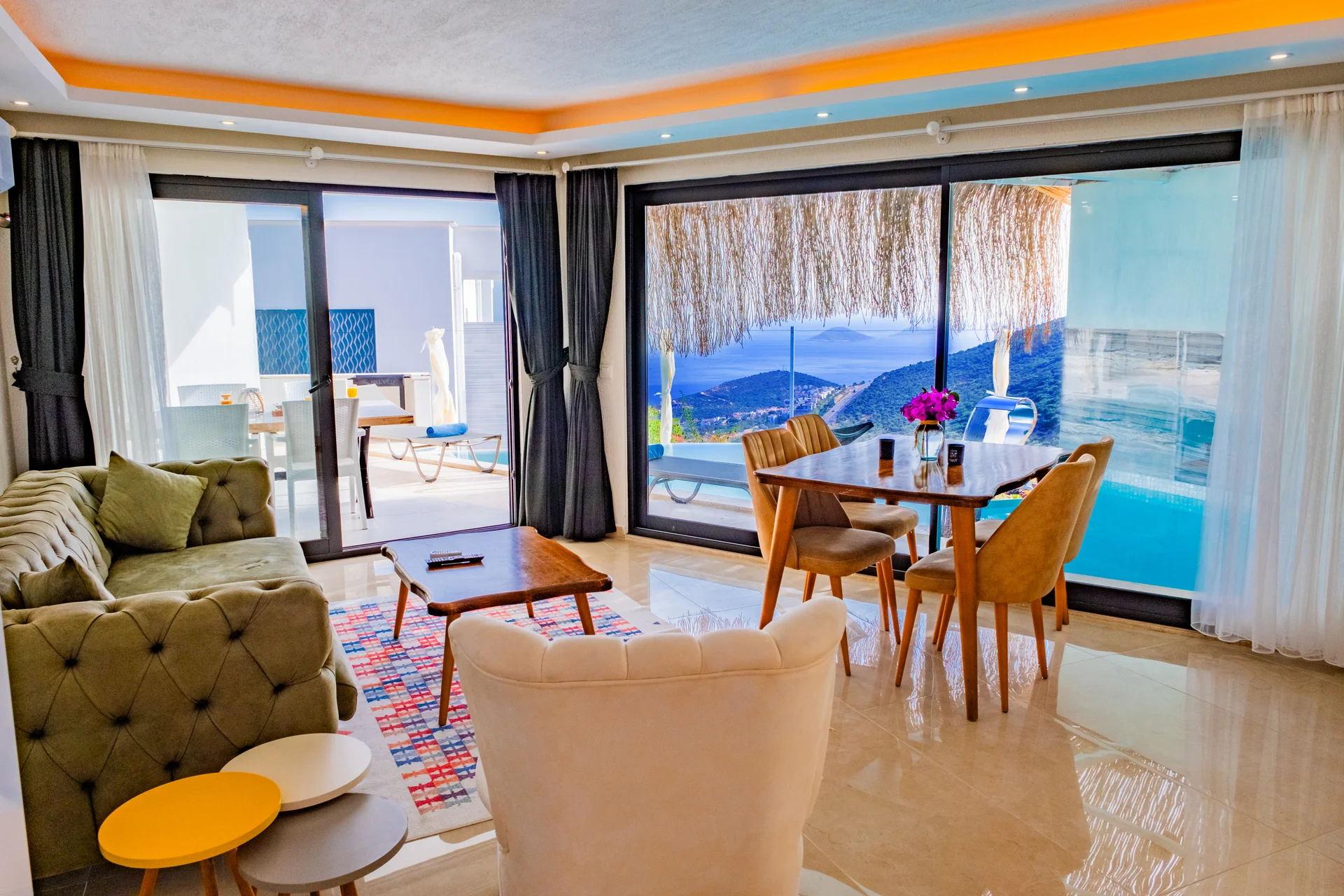 Villa Olala, Kalkan Akbel mevkiinde bulunan 2 yatak odalı, 4 kişi konaklama kapasiteli deniz manzaralı, muhafazakar kiralık villa seçeneğimizdir. Şık ve modern tasarımıyla dikkat çeken muhteşem deniz manzarasına sahip villamızda sizlere sadece tatilin tadını çıkarmak kalıyor. Havuz Boyutları; Boy: 7 m Eni: 4 m Derinlik: 155 cm’dir. Hasar Depozitosu; Villa ya girişte 3000 TL nakit hasar depozitosu alınmaktadır. Villada hasar, zayi, kirik vb. gibi durumlar oluşmaması durumunda bu bedel çıkış gününde iade edilmektedir.
