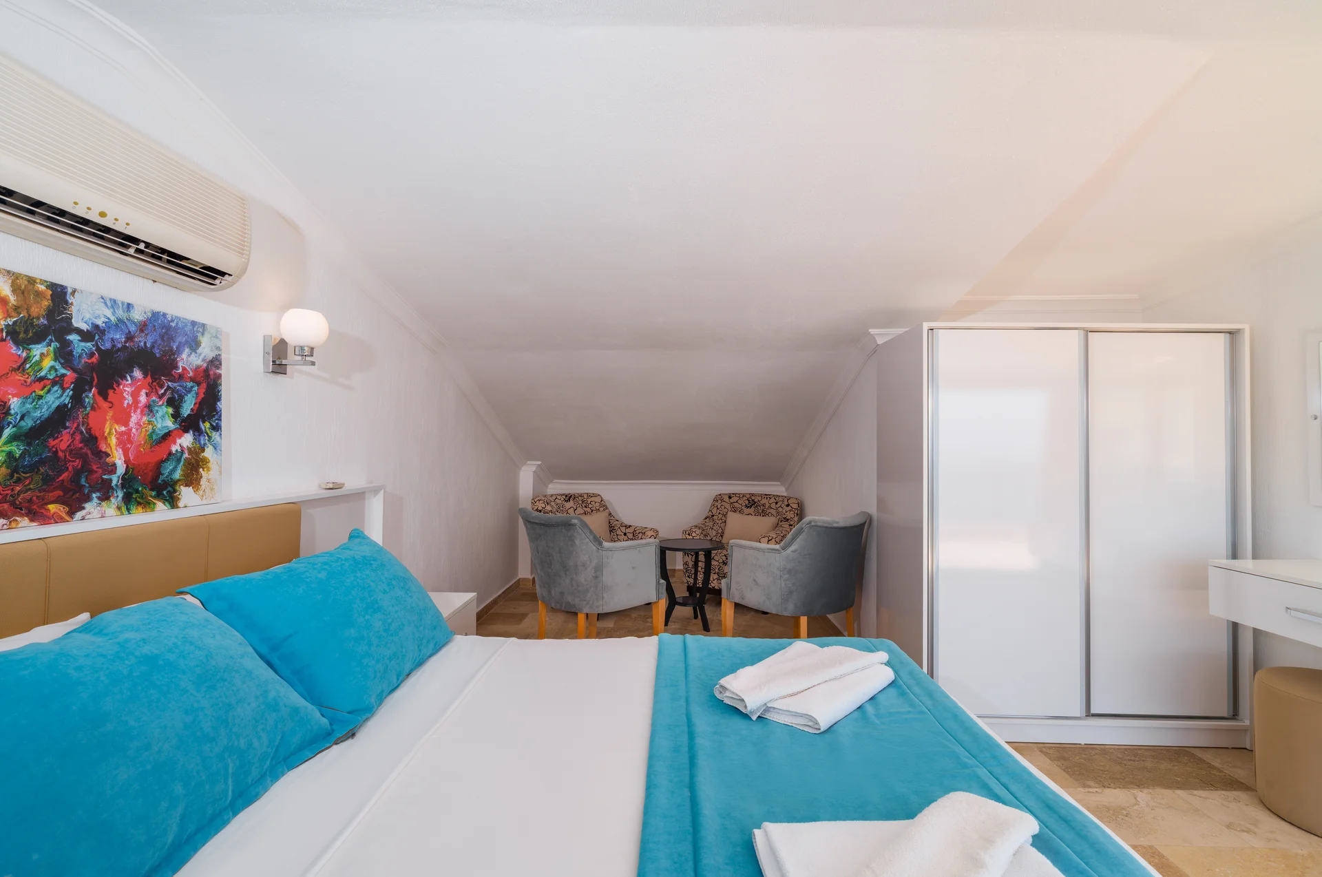 Geniş yaşam alanlarıyla aileler için ideal ve konforlu bir konaklama imkanı sunar.
